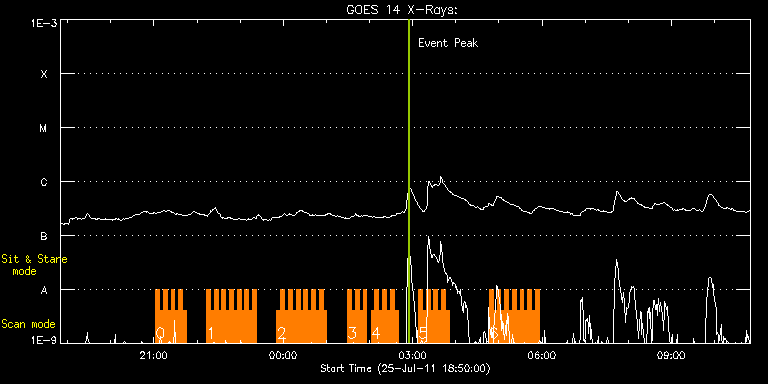 EIS Observation timeline overlay to GOES-Xray curve Code 1" 2" 40" 266" EIS Observations list for this event: STUDY ACRONYM ID DATE OBSERVED DESCRIPTION NOAA# TARGET 0 HH_Flare+AR_180x152 | 23449 | 2011/07/25 21:02:26 | AR observation | 1259 | Flare TIMELINE ID DATE OBSERVED FITS FILE XCEN (+W/-E) YCEN (+N/-S) DUR ----------------------------------------------------------------------------------------------------------------- 23449 | 2011/07/25 21:02:26.000 | eis_l0_20110725_210226.fits.gz | 297.85 | 278.44 | 5m17s 23449 | 2011/07/25 21:07:46.000 | eis_l0_20110725_210746.fits.gz | 298.55 | 278.67 | 5m18s 23449 | 2011/07/25 21:13:06.000 | eis_l0_20110725_211306.fits.gz | 299.24 | 278.60 | 5m18s 23449 | 2011/07/25 21:18:27.000 | eis_l0_20110725_211827.fits.gz | 300.02 | 278.52 | 5m17s 23449 | 2011/07/25 21:23:47.000 | eis_l0_20110725_212347.fits.gz | 300.71 | 278.60 | 5m18s 23449 | 2011/07/25 21:29:08.000 | eis_l0_20110725_212908.fits.gz | 301.41 | 278.60 | 5m18s 23449 | 2011/07/25 21:34:29.000 | eis_l0_20110725_213429.fits.gz | 302.18 | 278.67 | 5m17s 23449 | 2011/07/25 21:39:49.000 | eis_l0_20110725_213949.fits.gz | 302.80 | 278.60 | 5m17s 1 HH_Flare+AR_180x152 | 23450 | 2011/07/25 22:13:09 | AR observation | 1259 | Flare TIMELINE ID DATE OBSERVED FITS FILE XCEN (+W/-E) YCEN (+N/-S) DUR ----------------------------------------------------------------------------------------------------------------- 23450 | 2011/07/25 22:13:09.000 | eis_l0_20110725_221309.fits.gz | 307.05 | 278.98 | 5m18s 23450 | 2011/07/25 22:18:30.000 | eis_l0_20110725_221830.fits.gz | 307.74 | 278.90 | 5m17s 23450 | 2011/07/25 22:23:50.000 | eis_l0_20110725_222350.fits.gz | 308.51 | 278.90 | 5m18s 23450 | 2011/07/25 22:29:11.000 | eis_l0_20110725_222911.fits.gz | 309.21 | 278.83 | 5m17s 23450 | 2011/07/25 22:34:31.000 | eis_l0_20110725_223431.fits.gz | 309.90 | 278.90 | 5m18s 23450 | 2011/07/25 22:39:52.000 | eis_l0_20110725_223952.fits.gz | 310.60 | 278.98 | 5m19s 23450 | 2011/07/25 22:45:13.000 | eis_l0_20110725_224513.fits.gz | 311.30 | 278.90 | 5m18s 23450 | 2011/07/25 22:50:34.000 | eis_l0_20110725_225034.fits.gz | 311.99 | 278.98 | 5m17s 23450 | 2011/07/25 22:55:54.000 | eis_l0_20110725_225554.fits.gz | 312.68 | 278.90 | 5m17s 23450 | 2011/07/25 23:01:14.000 | eis_l0_20110725_230114.fits.gz | 313.23 | 279.06 | 5m18s 23450 | 2011/07/25 23:06:35.000 | eis_l0_20110725_230635.fits.gz | 314.08 | 278.98 | 5m18s 23450 | 2011/07/25 23:11:56.000 | eis_l0_20110725_231156.fits.gz | 314.77 | 278.98 | 5m18s 23450 | 2011/07/25 23:17:17.000 | eis_l0_20110725_231717.fits.gz | 315.47 | 278.90 | 5m18s 2 HH_Flare+AR_180x152 | 23451 | 2011/07/25 23:51:12 | AR observation | 1259 | Flare TIMELINE ID DATE OBSERVED FITS FILE XCEN (+W/-E) YCEN (+N/-S) DUR ----------------------------------------------------------------------------------------------------------------- 23451 | 2011/07/25 23:51:12.000 | eis_l0_20110725_235112.fits.gz | 319.71 | 279.21 | 5m19s 23451 | 2011/07/25 23:56:34.000 | eis_l0_20110725_235634.fits.gz | 320.41 | 279.21 | 5m18s 23451 | 2011/07/26 00:01:55.000 | eis_l0_20110726_000155.fits.gz | 321.26 | 279.21 | 5m17s 23451 | 2011/07/26 00:07:15.000 | eis_l0_20110726_000715.fits.gz | 321.88 | 279.14 | 5m18s 23451 | 2011/07/26 00:12:36.000 | eis_l0_20110726_001236.fits.gz | 322.57 | 279.21 | 5m17s 23451 | 2011/07/26 00:17:56.000 | eis_l0_20110726_001756.fits.gz | 323.27 | 279.21 | 5m19s 23451 | 2011/07/26 00:23:17.000 | eis_l0_20110726_002317.fits.gz | 323.89 | 279.21 | 5m18s 23451 | 2011/07/26 00:28:38.000 | eis_l0_20110726_002838.fits.gz | 324.58 | 279.21 | 5m18s 23451 | 2011/07/26 00:33:59.000 | eis_l0_20110726_003359.fits.gz | 325.28 | 279.21 | 5m18s 23451 | 2011/07/26 00:39:20.000 | eis_l0_20110726_003920.fits.gz | 325.82 | 279.37 | 5m18s 23451 | 2011/07/26 00:44:40.000 | eis_l0_20110726_004440.fits.gz | 326.74 | 279.37 | 5m19s 23451 | 2011/07/26 00:50:02.000 | eis_l0_20110726_005002.fits.gz | 327.44 | 279.37 | 5m18s 23451 | 2011/07/26 00:55:23.000 | eis_l0_20110726_005523.fits.gz | 328.06 | 279.37 | 5m17s 3 HH_Flare+AR_180x152 | 23452 | 2011/07/26 01:29:43 | AR observation | 1259 | Flare TIMELINE ID DATE OBSERVED FITS FILE XCEN (+W/-E) YCEN (+N/-S) DUR ----------------------------------------------------------------------------------------------------------------- 23452 | 2011/07/26 01:29:43.000 | eis_l0_20110726_012943.fits.gz | 332.31 | 279.68 | 5m17s 23452 | 2011/07/26 01:35:03.000 | eis_l0_20110726_013503.fits.gz | 333.08 | 279.52 | 5m18s 23452 | 2011/07/26 01:40:23.000 | eis_l0_20110726_014023.fits.gz | 333.85 | 279.68 | 5m18s 23452 | 2011/07/26 01:45:44.000 | eis_l0_20110726_014544.fits.gz | 334.47 | 279.60 | 5m18s 23452 | 2011/07/26 01:51:04.000 | eis_l0_20110726_015104.fits.gz | 335.24 | 279.60 | 5m19s 4 HH_Flare+AR_180x152 | 23463 | 2011/07/26 02:02:12 | AR observation | 1254 | Flare TIMELINE ID DATE OBSERVED FITS FILE XCEN (+W/-E) YCEN (+N/-S) DUR ----------------------------------------------------------------------------------------------------------------- 23463 | 2011/07/26 02:02:12.000 | eis_l0_20110726_020212.fits.gz | 830.86 | -425.13 | 5m18s 23463 | 2011/07/26 02:07:33.000 | eis_l0_20110726_020733.fits.gz | 831.02 | -424.90 | 5m18s 23463 | 2011/07/26 02:12:53.000 | eis_l0_20110726_021253.fits.gz | 831.09 | -424.90 | 5m18s 23463 | 2011/07/26 02:18:14.000 | eis_l0_20110726_021814.fits.gz | 831.25 | -424.74 | 5m18s 23463 | 2011/07/26 02:23:35.000 | eis_l0_20110726_022335.fits.gz | 831.40 | -424.67 | 5m18s 23463 | 2011/07/26 02:28:55.000 | eis_l0_20110726_022855.fits.gz | 831.56 | -424.74 | 5m19s 23463 | 2011/07/26 02:34:17.000 | eis_l0_20110726_023417.fits.gz | 831.71 | -424.59 | 5m17s 5 HH_Flare+AR_180x152 | 23453 | 2011/07/26 03:08:13 | AR observation | 1254 | Flare TIMELINE ID DATE OBSERVED FITS FILE XCEN (+W/-E) YCEN (+N/-S) DUR ----------------------------------------------------------------------------------------------------------------- 23453 | 2011/07/26 03:08:13.000 | eis_l0_20110726_030813.