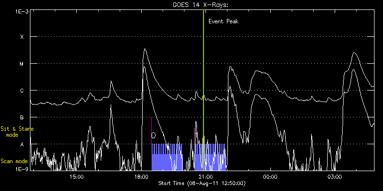 EIS Observation timeline overlay to GOES-Xray curve Code 1" 2" 40" 266" EIS Observations list for this event: STUDY ACRONYM ID DATE OBSERVED DESCRIPTION NOAA# TARGET 0 Alignment_modify_v2 | 23736 | 2011/08/08 18:27:26 | Hinode instrument alignment programme | | Quiet Sun TIMELINE ID DATE OBSERVED FITS FILE XCEN (+W/-E) YCEN (+N/-S) DUR ----------------------------------------------------------------------------------------------------------------- 23736 | 2011/08/08 18:27:26.000 | eis_l0_20110808_182726.fits.gz | -0.10 | 944.55 | 1m 23736 | 2011/08/08 18:28:52.000 | eis_l0_20110808_182852.fits.gz | -9.50 | 944.55 | 2m34s 23736 | 2011/08/08 18:31:59.000 | eis_l0_20110808_183159.fits.gz | -9.50 | 944.55 | 2m34s 23736 | 2011/08/08 18:35:07.000 | eis_l0_20110808_183507.fits.gz | -9.50 | 944.62 | 2m34s 23736 | 2011/08/08 18:38:14.000 | eis_l0_20110808_183814.fits.gz | -9.58 | 944.62 | 2m34s 23736 | 2011/08/08 18:41:22.000 | eis_l0_20110808_184122.fits.gz | -9.58 | 944.62 | 2m34s 23736 | 2011/08/08 18:44:29.000 | eis_l0_20110808_184429.fits.gz | -9.50 | 944.47 | 2m34s 23736 | 2011/08/08 18:47:37.000 | eis_l0_20110808_184737.fits.gz | -9.58 | 944.47 | 2m34s 23736 | 2011/08/08 18:50:44.000 | eis_l0_20110808_185044.fits.gz | -9.58 | 944.62 | 2m34s 23736 | 2011/08/08 18:53:52.000 | eis_l0_20110808_185352.fits.gz | -9.50 | 944.55 | 2m34s 23736 | 2011/08/08 18:57:00.000 | eis_l0_20110808_185700.fits.gz | -9.43 | 944.47 | 2m33s 23736 | 2011/08/08 19:00:07.000 | eis_l0_20110808_190007.fits.gz | -9.58 | 944.62 | 2m34s 23736 | 2011/08/08 19:03:15.000 | eis_l0_20110808_190315.fits.gz | -9.58 | 944.55 | 2m33s 23736 | 2011/08/08 19:06:22.000 | eis_l0_20110808_190622.fits.gz | -9.58 | 944.55 | 2m34s 23736 | 2011/08/08 19:09:30.000 | eis_l0_20110808_190930.fits.gz | -9.66 | 944.62 | 2m34s 23736 | 2011/08/08 19:12:37.000 | eis_l0_20110808_191237.fits.gz | -9.50 | 944.55 | 2m34s 23736 | 2011/08/08 19:15:45.000 | eis_l0_20110808_191545.fits.gz | -9.58 | 944.62 | 2m34s 23736 | 2011/08/08 19:18:52.000 | eis_l0_20110808_191852.fits.gz | -9.58 | 942.08 | 2m34s 23736 | 2011/08/08 19:22:00.000 | eis_l0_20110808_192200.fits.gz | -9.50 | 944.47 | 2m34s 23736 | 2011/08/08 19:25:07.000 | eis_l0_20110808_192507.fits.gz | -9.50 | 944.47 | 2m34s 23736 | 2011/08/08 19:28:15.000 | eis_l0_20110808_192815.fits.gz | -9.58 | 944.62 | 2m34s 23736 | 2011/08/08 19:31:22.000 | eis_l0_20110808_193122.fits.gz | -9.50 | 944.55 | 2m34s 23736 | 2011/08/08 19:34:30.000 | eis_l0_20110808_193430.fits.gz | -9.43 | 944.55 | 2m34s 23736 | 2011/08/08 19:37:37.000 | eis_l0_20110808_193737.fits.gz | -9.58 | 944.55 | 2m34s 23736 | 2011/08/08 19:40:45.000 | eis_l0_20110808_194045.fits.gz | -9.58 | 944.47 | 2m34s 23736 | 2011/08/08 19:43:52.000 | eis_l0_20110808_194352.fits.gz | -9.58 | 944.55 | 2m34s 23736 | 2011/08/08 19:47:00.000 | eis_l0_20110808_194700.fits.gz | -9.50 | 944.55 | 2m34s 23736 | 2011/08/08 19:50:08.000 | eis_l0_20110808_195008.fits.gz | -9.58 | 944.55 | 2m33s 23736 | 2011/08/08 19:53:15.000 | eis_l0_20110808_195315.fits.gz | -9.58 | 944.39 | 2m34s 1 Alignment_modify_v2 | 23737 | 2011/08/08 20:27:19 | Hinode instrument alignment programme | | Quiet Sun TIMELINE ID DATE OBSERVED FITS FILE XCEN (+W/-E) YCEN (+N/-S) DUR ----------------------------------------------------------------------------------------------------------------- 23737 | 2011/08/08 20:27:19.000 | eis_l0_20110808_202719.fits.gz | -9854.52 | -9963.20 | 1m 23737 | 2011/08/08 20:28:45.000 | eis_l0_20110808_202845.fits.gz | -9893.96 | -9963.20 | 2m33s 23737 | 2011/08/08 20:31:52.000 | eis_l0_20110808_203152.fits.gz | -9893.96 | -9963.20 | 2m34s 23737 | 2011/08/08 20:35:00.000 | eis_l0_20110808_203500.fits.gz | -9893.96 | -9963.20 | 2m34s 23737 | 2011/08/08 20:38:07.000 | eis_l0_20110808_203807.fits.gz | -9893.96 | -9963.20 | 2m34s 23737 | 2011/08/08 20:41:14.000 | eis_l0_20110808_204114.fits.gz | -9893.96 | -9963.20 | 2m35s 23737 | 2011/08/08 20:44:22.000 | eis_l0_20110808_204422.fits.gz | -9893.96 | -9963.20 | 2m34s 23737 | 2011/08/08 20:47:30.000 | eis_l0_20110808_204730.fits.gz | -9893.96 | -9963.20 | 2m34s 23737 | 2011/08/08 20:50:37.000 | eis_l0_20110808_205037.fits.gz | -9893.96 | -9963.20 | 2m34s 23737 | 2011/08/08 20:53:45.000 | eis_l0_20110808_205345.fits.gz | -9893.96 | -9963.20 | 2m34s 23737 | 2011/08/08 20:56:52.000 | eis_l0_20110808_205652.fits.gz | -9893.96 | -9963.20 | 2m34s 23737 | 2011/08/08 21:00:00.000 | eis_l0_20110808_210000.fits.gz | -9893.96 | -9963.20 | 2m34s 23737 | 2011/08/08 21:03:07.000 | eis_l0_20110808_210307.fits.gz | -9893.96 | -9963.20 | 2m34s 23737 | 2011/08/08 21:06:15.000 | eis_l0_20110808_210615.fits.gz | -9893.96 | -9963.20 | 2m34s 23737 | 2011/08/08 21:09:22.000 | eis_l0_20110808_210922.fits.gz | -9893.96 | -9963.20 | 2m34s 23737 | 2011/08/08 21:12:30.000 | eis_l0_20110808_211230.fits.gz | -9893.96 | -9963.20 | 2m34s 23737 | 2011/08/08 21:15:37.000 | eis_l0_20110808_211537.fits.gz | -9893.96 | -9963.20 | 2m34s 23737 | 2011/08/08 21:18:45.000 | eis_l0_20110808_211845.fits.gz | -9893.96 | -9963.20 | 2m34s 23737 | 2011/08/08 21:21:53.000 | eis_l0_20110808_212153.fits.gz | -9893.96 | -9963.20 | 2m33s 23737 | 2011/08/08 21:25:00.000 | eis_l0_20110808_212500.fits.gz | -9893.96 | -9963.20 | 2m34s 23737 | 2011/08/08 21:28:08.000 | eis_l0_20110808_212808.fits.gz | -9893.96 | -9963.20 | 2m34s 23737 | 2011/08/08 21:31:15.000 | eis_l0_20110808_213115.fits.gz | -9893.96 | -9963.20 | 2m34s 23737 | 2011/08/08 21:34:23.000 | eis_l0_20110808_213423.fits.gz | -9893.96 | -9963.20 | 2m34s 23737 | 2011/08/08 21:37:30.000 | eis_l0_20110808_213730.fits.gz | -9893.96 | -9963.20 | 2m34s 23737 | 2011/08/08 21:40:38.000 | eis_l0_20110808_214038.fits.gz | -9893.96 | -9963.20 | 2m34s 23737 | 2011/08/08 21:43:45.000 | eis_l0_20110808_214345.fits.gz | -9893.96 | -9963.20 | 2m34s 23737 | 2011/08/08 21:46:53.000 | eis_l0_20110808_214653.fits.gz | -9893.96 | -9963.20 | 2m34s 23737 | 2011/08/08 21:50:01.000 | eis_l0_20110808_215001.fits.gz | -9893.96 | -9963.20 | 2m33
