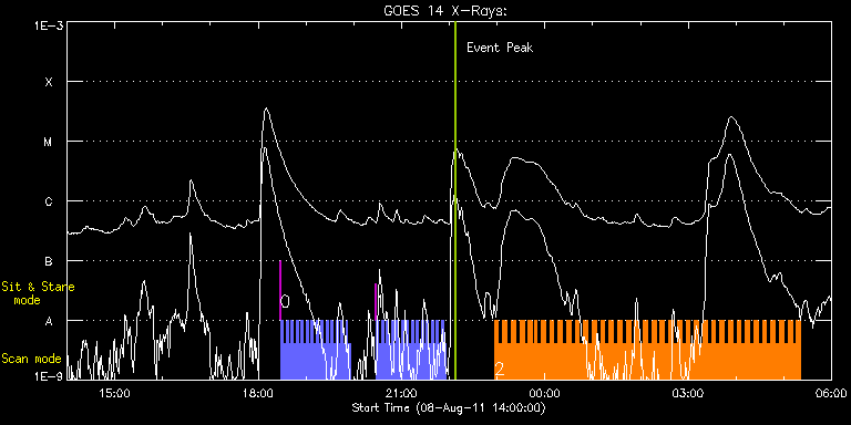 EIS Observation timeline overlay to GOES-Xray curve Code 1" 2" 40" 266" EIS Observations list for this event: STUDY ACRONYM ID DATE OBSERVED DESCRIPTION NOAA# TARGET 0 Alignment_modify_v2 | 23736 | 2011/08/08 18:27:26 | Hinode instrument alignment programme | | Quiet Sun TIMELINE ID DATE OBSERVED FITS FILE XCEN (+W/-E) YCEN (+N/-S) DUR ----------------------------------------------------------------------------------------------------------------- 23736 | 2011/08/08 18:27:26.000 | eis_l0_20110808_182726.fits.gz | -0.10 | 944.55 | 1m 23736 | 2011/08/08 18:28:52.000 | eis_l0_20110808_182852.fits.gz | -9.50 | 944.55 | 2m34s 23736 | 2011/08/08 18:31:59.000 | eis_l0_20110808_183159.fits.gz | -9.50 | 944.55 | 2m34s 23736 | 2011/08/08 18:35:07.000 | eis_l0_20110808_183507.fits.gz | -9.50 | 944.62 | 2m34s 23736 | 2011/08/08 18:38:14.000 | eis_l0_20110808_183814.fits.gz | -9.58 | 944.62 | 2m34s 23736 | 2011/08/08 18:41:22.000 | eis_l0_20110808_184122.fits.gz | -9.58 | 944.62 | 2m34s 23736 | 2011/08/08 18:44:29.000 | eis_l0_20110808_184429.fits.gz | -9.50 | 944.47 | 2m34s 23736 | 2011/08/08 18:47:37.000 | eis_l0_20110808_184737.fits.gz | -9.58 | 944.47 | 2m34s 23736 | 2011/08/08 18:50:44.000 | eis_l0_20110808_185044.fits.gz | -9.58 | 944.62 | 2m34s 23736 | 2011/08/08 18:53:52.000 | eis_l0_20110808_185352.fits.gz | -9.50 | 944.55 | 2m34s 23736 | 2011/08/08 18:57:00.000 | eis_l0_20110808_185700.fits.gz | -9.43 | 944.47 | 2m33s 23736 | 2011/08/08 19:00:07.000 | eis_l0_20110808_190007.fits.gz | -9.58 | 944.62 | 2m34s 23736 | 2011/08/08 19:03:15.000 | eis_l0_20110808_190315.fits.gz | -9.58 | 944.55 | 2m33s 23736 | 2011/08/08 19:06:22.000 | eis_l0_20110808_190622.fits.gz | -9.58 | 944.55 | 2m34s 23736 | 2011/08/08 19:09:30.000 | eis_l0_20110808_190930.fits.gz | -9.66 | 944.62 | 2m34s 23736 | 2011/08/08 19:12:37.000 | eis_l0_20110808_191237.fits.gz | -9.50 | 944.55 | 2m34s 23736 | 2011/08/08 19:15:45.000 | eis_l0_20110808_191545.fits.gz | -9.58 | 944.62 | 2m34s 23736 | 2011/08/08 19:18:52.000 | eis_l0_20110808_191852.fits.gz | -9.58 | 942.08 | 2m34s 23736 | 2011/08/08 19:22:00.000 | eis_l0_20110808_192200.fits.gz | -9.50 | 944.47 | 2m34s 23736 | 2011/08/08 19:25:07.000 | eis_l0_20110808_192507.fits.gz | -9.50 | 944.47 | 2m34s 23736 | 2011/08/08 19:28:15.000 | eis_l0_20110808_192815.fits.gz | -9.58 | 944.62 | 2m34s 23736 | 2011/08/08 19:31:22.000 | eis_l0_20110808_193122.fits.gz | -9.50 | 944.55 | 2m34s 23736 | 2011/08/08 19:34:30.000 | eis_l0_20110808_193430.fits.gz | -9.43 | 944.55 | 2m34s 23736 | 2011/08/08 19:37:37.000 | eis_l0_20110808_193737.fits.gz | -9.58 | 944.55 | 2m34s 23736 | 2011/08/08 19:40:45.000 | eis_l0_20110808_194045.fits.gz | -9.58 | 944.47 | 2m34s 23736 | 2011/08/08 19:43:52.000 | eis_l0_20110808_194352.fits.gz | -9.58 | 944.55 | 2m34s 23736 | 2011/08/08 19:47:00.000 | eis_l0_20110808_194700.fits.gz | -9.50 | 944.55 | 2m34s 23736 | 2011/08/08 19:50:08.000 | eis_l0_20110808_195008.fits.gz | -9.58 | 944.55 | 2m33s 23736 | 2011/08/08 19:53:15.000 | eis_l0_20110808_195315.fits.gz | -9.58 | 944.39 | 2m34s 1 Alignment_modify_v2 | 23737 | 2011/08/08 20:27:19 | Hinode instrument alignment programme | | Quiet Sun TIMELINE ID DATE OBSERVED FITS FILE XCEN (+W/-E) YCEN (+N/-S) DUR ----------------------------------------------------------------------------------------------------------------- 23737 | 2011/08/08 20:27:19.000 | eis_l0_20110808_202719.fits.gz | -9854.52 | -9963.20 | 1m 23737 | 2011/08/08 20:28:45.000 | eis_l0_20110808_202845.fits.gz | -9893.96 | -9963.20 | 2m33s 23737 | 2011/08/08 20:31:52.000 | eis_l0_20110808_203152.fits.gz | -9893.96 | -9963.20 | 2m34s 23737 | 2011/08/08 20:35:00.000 | eis_l0_20110808_203500.fits.gz | -9893.96 | -9963.20 | 2m34s 23737 | 2011/08/08 20:38:07.000 | eis_l0_20110808_203807.fits.gz | -9893.96 | -9963.20 | 2m34s 23737 | 2011/08/08 20:41:14.000 | eis_l0_20110808_204114.fits.gz | -9893.96 | -9963.20 | 2m35s 23737 | 2011/08/08 20:44:22.000 | eis_l0_20110808_204422.fits.gz | -9893.96 | -9963.20 | 2m34s 23737 | 2011/08/08 20:47:30.000 | eis_l0_20110808_204730.fits.gz | -9893.96 | -9963.20 | 2m34s 23737 | 2011/08/08 20:50:37.000 | eis_l0_20110808_205037.fits.gz | -9893.96 | -9963.20 | 2m34s 23737 | 2011/08/08 20:53:45.000 | eis_l0_20110808_205345.fits.gz | -9893.96 | -9963.20 | 2m34s 23737 | 2011/08/08 20:56:52.000 | eis_l0_20110808_205652.fits.gz | -9893.96 | -9963.20 | 2m34s 23737 | 2011/08/08 21:00:00.000 | eis_l0_20110808_210000.fits.gz | -9893.96 | -9963.20 | 2m34s 23737 | 2011/08/08 21:03:07.000 | eis_l0_20110808_210307.fits.gz | -9893.96 | -9963.20 | 2m34s 23737 | 2011/08/08 21:06:15.000 | eis_l0_20110808_210615.fits.gz | -9893.96 | -9963.20 | 2m34s 23737 | 2011/08/08 21:09:22.000 | eis_l0_20110808_210922.fits.gz | -9893.96 | -9963.20 | 2m34s 23737 | 2011/08/08 21:12:30.000 | eis_l0_20110808_211230.fits.gz | -9893.96 | -9963.20 | 2m34s 23737 | 2011/08/08 21:15:37.000 | eis_l0_20110808_211537.fits.gz | -9893.96 | -9963.20 | 2m34s 23737 | 2011/08/08 21:18:45.000 | eis_l0_20110808_211845.fits.gz | -9893.96 | -9963.20 | 2m34s 23737 | 2011/08/08 21:21:53.000 | eis_l0_20110808_212153.fits.gz | -9893.96 | -9963.20 | 2m33s 23737 | 2011/08/08 21:25:00.000 | eis_l0_20110808_212500.fits.gz | -9893.96 | -9963.20 | 2m34s 23737 | 2011/08/08 21:28:08.000 | eis_l0_20110808_212808.fits.gz | -9893.96 | -9963.20 | 2m34s 23737 | 2011/08/08 21:31:15.000 | eis_l0_20110808_213115.fits.gz | -9893.96 | -9963.20 | 2m34s 23737 | 2011/08/08 21:34:23.000 | eis_l0_20110808_213423.fits.gz | -9893.96 | -9963.20 | 2m34s 23737 | 2011/08/08 21:37:30.000 | eis_l0_20110808_213730.fits.gz | -9893.96 | -9963.20 | 2m34s 23737 | 2011/08/08 21:40:38.000 | eis_l0_20110808_214038.fits.gz | -9893.96 | -9963.20 | 2m34s 23737 | 2011/08/08 21:43:45.000 | eis_l0_20110808_214345.fits.gz | -9893.96 | -9963.20 | 2m34s 23737 | 2011/08/08 21:46:53.000 | eis_l0_20110808_214653.fits.gz | -9893.96 | -9963.20 | 2m34s 23737 | 2011/08/08 21:50:01.000 | eis_l0_20110808_215001.fits.gz | -9893.96 | -9963.20 | 2m33
