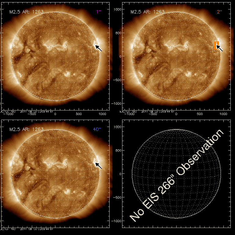 EIS Observation timeline overlay to GOES-Xray curve Code 1" 2" 40" 266" EIS Observations list for this event: STUDY ACRONYM ID DATE OBSERVED DESCRIPTION NOAA# TARGET 0 Alignment_modify_v2 | 23737 | 2011/08/08 20:27:19 | Hinode instrument alignment programme | | Quiet Sun TIMELINE ID DATE OBSERVED FITS FILE XCEN (+W/-E) YCEN (+N/-S) DUR ----------------------------------------------------------------------------------------------------------------- 23737 | 2011/08/08 20:27:19.000 | eis_l0_20110808_202719.fits.gz | -9854.52 | -9963.20 | 1m 23737 | 2011/08/08 20:28:45.000 | eis_l0_20110808_202845.fits.gz | -9893.96 | -9963.20 | 2m33s 23737 | 2011/08/08 20:31:52.000 | eis_l0_20110808_203152.fits.gz | -9893.96 | -9963.20 | 2m34s 23737 | 2011/08/08 20:35:00.000 | eis_l0_20110808_203500.fits.gz | -9893.96 | -9963.20 | 2m34s 23737 | 2011/08/08 20:38:07.000 | eis_l0_20110808_203807.fits.gz | -9893.96 | -9963.20 | 2m34s 23737 | 2011/08/08 20:41:14.000 | eis_l0_20110808_204114.fits.gz | -9893.96 | -9963.20 | 2m35s 23737 | 2011/08/08 20:44:22.000 | eis_l0_20110808_204422.fits.gz | -9893.96 | -9963.20 | 2m34s 23737 | 2011/08/08 20:47:30.000 | eis_l0_20110808_204730.fits.gz | -9893.96 | -9963.20 | 2m34s 23737 | 2011/08/08 20:50:37.000 | eis_l0_20110808_205037.fits.gz | -9893.96 | -9963.20 | 2m34s 23737 | 2011/08/08 20:53:45.000 | eis_l0_20110808_205345.fits.gz | -9893.96 | -9963.20 | 2m34s 23737 | 2011/08/08 20:56:52.000 | eis_l0_20110808_205652.fits.gz | -9893.96 | -9963.20 | 2m34s 23737 | 2011/08/08 21:00:00.000 | eis_l0_20110808_210000.fits.gz | -9893.96 | -9963.20 | 2m34s 23737 | 2011/08/08 21:03:07.000 | eis_l0_20110808_210307.fits.gz | -9893.96 | -9963.20 | 2m34s 23737 | 2011/08/08 21:06:15.000 | eis_l0_20110808_210615.fits.gz | -9893.96 | -9963.20 | 2m34s 23737 | 2011/08/08 21:09:22.000 | eis_l0_20110808_210922.fits.gz | -9893.96 | -9963.20 | 2m34s 23737 | 2011/08/08 21:12:30.000 | eis_l0_20110808_211230.fits.gz | -9893.96 | -9963.20 | 2m34s 23737 | 2011/08/08 21:15:37.000 | eis_l0_20110808_211537.fits.gz | -9893.96 | -9963.20 | 2m34s 23737 | 2011/08/08 21:18:45.000 | eis_l0_20110808_211845.fits.gz | -9893.96 | -9963.20 | 2m34s 23737 | 2011/08/08 21:21:53.000 | eis_l0_20110808_212153.fits.gz | -9893.96 | -9963.20 | 2m33s 23737 | 2011/08/08 21:25:00.000 | eis_l0_20110808_212500.fits.gz | -9893.96 | -9963.20 | 2m34s 23737 | 2011/08/08 21:28:08.000 | eis_l0_20110808_212808.fits.gz | -9893.96 | -9963.20 | 2m34s 23737 | 2011/08/08 21:31:15.000 | eis_l0_20110808_213115.fits.gz | -9893.96 | -9963.20 | 2m34s 23737 | 2011/08/08 21:34:23.000 | eis_l0_20110808_213423.fits.gz | -9893.96 | -9963.20 | 2m34s 23737 | 2011/08/08 21:37:30.000 | eis_l0_20110808_213730.fits.gz | -9893.96 | -9963.20 | 2m34s 23737 | 2011/08/08 21:40:38.000 | eis_l0_20110808_214038.fits.gz | -9893.96 | -9963.20 | 2m34s 23737 | 2011/08/08 21:43:45.000 | eis_l0_20110808_214345.fits.gz | -9893.96 | -9963.20 | 2m34s 23737 | 2011/08/08 21:46:53.000 | eis_l0_20110808_214653.fits.gz | -9893.96 | -9963.20 | 2m34s 23737 | 2011/08/08 21:50:01.000 | eis_l0_20110808_215001.fits.gz | -9893.96 | -9963.20 | 2m33s 23737 | 2011/08/08 21:53:08.000 | eis_l0_20110808_215308.fits.gz | -9893.96 | -9963.20 | 2m34s 1 HH_Flare+AR_180x152 | 23738 | 2011/08/08 22:56:32 | Major flare Watch | 1263 | Flare TIMELINE ID DATE OBSERVED FITS FILE XCEN (+W/-E) YCEN (+N/-S) DUR ----------------------------------------------------------------------------------------------------------------- 23738 | 2011/08/08 22:56:32.000 | eis_l0_20110808_225632.fits.gz | 842.06 | 223.36 | 5m18s 23738 | 2011/08/08 23:01:53.000 | eis_l0_20110808_230153.fits.gz | 842.29 | 223.29 | 5m19s 23738 | 2011/08/08 23:07:15.000 | eis_l0_20110808_230715.fits.gz | 842.53 | 223.44 | 5m17s 23738 | 2011/08/08 23:12:35.000 | eis_l0_20110808_231235.fits.gz | 842.84 | 223.60 | 5m18s 23738 | 2011/08/08 23:17:55.000 | eis_l0_20110808_231755.fits.gz | 843.14 | 223.60 | 5m19s 23738 | 2011/08/08 23:23:16.000 | eis_l0_20110808_232316.fits.gz | 843.45 | 223.60 | 5m18s 23738 | 2011/08/08 23:28:37.000 | eis_l0_20110808_232837.fits.gz | 843.68 | 223.83 | 5m18s 23738 | 2011/08/08 23:33:58.000 | eis_l0_20110808_233358.fits.gz | 844.07 | 223.83 | 5m18s 23738 | 2011/08/08 23:39:19.000 | eis_l0_20110808_233919.fits.gz | 844.38 | 223.90 | 5m18s 23738 | 2011/08/08 23:44:39.000 | eis_l0_20110808_234439.fits.gz | 844.53 | 223.83 | 1m56s 23738 | 2011/08/08 23:46:47.000 | eis_l0_20110808_234647.fits.gz | 844.77 | 224.06 | 3m10s 23738 | 2011/08/08 23:50:00.000 | eis_l0_20110808_235000.fits.gz | 844.84 | 224.06 | 5m18s 23738 | 2011/08/08 23:55:21.000 | eis_l0_20110808_235521.fits.gz | 845.08 | 224.14 | 5m19s 23738 | 2011/08/09 00:00:42.000 | eis_l0_20110809_000042.fits.gz | 845.39 | 224.14 | 5m18s 23738 | 2011/08/09 00:06:03.000 | eis_l0_20110809_000603.fits.gz | 845.69 | 224.37 | 5m18s 23738 | 2011/08/09 00:11:24.000 | eis_l0_20110809_001124.fits.gz | 845.92 | 224.45 | 5m18s 23738 | 2011/08/09 00:16:44.000 | eis_l0_20110809_001644.fits.gz | 846.23 | 224.52 | 5m19s 23738 | 2011/08/09 00:22:05.000 | eis_l0_20110809_002205.fits.gz | 846.54 | 224.60 | 5m19s 23738 | 2011/08/09 00:27:27.000 | eis_l0_20110809_002727.fits.gz | 846.85 | 224.60 | 5m17s 23738 | 2011/08/09 00:32:47.000 | eis_l0_20110809_003247.fits.gz | 847.16 | 224.60 | 5m17s 23738 | 2011/08/09 00:38:07.000 | eis_l0_20110809_003807.fits.gz | 847.39 | 224.68 | 5m18s 23738 | 2011/08/09 00:43:28.000 | eis_l0_20110809_004328.fits.gz | 847.62 | 224.75 | 5m17s 23738 | 2011/08/09 00:48:48.000 | eis_l0_20110809_004848.fits.gz | 847.93 | 224.83 | 5m18s 23738 | 2011/08/09 00:54:09.000 | eis_l0_20110809_005409.fits.gz | 848.16 | 224.99 | 5m18s 23738 | 2011/08/09 00:59:30.000 | eis_l0_20110809_005930.fits.gz | 848.47 | 224.99 | 5m18s 23738 | 2011/08/09 01:04:51.000 | eis_l0_20110809_010451.fits.gz | 848.78 | 225.14 | 5m17s 23738 | 2011/08/09 01:10:11.000 | eis_l0_20110809_011011.fits.gz | 849.02 | 225.29 | 5m17s 23738 | 2011/08/09 01:15:31.000 | eis_l0_20110809_011531.fits.gz | 849.3