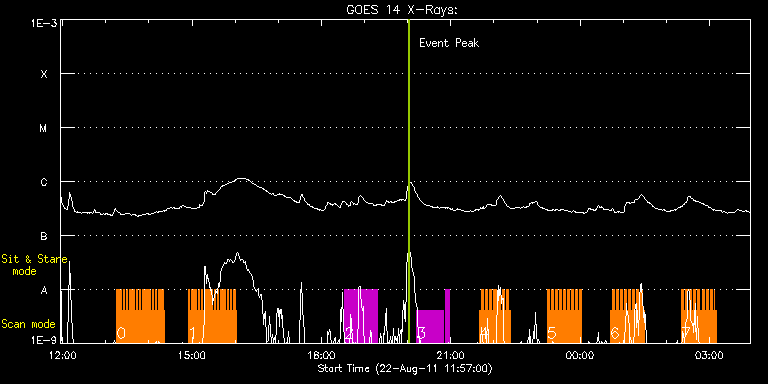 EIS Observation timeline overlay to GOES-Xray curve Code 1" 2" 40" 266" EIS Observations list for this event: STUDY ACRONYM ID DATE OBSERVED DESCRIPTION NOAA# TARGET 0 Cam_flare_diag | 23931 | 2011/08/22 13:15:10 | AR11271 flare obs | | Flare TIMELINE ID DATE OBSERVED FITS FILE XCEN (+W/-E) YCEN (+N/-S) DUR ----------------------------------------------------------------------------------------------------------------- 23931 | 2011/08/22 13:15:10.000 | eis_l0_20110822_131510.fits.gz | 160.44 | 132.75 | 2m12s 23931 | 2011/08/22 13:17:24.000 | eis_l0_20110822_131724.fits.gz | 160.75 | 132.75 | 2m12s 23931 | 2011/08/22 13:19:39.000 | eis_l0_20110822_131939.fits.gz | 161.14 | 132.60 | 2m12s 23931 | 2011/08/22 13:21:54.000 | eis_l0_20110822_132154.fits.gz | 161.45 | 132.75 | 2m11s 23931 | 2011/08/22 13:24:08.000 | eis_l0_20110822_132408.fits.gz | 161.91 | 132.44 | 2m12s 23931 | 2011/08/22 13:26:22.000 | eis_l0_20110822_132622.fits.gz | 162.14 | 132.91 | 2m12s 23931 | 2011/08/22 13:28:37.000 | eis_l0_20110822_132837.fits.gz | 162.45 | 132.75 | 2m12s 23931 | 2011/08/22 13:30:52.000 | eis_l0_20110822_133052.fits.gz | 162.84 | 132.68 | 2m11s 23931 | 2011/08/22 13:33:06.000 | eis_l0_20110822_133306.fits.gz | 162.99 | 132.68 | 2m12s 23931 | 2011/08/22 13:35:21.000 | eis_l0_20110822_133521.fits.gz | 163.46 | 132.60 | 2m12s 23931 | 2011/08/22 13:37:36.000 | eis_l0_20110822_133736.fits.gz | 163.69 | 132.68 | 2m11s 23931 | 2011/08/22 13:39:50.000 | eis_l0_20110822_133950.fits.gz | 164.07 | 132.75 | 2m12s 23931 | 2011/08/22 13:42:04.000 | eis_l0_20110822_134204.fits.gz | 164.38 | 132.75 | 2m12s 23931 | 2011/08/22 13:44:19.000 | eis_l0_20110822_134419.fits.gz | 164.69 | 132.75 | 2m12s 23931 | 2011/08/22 13:46:34.000 | eis_l0_20110822_134634.fits.gz | 165.00 | 132.75 | 2m11s 23931 | 2011/08/22 13:48:48.000 | eis_l0_20110822_134848.fits.gz | 165.31 | 132.75 | 2m12s 23931 | 2011/08/22 13:51:03.000 | eis_l0_20110822_135103.fits.gz | 165.70 | 132.68 | 2m11s 23931 | 2011/08/22 13:53:17.000 | eis_l0_20110822_135317.fits.gz | 166.08 | 132.75 | 2m11s 23931 | 2011/08/22 13:55:31.000 | eis_l0_20110822_135531.fits.gz | 166.39 | 132.68 | 2m12s 23931 | 2011/08/22 13:57:45.000 | eis_l0_20110822_135745.fits.gz | 166.70 | 132.68 | 2m12s 23931 | 2011/08/22 14:00:00.000 | eis_l0_20110822_140000.fits.gz | 167.01 | 132.68 | 2m12s 23931 | 2011/08/22 14:02:14.000 | eis_l0_20110822_140214.fits.gz | 167.32 | 132.68 | 2m12s 23931 | 2011/08/22 14:04:29.000 | eis_l0_20110822_140429.fits.gz | 167.55 | 132.75 | 2m12s 23931 | 2011/08/22 14:06:43.000 | eis_l0_20110822_140643.fits.gz | 167.93 | 132.83 | 2m12s 23931 | 2011/08/22 14:08:58.000 | eis_l0_20110822_140858.fits.gz | 168.24 | 132.83 | 2m12s 23931 | 2011/08/22 14:11:12.000 | eis_l0_20110822_141112.fits.gz | 168.55 | 132.83 | 2m12s 23931 | 2011/08/22 14:13:27.000 | eis_l0_20110822_141327.fits.gz | 169.02 | 132.68 | 2m11s 23931 | 2011/08/22 14:15:41.000 | eis_l0_20110822_141541.fits.gz | 169.25 | 132.75 | 2m12s 23931 | 2011/08/22 14:17:56.000 | eis_l0_20110822_141756.fits.gz | 169.56 | 132.75 | 2m12s 23931 | 2011/08/22 14:20:10.000 | eis_l0_20110822_142010.fits.gz | 169.79 | 132.83 | 2m12s 1 Cam_flare_diag | 23932 | 2011/08/22 14:54:54 | AR11271 flare obs | | Flare TIMELINE ID DATE OBSERVED FITS FILE XCEN (+W/-E) YCEN (+N/-S) DUR ----------------------------------------------------------------------------------------------------------------- 23932 | 2011/08/22 14:54:54.000 | eis_l0_20110822_145454.fits.gz | 174.89 | 133.06 | 2m12s 23932 | 2011/08/22 14:57:09.000 | eis_l0_20110822_145709.fits.gz | 175.20 | 132.98 | 2m12s 23932 | 2011/08/22 14:59:23.000 | eis_l0_20110822_145923.fits.gz | 175.51 | 133.06 | 2m12s 23932 | 2011/08/22 15:01:38.000 | eis_l0_20110822_150138.fits.gz | 175.89 | 132.98 | 2m12s 23932 | 2011/08/22 15:03:52.000 | eis_l0_20110822_150352.fits.gz | 176.20 | 132.98 | 2m13s 23932 | 2011/08/22 15:06:07.000 | eis_l0_20110822_150607.fits.gz | 176.51 | 133.14 | 2m12s 23932 | 2011/08/22 15:08:22.000 | eis_l0_20110822_150822.fits.gz | 176.90 | 132.98 | 2m12s 23932 | 2011/08/22 15:10:37.000 | eis_l0_20110822_151037.fits.gz | 177.21 | 132.91 | 2m12s 23932 | 2011/08/22 15:12:51.000 | eis_l0_20110822_151251.fits.gz | 177.59 | 132.91 | 2m12s 23932 | 2011/08/22 15:15:06.000 | eis_l0_20110822_151506.fits.gz | 177.82 | 133.06 | 2m12s 23932 | 2011/08/22 15:17:20.000 | eis_l0_20110822_151720.fits.gz | 178.21 | 132.98 | 2m12s 23932 | 2011/08/22 15:19:35.000 | eis_l0_20110822_151935.fits.gz | 178.52 | 133.14 | 2m12s 23932 | 2011/08/22 15:21:49.000 | eis_l0_20110822_152149.fits.gz | 178.83 | 132.91 | 2m12s 23932 | 2011/08/22 15:24:04.000 | eis_l0_20110822_152404.fits.gz | 179.14 | 132.91 | 2m12s 23932 | 2011/08/22 15:26:18.000 | eis_l0_20110822_152618.fits.gz | 179.45 | 133.14 | 2m12s 23932 | 2011/08/22 15:28:33.000 | eis_l0_20110822_152833.fits.gz | 179.75 | 133.06 | 2m12s 23932 | 2011/08/22 15:30:47.000 | eis_l0_20110822_153047.fits.gz | 180.14 | 133.06 | 2m12s 23932 | 2011/08/22 15:33:02.000 | eis_l0_20110822_153302.fits.gz | 180.53 | 132.91 | 2m12s 23932 | 2011/08/22 15:35:16.000 | eis_l0_20110822_153516.fits.gz | 180.76 | 133.06 | 2m12s 23932 | 2011/08/22 15:37:31.000 | eis_l0_20110822_153731.fits.gz | 181.07 | 133.14 | 2m11s 23932 | 2011/08/22 15:39:45.000 | eis_l0_20110822_153945.fits.gz | 181.45 | 132.98 | 2m12s 23932 | 2011/08/22 15:42:00.000 | eis_l0_20110822_154200.fits.gz | 181.68 | 133.22 | 2m12s 23932 | 2011/08/22 15:44:14.000 | eis_l0_20110822_154414.fits.gz | 182.07 | 133.22 | 2m12s 23932 | 2011/08/22 15:46:29.000 | eis_l0_20110822_154629.fits.gz | 182.38 | 132.98 | 2m12s 23932 | 2011/08/22 15:48:43.000 | eis_l0_20110822_154843.fits.gz | 182.69 | 133.06 | 2m13s 23932 | 2011/08/22 15:50:58.000 | eis_l0_20110822_155058.fits.gz | 183.08 | 133.14 | 2m12s 23932 | 2011/08/22 15:53:13.000 | eis_l0_20110822_155313.fits.gz | 183.38 | 133.06 | 2m12s 23932 | 2011/08/22 15:55:28.000 | eis_l0_20110822_155528.fits.gz | 183.69 | 133.06 | 2m12s 23932 | 2011/08/22 15:57:42.000 | eis_l0_2