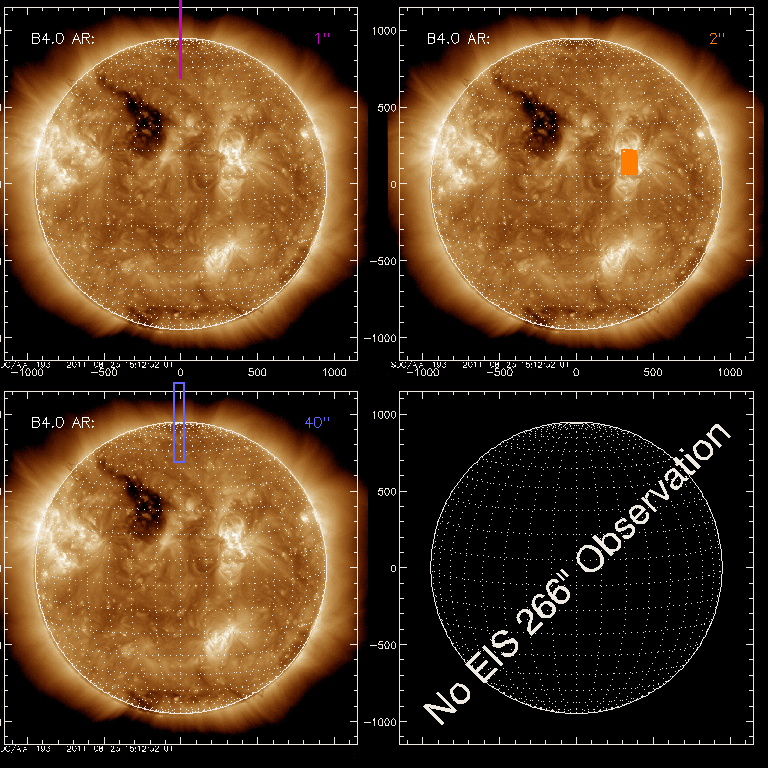 EIS Observation timeline overlay to GOES-Xray curve Code 1" 2" 40" 266" EIS Observations list for this event: STUDY ACRONYM ID DATE OBSERVED DESCRIPTION NOAA# TARGET 0 HH_Flare_180x152f | 23975 | 2011/08/23 08:54:47 | AR11271 flare obs | 1271 | Flare TIMELINE ID DATE OBSERVED FITS FILE XCEN (+W/-E) YCEN (+N/-S) DUR ----------------------------------------------------------------------------------------------------------------- 23975 | 2011/08/23 08:54:47.000 | eis_l0_20110823_085447.fits.gz | 326.36 | 137.85 | 2m48s 23975 | 2011/08/23 08:57:37.000 | eis_l0_20110823_085737.fits.gz | 326.74 | 137.85 | 2m48s 23975 | 2011/08/23 09:00:28.000 | eis_l0_20110823_090028.fits.gz | 327.21 | 137.93 | 2m43s 23975 | 2011/08/23 09:03:19.000 | eis_l0_20110823_090319.fits.gz | 327.59 | 137.93 | 2m47s 23975 | 2011/08/23 09:06:09.000 | eis_l0_20110823_090609.fits.gz | 328.06 | 137.93 | 2m48s 23975 | 2011/08/23 09:09:00.000 | eis_l0_20110823_090900.fits.gz | 328.37 | 137.93 | 2m47s 23975 | 2011/08/23 09:11:50.000 | eis_l0_20110823_091150.fits.gz | 328.75 | 137.93 | 2m48s 23975 | 2011/08/23 09:14:41.000 | eis_l0_20110823_091441.fits.gz | 329.22 | 137.93 | 2m48s 23975 | 2011/08/23 09:17:32.000 | eis_l0_20110823_091732.fits.gz | 329.52 | 138.01 | 2m48s 23975 | 2011/08/23 09:20:23.000 | eis_l0_20110823_092023.fits.gz | 329.91 | 137.93 | 2m49s 23975 | 2011/08/23 09:23:14.000 | eis_l0_20110823_092314.fits.gz | 330.38 | 138.01 | 2m48s 23975 | 2011/08/23 09:26:05.000 | eis_l0_20110823_092605.fits.gz | 330.76 | 137.93 | 2m48s 23975 | 2011/08/23 09:28:56.000 | eis_l0_20110823_092856.fits.gz | 331.15 | 138.01 | 2m47s 23975 | 2011/08/23 09:31:46.000 | eis_l0_20110823_093146.fits.gz | 331.38 | 138.08 | 2m48s 23975 | 2011/08/23 09:34:36.000 | eis_l0_20110823_093436.fits.gz | 331.77 | 138.01 | 2m48s 23975 | 2011/08/23 09:37:27.000 | eis_l0_20110823_093727.fits.gz | 332.31 | 138.16 | 2m48s 23975 | 2011/08/23 09:40:18.000 | eis_l0_20110823_094018.fits.gz | 332.69 | 138.16 | 2m48s 1 Cam_flare_diag | 23988 | 2011/08/23 11:15:14 | Small Cambrige Flare Study | | Flare TIMELINE ID DATE OBSERVED FITS FILE XCEN (+W/-E) YCEN (+N/-S) DUR ----------------------------------------------------------------------------------------------------------------- 23988 | 2011/08/23 11:15:14.000 | eis_l0_20110823_111514.fits.gz | 318.49 | 133.68 | 2m12s 23988 | 2011/08/23 11:17:28.000 | eis_l0_20110823_111728.fits.gz | 318.80 | 133.83 | 2m12s 23988 | 2011/08/23 11:19:43.000 | eis_l0_20110823_111943.fits.gz | 319.11 | 133.68 | 2m12s 23988 | 2011/08/23 11:21:58.000 | eis_l0_20110823_112158.fits.gz | 319.34 | 133.60 | 2m11s 23988 | 2011/08/23 11:24:12.000 | eis_l0_20110823_112412.fits.gz | 319.73 | 133.68 | 2m12s 23988 | 2011/08/23 11:26:27.000 | eis_l0_20110823_112627.fits.gz | 320.04 | 133.76 | 2m12s 23988 | 2011/08/23 11:28:42.000 | eis_l0_20110823_112842.fits.gz | 320.35 | 133.76 | 2m11s 23988 | 2011/08/23 11:30:56.000 | eis_l0_20110823_113056.fits.gz | 320.65 | 133.76 | 2m12s 23988 | 2011/08/23 11:33:10.000 | eis_l0_20110823_113310.fits.gz | 321.04 | 133.83 | 2m12s 23988 | 2011/08/23 11:35:25.000 | eis_l0_20110823_113525.fits.gz | 321.27 | 133.91 | 2m12s 23988 | 2011/08/23 11:37:40.000 | eis_l0_20110823_113740.fits.gz | 321.73 | 133.83 | 2m11s 23988 | 2011/08/23 11:39:54.000 | eis_l0_20110823_113954.fits.gz | 321.97 | 133.83 | 2m12s 23988 | 2011/08/23 11:42:09.000 | eis_l0_20110823_114209.fits.gz | 322.20 | 133.91 | 2m11s 23988 | 2011/08/23 11:44:23.000 | eis_l0_20110823_114423.fits.gz | 322.51 | 133.91 | 2m12s 23988 | 2011/08/23 11:46:38.000 | eis_l0_20110823_114638.fits.gz | 322.89 | 133.83 | 2m11s 23988 | 2011/08/23 11:48:52.000 | eis_l0_20110823_114852.fits.gz | 323.13 | 133.99 | 2m12s 23988 | 2011/08/23 11:51:07.000 | eis_l0_20110823_115107.fits.gz | 323.43 | 133.91 | 2m12s 23988 | 2011/08/23 11:53:22.000 | eis_l0_20110823_115322.fits.gz | 323.82 | 134.07 | 2m11s 23988 | 2011/08/23 11:55:36.000 | eis_l0_20110823_115536.fits.gz | 323.98 | 134.07 | 2m12s 23988 | 2011/08/23 11:57:50.000 | eis_l0_20110823_115750.fits.gz | 324.36 | 133.99 | 2m12s 23988 | 2011/08/23 12:00:05.000 | eis_l0_20110823_120005.fits.gz | 324.67 | 134.07 | 2m12s 23988 | 2011/08/23 12:02:19.000 | eis_l0_20110823_120219.fits.gz | 325.06 | 133.99 | 2m12s 23988 | 2011/08/23 12:04:34.000 | eis_l0_20110823_120434.fits.gz | 325.29 | 134.14 | 2m12s 23988 | 2011/08/23 12:06:48.000 | eis_l0_20110823_120648.fits.gz | 325.60 | 134.14 | 2m12s 23988 | 2011/08/23 12:09:03.000 | eis_l0_20110823_120903.fits.gz | 325.83 | 134.14 | 2m12s 23988 | 2011/08/23 12:11:18.000 | eis_l0_20110823_121118.fits.gz | 326.29 | 134.22 | 2m12s 23988 | 2011/08/23 12:13:32.000 | eis_l0_20110823_121332.fits.gz | 326.52 | 134.07 | 2m12s 23988 | 2011/08/23 12:15:47.000 | eis_l0_20110823_121547.fits.gz | 326.83 | 134.14 | 2m12s 23988 | 2011/08/23 12:18:02.000 | eis_l0_20110823_121802.fits.gz | 327.22 | 134.14 | 2m12s 23988 | 2011/08/23 12:20:17.000 | eis_l0_20110823_122017.fits.gz | 327.53 | 134.07 | 2m11s 23988 | 2011/08/23 12:22:31.000 | eis_l0_20110823_122231.fits.gz | 327.84 | 134.14 | 2m12s 23988 | 2011/08/23 12:24:46.000 | eis_l0_20110823_122446.fits.gz | 328.07 | 134.30 | 2m11s 23988 | 2011/08/23 12:27:00.000 | eis_l0_20110823_122700.fits.gz | 328.46 | 134.07 | 2m12s 23988 | 2011/08/23 12:29:14.000 | eis_l0_20110823_122914.fits.gz | 328.69 | 134.22 | 2m12s 23988 | 2011/08/23 12:31:29.000 | eis_l0_20110823_123129.fits.gz | 328.92 | 134.22 | 2m12s 23988 | 2011/08/23 12:33:43.000 | eis_l0_20110823_123343.fits.gz | 329.30 | 134.30 | 2m12s 23988 | 2011/08/23 12:35:58.000 | eis_l0_20110823_123558.fits.gz | 329.61 | 134.22 | 2m12s 23988 | 2011/08/23 12:38:12.000 | eis_l0_20110823_123812.fits.gz | 330.00 | 134.14 | 2m12s 23988 | 2011/08/23 12:40:27.000 | eis_l0_20110823_124027.fits.gz | 330.31 | 134.14 | 2m12s 23988 | 2011/08/23 12:42:41.000 | eis_l0_20110823_124241.fits.gz | 330.62 | 134.14 | 2m12s 23988 | 2011/08/23 12:44:56.000 | eis_l0_20110823_124456.fits.gz | 330.93 | 134.30 | 2m12s 23988 | 2011/08/23 12:47: