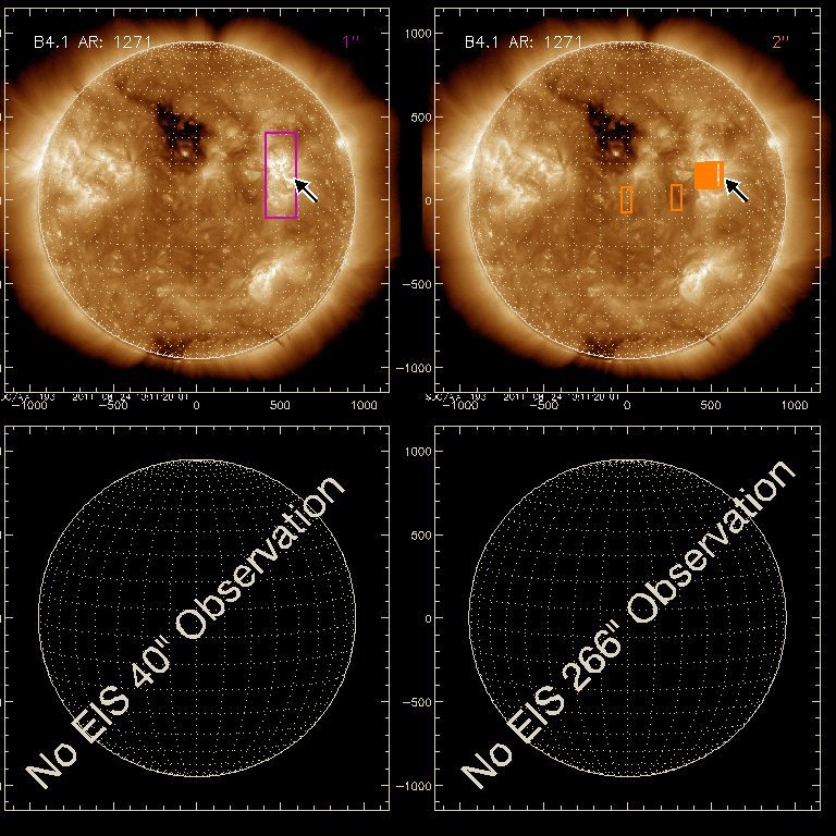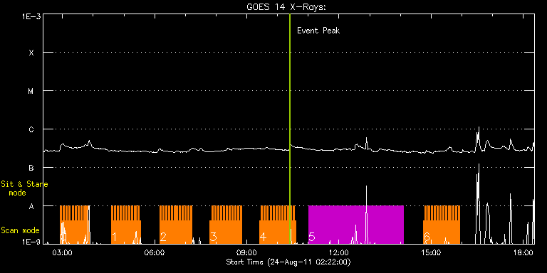 EIS Observation timeline overlay to GOES-Xray curve Code 1" 2" 40" 266" EIS Observations list for this event: STUDY ACRONYM ID DATE OBSERVED DESCRIPTION NOAA# TARGET 0 HH_Flare_180x152f | 23991 | 2011/08/24 02:55:41 | AR 11271 flare obs | 1271 | Flare TIMELINE ID DATE OBSERVED FITS FILE XCEN (+W/-E) YCEN (+N/-S) DUR ----------------------------------------------------------------------------------------------------------------- 23991 | 2011/08/24 02:55:41.000 | eis_l0_20110824_025541.fits.gz | 443.16 | 140.40 | 2m47s 23991 | 2011/08/24 02:58:31.000 | eis_l0_20110824_025831.fits.gz | 443.54 | 140.48 | 2m47s 23991 | 2011/08/24 03:01:21.000 | eis_l0_20110824_030121.fits.gz | 443.93 | 140.32 | 2m48s 23991 | 2011/08/24 03:04:12.000 | eis_l0_20110824_030412.fits.gz | 444.24 | 140.55 | 2m47s 23991 | 2011/08/24 03:07:02.000 | eis_l0_20110824_030702.fits.gz | 444.62 | 140.40 | 2m47s 23991 | 2011/08/24 03:09:52.000 | eis_l0_20110824_030952.fits.gz | 444.93 | 140.63 | 2m48s 23991 | 2011/08/24 03:12:42.000 | eis_l0_20110824_031242.fits.gz | 445.40 | 140.55 | 2m48s 23991 | 2011/08/24 03:15:33.000 | eis_l0_20110824_031533.fits.gz | 445.78 | 140.55 | 2m48s 23991 | 2011/08/24 03:18:24.000 | eis_l0_20110824_031824.fits.gz | 446.17 | 140.55 | 2m48s 23991 | 2011/08/24 03:21:15.000 | eis_l0_20110824_032115.fits.gz | 446.55 | 140.55 | 2m47s 23991 | 2011/08/24 03:24:05.000 | eis_l0_20110824_032405.fits.gz | 446.86 | 140.71 | 2m48s 23991 | 2011/08/24 03:26:56.000 | eis_l0_20110824_032656.fits.gz | 447.17 | 140.63 | 2m48s 23991 | 2011/08/24 03:29:47.000 | eis_l0_20110824_032947.fits.gz | 447.64 | 140.71 | 2m48s 23991 | 2011/08/24 03:32:38.000 | eis_l0_20110824_033238.fits.gz | 447.87 | 140.71 | 2m47s 23991 | 2011/08/24 03:35:28.000 | eis_l0_20110824_033528.fits.gz | 448.33 | 140.63 | 2m48s 23991 | 2011/08/24 03:38:19.000 | eis_l0_20110824_033819.fits.gz | 448.64 | 140.71 | 2m48s 23991 | 2011/08/24 03:41:09.000 | eis_l0_20110824_034109.fits.gz | 448.95 | 140.86 | 2m48s 23991 | 2011/08/24 03:44:00.000 | eis_l0_20110824_034400.fits.gz | 449.34 | 140.79 | 38s 23991 | 2011/08/24 03:44:45.000 | eis_l0_20110824_034445.fits.gz | 449.49 | 140.86 | 2m3s 23991 | 2011/08/24 03:46:51.000 | eis_l0_20110824_034651.fits.gz | 449.72 | 140.86 | 4s 23991 | 2011/08/24 03:47:02.000 | eis_l0_20110824_034702.fits.gz | 449.80 | 140.86 | 10s 23991 | 2011/08/24 03:47:24.000 | eis_l0_20110824_034724.fits.gz | 449.88 | 140.86 | 27s 23991 | 2011/08/24 03:47:58.000 | eis_l0_20110824_034758.fits.gz | 449.88 | 140.79 | 1m40s 23991 | 2011/08/24 03:49:41.000 | eis_l0_20110824_034941.fits.gz | 450.11 | 140.86 | 2m48s 1 HH_Flare_180x152f | 23992 | 2011/08/24 04:35:13 | AR 11271 flare obs | 1271 | Flare TIMELINE ID DATE OBSERVED FITS FILE XCEN (+W/-E) YCEN (+N/-S) DUR ----------------------------------------------------------------------------------------------------------------- 23992 | 2011/08/24 04:35:13.000 | eis_l0_20110824_043513.fits.gz | 455.98 | 141.10 | 2m48s 23992 | 2011/08/24 04:38:04.000 | eis_l0_20110824_043804.fits.gz | 456.37 | 141.17 | 2m49s 23992 | 2011/08/24 04:40:56.000 | eis_l0_20110824_044056.fits.gz | 456.60 | 141.48 | 2m48s 23992 | 2011/08/24 04:43:46.000 | eis_l0_20110824_044346.fits.gz | 457.06 | 141.33 | 2m48s 23992 | 2011/08/24 04:46:37.000 | eis_l0_20110824_044637.fits.gz | 457.45 | 141.40 | 2m48s 23992 | 2011/08/24 04:49:28.000 | eis_l0_20110824_044928.fits.gz | 457.76 | 141.48 | 2m48s 23992 | 2011/08/24 04:52:19.000 | eis_l0_20110824_045219.fits.gz | 458.30 | 141.40 | 2m48s 23992 | 2011/08/24 04:55:09.000 | eis_l0_20110824_045509.fits.gz | 458.53 | 141.33 | 2m48s 23992 | 2011/08/24 04:58:00.000 | eis_l0_20110824_045800.fits.gz | 458.84 | 141.48 | 2m48s 23992 | 2011/08/24 05:00:51.000 | eis_l0_20110824_050051.fits.gz | 459.30 | 141.40 | 2m48s 23992 | 2011/08/24 05:03:42.000 | eis_l0_20110824_050342.fits.gz | 459.61 | 141.40 | 2m48s 23992 | 2011/08/24 05:06:33.000 | eis_l0_20110824_050633.fits.gz | 460.00 | 141.64 | 2m47s 23992 | 2011/08/24 05:09:23.000 | eis_l0_20110824_050923.fits.gz | 460.23 | 141.56 | 2m48s 23992 | 2011/08/24 05:12:14.000 | eis_l0_20110824_051214.fits.gz | 460.77 | 141.48 | 2m48s 23992 | 2011/08/24 05:15:05.000 | eis_l0_20110824_051505.fits.gz | 461.00 | 141.56 | 2m48s 23992 | 2011/08/24 05:17:56.000 | eis_l0_20110824_051756.fits.gz | 461.39 | 141.56 | 2m47s 23992 | 2011/08/24 05:20:46.000 | eis_l0_20110824_052046.fits.gz | 461.77 | 141.56 | 2m48s 23992 | 2011/08/24 05:23:37.000 | eis_l0_20110824_052337.fits.gz | 462.08 | 141.64 | 2m48s 23992 | 2011/08/24 05:26:28.000 | eis_l0_20110824_052628.fits.gz | 462.55 | 141.79 | 2m48s 23992 | 2011/08/24 05:29:19.000 | eis_l0_20110824_052919.fits.gz | 462.85 | 141.79 | 2m48s 2 HH_Flare_180x152f | 23993 | 2011/08/24 06:10:13 | AR 11271 flare obs | 1271 | Flare TIMELINE ID DATE OBSERVED FITS FILE XCEN (+W/-E) YCEN (+N/-S) DUR ----------------------------------------------------------------------------------------------------------------- 23993 | 2011/08/24 06:10:13.000 | eis_l0_20110824_061013.fits.gz | 468.11 | 142.10 | 2m48s 23993 | 2011/08/24 06:13:04.000 | eis_l0_20110824_061304.fits.gz | 468.34 | 142.18 | 2m47s 23993 | 2011/08/24 06:15:54.000 | eis_l0_20110824_061554.fits.gz | 468.73 | 142.10 | 2m48s 23993 | 2011/08/24 06:18:45.000 | eis_l0_20110824_061845.fits.gz | 298.47 | 9.93 | 2m48s 23993 | 2011/08/24 06:21:35.000 | eis_l0_20110824_062135.fits.gz | -2.41 | -0.50 | 2m48s 23993 | 2011/08/24 06:24:26.000 | eis_l0_20110824_062426.fits.gz | -2.33 | -0.42 | 2m48s 23993 | 2011/08/24 06:27:17.000 | eis_l0_20110824_062717.fits.gz | -2.33 | -0.42 | 2m48s 23993 | 2011/08/24 06:30:08.000 | eis_l0_20110824_063008.fits.gz | 470.66 | 142.33 | 2m48s 23993 | 2011/08/24 06:32:59.000 | eis_l0_20110824_063259.fits.gz | 470.96 | 142.33 | 2m47s 23993 | 2011/08/24 06:35:49.000 | eis_l0_20110824_063549.fits.gz | 471.35 | 142.25 | 2m48s 23993 | 2011/08/24 06:38:40.000 | eis_l0_20110824_063840.fits.gz | 471.66 | 142.41 | 2m36s 23993 | 2011/08/24 06:41:23.000 | eis_l0_20110824