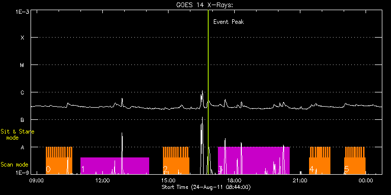 EIS Observation timeline overlay to GOES-Xray curve Code 1" 2" 40" 266" EIS Observations list for this event: STUDY ACRONYM ID DATE OBSERVED DESCRIPTION NOAA# TARGET 0 HH_Flare_180x152f | 23995 | 2011/08/24 09:25:13 | AR 11271 flare obs | 1271 | Flare TIMELINE ID DATE OBSERVED FITS FILE XCEN (+W/-E) YCEN (+N/-S) DUR ----------------------------------------------------------------------------------------------------------------- 23995 | 2011/08/24 09:25:13.000 | eis_l0_20110824_092513.fits.gz | 492.52 | 143.88 | 2m48s 23995 | 2011/08/24 09:28:04.000 | eis_l0_20110824_092804.fits.gz | 492.90 | 143.88 | 2m48s 23995 | 2011/08/24 09:30:55.000 | eis_l0_20110824_093055.fits.gz | 493.21 | 143.95 | 2m49s 23995 | 2011/08/24 09:33:46.000 | eis_l0_20110824_093346.fits.gz | 493.60 | 143.95 | 2m48s 23995 | 2011/08/24 09:36:37.000 | eis_l0_20110824_093637.fits.gz | 493.91 | 144.03 | 2m48s 23995 | 2011/08/24 09:39:28.000 | eis_l0_20110824_093928.fits.gz | 494.37 | 143.95 | 2m48s 23995 | 2011/08/24 09:42:19.000 | eis_l0_20110824_094219.fits.gz | 494.60 | 144.11 | 2m48s 23995 | 2011/08/24 09:45:09.000 | eis_l0_20110824_094509.fits.gz | 495.07 | 143.95 | 2m48s 23995 | 2011/08/24 09:48:00.000 | eis_l0_20110824_094800.fits.gz | 495.38 | 144.03 | 2m48s 23995 | 2011/08/24 09:50:51.000 | eis_l0_20110824_095051.fits.gz | 495.68 | 144.11 | 2m48s 23995 | 2011/08/24 09:53:42.000 | eis_l0_20110824_095342.fits.gz | 495.99 | 144.11 | 2m47s 23995 | 2011/08/24 09:56:32.000 | eis_l0_20110824_095632.fits.gz | 496.46 | 144.11 | 2m48s 23995 | 2011/08/24 09:59:23.000 | eis_l0_20110824_095923.fits.gz | 496.92 | 143.95 | 2m48s 23995 | 2011/08/24 10:02:14.000 | eis_l0_20110824_100214.fits.gz | 497.23 | 144.11 | 2m47s 23995 | 2011/08/24 10:05:04.000 | eis_l0_20110824_100504.fits.gz | 497.46 | 144.11 | 2m48s 23995 | 2011/08/24 10:07:55.000 | eis_l0_20110824_100755.fits.gz | 497.77 | 144.26 | 2m48s 23995 | 2011/08/24 10:10:46.000 | eis_l0_20110824_101046.fits.gz | 498.16 | 144.26 | 2m47s 23995 | 2011/08/24 10:13:36.000 | eis_l0_20110824_101336.fits.gz | 498.47 | 144.34 | 2m48s 23995 | 2011/08/24 10:16:27.000 | eis_l0_20110824_101627.fits.gz | 498.85 | 144.42 | 2m49s 23995 | 2011/08/24 10:19:18.000 | eis_l0_20110824_101918.fits.gz | 499.32 | 144.26 | 2m48s 23995 | 2011/08/24 10:22:09.000 | eis_l0_20110824_102209.fits.gz | 499.62 | 144.26 | 2m48s 23995 | 2011/08/24 10:24:59.000 | eis_l0_20110824_102459.fits.gz | 499.93 | 144.26 | 2m48s 23995 | 2011/08/24 10:27:50.000 | eis_l0_20110824_102750.fits.gz | 500.32 | 144.42 | 2m48s 23995 | 2011/08/24 10:30:40.000 | eis_l0_20110824_103040.fits.gz | 500.63 | 144.42 | 2m48s 23995 | 2011/08/24 10:33:31.000 | eis_l0_20110824_103331.fits.gz | 501.02 | 144.42 | 2m48s 1 HPW021_VEL_360x512v1 | 23996 | 2011/08/24 11:00:27 | Active Region Studies | 1271 | Active Region TIMELINE ID DATE OBSERVED FITS FILE XCEN (+W/-E) YCEN (+N/-S) DUR ----------------------------------------------------------------------------------------------------------------- 23996 | 2011/08/24 11:00:27.000 | eis_l0_20110824_110027.fits.gz | 506.24 | 144.73 | 3h5m42s 2 HH_Flare_180x152f | 23997 | 2011/08/24 14:45:26 | AR 11271 flare obs | 1271 | Flare TIMELINE ID DATE OBSERVED FITS FILE XCEN (+W/-E) YCEN (+N/-S) DUR ----------------------------------------------------------------------------------------------------------------- 23997 | 2011/08/24 14:45:26.000 | eis_l0_20110824_144526.fits.gz | 531.68 | 146.89 | 2m48s 23997 | 2011/08/24 14:48:17.000 | eis_l0_20110824_144817.fits.gz | 531.91 | 147.04 | 2m48s 23997 | 2011/08/24 14:51:08.000 | eis_l0_20110824_145108.fits.gz | 532.38 | 146.89 | 2m48s 23997 | 2011/08/24 14:53:59.000 | eis_l0_20110824_145359.fits.gz | 532.61 | 147.04 | 2m49s 23997 | 2011/08/24 14:56:50.000 | eis_l0_20110824_145650.fits.gz | 533.07 | 147.12 | 2m49s 23997 | 2011/08/24 14:59:41.000 | eis_l0_20110824_145941.fits.gz | 533.38 | 146.81 | 2m49s 23997 | 2011/08/24 15:02:33.000 | eis_l0_20110824_150233.fits.gz | 533.61 | 147.12 | 2m48s 23997 | 2011/08/24 15:05:23.000 | eis_l0_20110824_150523.fits.gz | 534.00 | 147.12 | 2m48s 23997 | 2011/08/24 15:08:14.000 | eis_l0_20110824_150814.fits.gz | 534.31 | 147.20 | 2m48s 23997 | 2011/08/24 15:11:05.000 | eis_l0_20110824_151105.fits.gz | 534.70 | 147.12 | 2m48s 23997 | 2011/08/24 15:13:55.000 | eis_l0_20110824_151355.fits.gz | 535.08 | 147.20 | 2m48s 23997 | 2011/08/24 15:16:46.000 | eis_l0_20110824_151646.fits.gz | 535.39 | 147.12 | 2m48s 23997 | 2011/08/24 15:19:37.000 | eis_l0_20110824_151937.fits.gz | 535.78 | 147.27 | 2m47s 23997 | 2011/08/24 15:22:27.000 | eis_l0_20110824_152227.fits.gz | 536.09 | 147.35 | 2m48s 23997 | 2011/08/24 15:25:18.000 | eis_l0_20110824_152518.fits.gz | 536.47 | 147.35 | 2m48s 23997 | 2011/08/24 15:28:08.000 | eis_l0_20110824_152808.fits.gz | 536.78 | 147.51 | 2m48s 23997 | 2011/08/24 15:30:59.000 | eis_l0_20110824_153059.fits.gz | 537.01 | 147.58 | 2m48s 23997 | 2011/08/24 15:33:50.000 | eis_l0_20110824_153350.fits.gz | 537.48 | 147.35 | 2m48s 23997 | 2011/08/24 15:36:41.000 | eis_l0_20110824_153641.fits.gz | 537.86 | 147.43 | 1m 23997 | 2011/08/24 15:37:49.000 | eis_l0_20110824_153749.fits.gz | 537.94 | 147.51 | 1m40s 23997 | 2011/08/24 15:39:31.000 | eis_l0_20110824_153931.fits.gz | 538.09 | 147.51 | 2m48s 23997 | 2011/08/24 15:42:22.000 | eis_l0_20110824_154222.fits.gz | 538.48 | 147.51 | 2m47s 23997 | 2011/08/24 15:45:12.000 | eis_l0_20110824_154512.fits.gz | 538.87 | 147.51 | 2m48s 23997 | 2011/08/24 15:48:03.000 | eis_l0_20110824_154803.fits.gz | 539.10 | 147.58 | 2m48s 23997 | 2011/08/24 15:50:54.000 | eis_l0_20110824_155054.fits.gz | 539.48 | 147.58 | 2m48s 23997 | 2011/08/24 15:53:44.000 | eis_l0_20110824_155344.fits.gz | 539.79 | 147.58 | 2m48s 3 SYNOP006 | 23981 | 2011/08/24 17:15:26 | Synoptic Observation | | Quiet Sun TIMELINE ID DATE OBSERVED FITS FILE XCEN (+W/-E) YCEN (+N/-S) DUR ----------------------------------------------------------------------------------------------------------------- 23981 | 2011/08/24 17:15:26.000 |