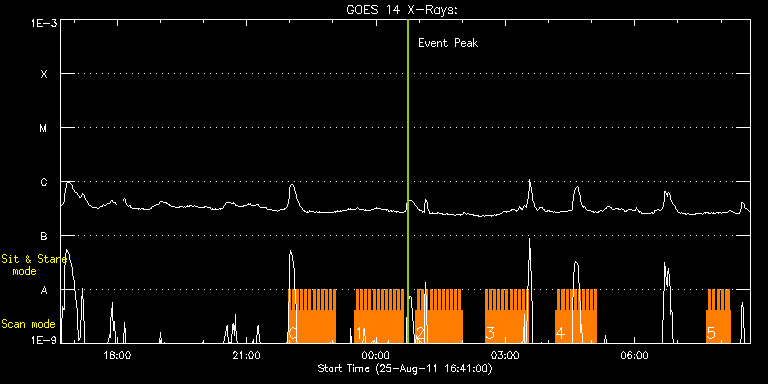 EIS Observation timeline overlay to GOES-Xray curve Code 1" 2" 40" 266" EIS Observations list for this event: STUDY ACRONYM ID DATE OBSERVED DESCRIPTION NOAA# TARGET 0 HH_Flare_180x152f | 24014 | 2011/08/25 21:58:13 | AR 11271 flare obs | 1271 | Flare TIMELINE ID DATE OBSERVED FITS FILE XCEN (+W/-E) YCEN (+N/-S) DUR ----------------------------------------------------------------------------------------------------------------- 24014 | 2011/08/25 21:58:13.000 | eis_l0_20110825_215813.fits.gz | 722.79 | 202.10 | 2m48s 24014 | 2011/08/25 22:01:04.000 | eis_l0_20110825_220104.fits.gz | 722.94 | 202.10 | 2m48s 24014 | 2011/08/25 22:03:54.000 | eis_l0_20110825_220354.fits.gz | 723.17 | 202.17 | 2m49s 24014 | 2011/08/25 22:06:45.000 | eis_l0_20110825_220645.fits.gz | 723.41 | 202.25 | 2m48s 24014 | 2011/08/25 22:09:36.000 | eis_l0_20110825_220936.fits.gz | 723.71 | 202.25 | 2m47s 24014 | 2011/08/25 22:12:26.000 | eis_l0_20110825_221226.fits.gz | 723.87 | 202.40 | 2m49s 24014 | 2011/08/25 22:15:17.000 | eis_l0_20110825_221517.fits.gz | 724.18 | 202.25 | 2m48s 24014 | 2011/08/25 22:18:08.000 | eis_l0_20110825_221808.fits.gz | 724.41 | 202.33 | 2m48s 24014 | 2011/08/25 22:20:59.000 | eis_l0_20110825_222059.fits.gz | 724.72 | 202.40 | 2m48s 24014 | 2011/08/25 22:23:50.000 | eis_l0_20110825_222350.fits.gz | 724.95 | 202.48 | 2m48s 24014 | 2011/08/25 22:26:41.000 | eis_l0_20110825_222641.fits.gz | 725.26 | 202.48 | 2m48s 24014 | 2011/08/25 22:29:31.000 | eis_l0_20110825_222931.fits.gz | 725.41 | 202.56 | 2m48s 24014 | 2011/08/25 22:32:22.000 | eis_l0_20110825_223222.fits.gz | 725.72 | 202.56 | 2m48s 24014 | 2011/08/25 22:35:13.000 | eis_l0_20110825_223513.fits.gz | 725.95 | 202.64 | 2m47s 24014 | 2011/08/25 22:38:03.000 | eis_l0_20110825_223803.fits.gz | 726.26 | 202.64 | 2m48s 24014 | 2011/08/25 22:40:54.000 | eis_l0_20110825_224054.fits.gz | 726.49 | 202.64 | 2m48s 24014 | 2011/08/25 22:43:44.000 | eis_l0_20110825_224344.fits.gz | 726.65 | 202.87 | 2m48s 24014 | 2011/08/25 22:46:35.000 | eis_l0_20110825_224635.fits.gz | 726.88 | 202.87 | 2m48s 24014 | 2011/08/25 22:49:26.000 | eis_l0_20110825_224926.fits.gz | 727.27 | 202.79 | 2m48s 24014 | 2011/08/25 22:52:16.000 | eis_l0_20110825_225216.fits.gz | 727.42 | 202.95 | 2m48s 24014 | 2011/08/25 22:55:07.000 | eis_l0_20110825_225507.fits.gz | 727.73 | 202.87 | 2m48s 24014 | 2011/08/25 22:57:58.000 | eis_l0_20110825_225758.fits.gz | 727.96 | 203.02 | 2m47s 24014 | 2011/08/25 23:00:48.000 | eis_l0_20110825_230048.fits.gz | 728.12 | 203.10 | 2m48s 1 HH_Flare_180x152f | 24015 | 2011/08/25 23:30:13 | AR 11271 flare obs | 1271 | Flare TIMELINE ID DATE OBSERVED FITS FILE XCEN (+W/-E) YCEN (+N/-S) DUR ----------------------------------------------------------------------------------------------------------------- 24015 | 2011/08/25 23:30:13.000 | eis_l0_20110825_233013.fits.gz | 730.74 | 203.41 | 2m48s 24015 | 2011/08/25 23:33:04.000 | eis_l0_20110825_233304.fits.gz | 731.05 | 203.56 | 2m48s 24015 | 2011/08/25 23:35:54.000 | eis_l0_20110825_233554.fits.gz | 731.28 | 203.41 | 2m49s 24015 | 2011/08/25 23:38:46.000 | eis_l0_20110825_233846.fits.gz | 731.52 | 203.64 | 2m47s 24015 | 2011/08/25 23:41:36.000 | eis_l0_20110825_234136.fits.gz | 731.83 | 203.56 | 2m48s 24015 | 2011/08/25 23:44:27.000 | eis_l0_20110825_234427.fits.gz | 732.06 | 203.56 | 2m48s 24015 | 2011/08/25 23:47:17.000 | eis_l0_20110825_234717.fits.gz | 732.29 | 203.56 | 2m48s 24015 | 2011/08/25 23:50:08.000 | eis_l0_20110825_235008.fits.gz | 732.60 | 203.56 | 2m48s 24015 | 2011/08/25 23:52:59.000 | eis_l0_20110825_235259.fits.gz | 732.60 | 203.64 | 2m48s 24015 | 2011/08/25 23:55:50.000 | eis_l0_20110825_235550.fits.gz | 732.91 | 203.87 | 2m48s 24015 | 2011/08/25 23:58:40.000 | eis_l0_20110825_235840.fits.gz | 733.37 | 203.64 | 2m48s 24015 | 2011/08/26 00:01:31.000 | eis_l0_20110826_000131.fits.gz | 733.53 | 203.79 | 2m48s 24015 | 2011/08/26 00:04:22.000 | eis_l0_20110826_000422.fits.gz | 733.76 | 203.79 | 2m47s 24015 | 2011/08/26 00:07:12.000 | eis_l0_20110826_000712.fits.gz | 734.07 | 203.87 | 2m49s 24015 | 2011/08/26 00:10:03.000 | eis_l0_20110826_001003.fits.gz | 734.30 | 203.95 | 2m48s 24015 | 2011/08/26 00:12:54.000 | eis_l0_20110826_001254.fits.gz | 734.53 | 204.10 | 2m47s 24015 | 2011/08/26 00:15:44.000 | eis_l0_20110826_001544.fits.gz | 734.76 | 204.03 | 2m49s 24015 | 2011/08/26 00:18:35.000 | eis_l0_20110826_001835.fits.gz | 734.99 | 204.03 | 2m48s 24015 | 2011/08/26 00:21:26.000 | eis_l0_20110826_002126.fits.gz | 735.30 | 204.10 | 2m48s 24015 | 2011/08/26 00:24:17.000 | eis_l0_20110826_002417.fits.gz | 735.46 | 204.26 | 2m48s 24015 | 2011/08/26 00:27:08.000 | eis_l0_20110826_002708.fits.gz | 735.77 | 204.26 | 2m48s 24015 | 2011/08/26 00:29:59.000 | eis_l0_20110826_002959.fits.gz | 736.00 | 204.18 | 2m48s 24015 | 2011/08/26 00:32:49.000 | eis_l0_20110826_003249.fits.gz | 736.23 | 204.26 | 2m48s 24015 | 2011/08/26 00:35:40.000 | eis_l0_20110826_003540.fits.gz | 736.38 | 204.34 | 2m48s 2 HH_Flare_180x152f | 24016 | 2011/08/26 00:55:13 | AR 11271 flare obs | 1271 | Flare TIMELINE ID DATE OBSERVED FITS FILE XCEN (+W/-E) YCEN (+N/-S) DUR ----------------------------------------------------------------------------------------------------------------- 24016 | 2011/08/26 00:55:13.000 | eis_l0_20110826_005513.fits.gz | 738.16 | 204.57 | 2m49s 24016 | 2011/08/26 00:58:05.000 | eis_l0_20110826_005805.fits.gz | 738.39 | 204.64 | 2m48s 24016 | 2011/08/26 01:00:56.000 | eis_l0_20110826_010056.fits.gz | 738.70 | 204.72 | 2m48s 24016 | 2011/08/26 01:03:47.000 | eis_l0_20110826_010347.fits.gz | 738.93 | 204.72 | 2m48s 24016 | 2011/08/26 01:06:38.000 | eis_l0_20110826_010638.fits.gz | 739.16 | 204.88 | 2m48s 24016 | 2011/08/26 01:09:29.000 | eis_l0_20110826_010929.fits.gz | 739.47 | 204.80 | 2m47s 24016 | 2011/08/26 01:12:19.000 | eis_l0_20110826_011219.fits.gz | 739.70 | 204.88 | 2m48s 24016 | 2011/08/26 01:15:10.000 | eis_l0_20110826_011510.fits.gz | 739.94 | 204.95 | 2m48s 24016 | 2011/08/26 01:18:00.000