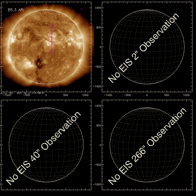 EIS Observation timeline overlay to GOES-Xray curve Code 1" 2" 40" 266" EIS Observations list for this event: STUDY ACRONYM ID DATE OBSERVED DESCRIPTION NOAA# TARGET 0 regcal077 | 24099 | 2011/09/01 03:20:11 | Flatfield, 2 exposures, led 80ms, full | | Engineering TIMELINE ID DATE OBSERVED FITS FILE XCEN (+W/-E) YCEN (+N/-S) DUR ----------------------------------------------------------------------------------------------------------------- 24099 | 2011/09/01 03:20:11.000 | eis_l0_20110901_032011.fits.gz | 145.68 | 68.92 | 4s 1 regcal074 | 24100 | 2011/09/01 03:30:11 | Dark exposures including overscan pixe | | Engineering TIMELINE ID DATE OBSERVED FITS FILE XCEN (+W/-E) YCEN (+N/-S) DUR ----------------------------------------------------------------------------------------------------------------- 24100 | 2011/09/01 03:30:11.000 | eis_l0_20110901_033011.fits.gz | 147.15 | 324.92 | 3m22s : Check study information : Download file : View thumbnails For this event, also check for: