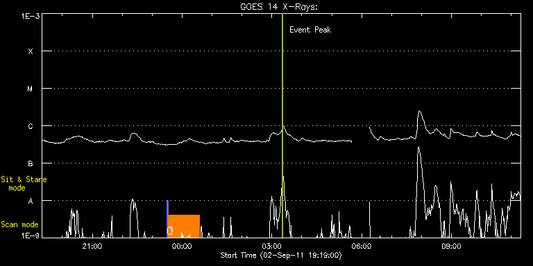 EIS Observation timeline overlay to GOES-Xray curve Code 1" 2" 40" 266" EIS Observations list for this event: STUDY ACRONYM ID DATE OBSERVED DESCRIPTION NOAA# TARGET 0 PRY_slot_context_v3 | 24108 | 2011/09/02 23:29:13 | EIS spectral atlas (active region) | 1281 | Active Region TIMELINE ID DATE OBSERVED FITS FILE XCEN (+W/-E) YCEN (+N/-S) DUR ----------------------------------------------------------------------------------------------------------------- 24108 | 2011/09/02 23:29:13.000 | eis_l0_20110902_232913.fits.gz | -72.56 | -460.74 | 2m56s 1 Atlas_60 | 24109 | 2011/09/02 23:32:34 | EIS spectral atlas (active region) | 1281 | Quiet Sun TIMELINE ID DATE OBSERVED FITS FILE XCEN (+W/-E) YCEN (+N/-S) DUR ----------------------------------------------------------------------------------------------------------------- 24109 | 2011/09/02 23:32:34.000 | eis_l0_20110902_233234.fits.gz | -24.66 | -435.66 | 1h1m39s : Check study information : Download file : View thumbnails For this event, also check for: