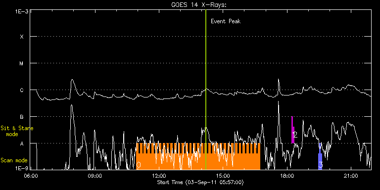EIS Observation timeline overlay to GOES-Xray curve Code 1" 2" 40" 266" EIS Observations list for this event: STUDY ACRONYM ID DATE OBSERVED DESCRIPTION NOAA# TARGET 0 HH_Flare+AR_180x152 | 24168 | 2011/09/03 10:56:15 | Flare observations | 1283 | Flare TIMELINE ID DATE OBSERVED FITS FILE XCEN (+W/-E) YCEN (+N/-S) DUR ----------------------------------------------------------------------------------------------------------------- 24168 | 2011/09/03 10:56:15.000 | eis_l0_20110903_105615.fits.gz | -526.74 | 147.10 | 5m18s 24168 | 2011/09/03 11:01:36.000 | eis_l0_20110903_110136.fits.gz | -525.96 | 147.18 | 5m18s 24168 | 2011/09/03 11:06:57.000 | eis_l0_20110903_110657.fits.gz | -525.27 | 147.10 | 5m18s 24168 | 2011/09/03 11:12:18.000 | eis_l0_20110903_111218.fits.gz | -524.57 | 147.10 | 5m17s 24168 | 2011/09/03 11:17:38.000 | eis_l0_20110903_111738.fits.gz | -523.88 | 147.02 | 5m17s 24168 | 2011/09/03 11:22:58.000 | eis_l0_20110903_112258.fits.gz | -523.26 | 147.02 | 5m18s 24168 | 2011/09/03 11:28:18.000 | eis_l0_20110903_112818.fits.gz | -522.57 | 147.02 | 5m18s 24168 | 2011/09/03 11:33:39.000 | eis_l0_20110903_113339.fits.gz | -521.79 | 146.87 | 5m18s 24168 | 2011/09/03 11:39:00.000 | eis_l0_20110903_113900.fits.gz | -521.10 | 146.79 | 5m18s 24168 | 2011/09/03 11:44:21.000 | eis_l0_20110903_114421.fits.gz | -520.40 | 146.71 | 5m18s 24168 | 2011/09/03 11:49:42.000 | eis_l0_20110903_114942.fits.gz | -519.71 | 146.63 | 5m17s 24168 | 2011/09/03 11:55:02.000 | eis_l0_20110903_115502.fits.gz | -519.01 | 146.79 | 5m18s 24168 | 2011/09/03 12:00:22.000 | eis_l0_20110903_120022.fits.gz | -518.32 | 146.71 | 5m18s 24168 | 2011/09/03 12:05:43.000 | eis_l0_20110903_120543.fits.gz | -517.70 | 146.71 | 5m18s 24168 | 2011/09/03 12:11:03.000 | eis_l0_20110903_121103.fits.gz | -516.93 | 146.63 | 5m18s 24168 | 2011/09/03 12:16:24.000 | eis_l0_20110903_121624.fits.gz | -516.23 | 146.48 | 5m18s 24168 | 2011/09/03 12:21:45.000 | eis_l0_20110903_122145.fits.gz | -515.53 | 146.48 | 5m18s 24168 | 2011/09/03 12:27:05.000 | eis_l0_20110903_122705.fits.gz | -514.76 | 146.48 | 5m19s 24168 | 2011/09/03 12:32:27.000 | eis_l0_20110903_123227.fits.gz | -514.15 | 146.33 | 5m17s 24168 | 2011/09/03 12:37:47.000 | eis_l0_20110903_123747.fits.gz | -513.37 | 146.40 | 5m17s 24168 | 2011/09/03 12:43:07.000 | eis_l0_20110903_124307.fits.gz | -512.60 | 146.17 | 5m19s 24168 | 2011/09/03 12:48:28.000 | eis_l0_20110903_124828.fits.gz | -512.06 | 146.17 | 5m19s 24168 | 2011/09/03 12:53:50.000 | eis_l0_20110903_125350.fits.gz | -511.29 | 146.10 | 5m18s 24168 | 2011/09/03 12:59:11.000 | eis_l0_20110903_125911.fits.gz | -510.59 | 146.10 | 5m17s 24168 | 2011/09/03 13:04:31.000 | eis_l0_20110903_130431.fits.gz | -509.90 | 146.02 | 5m18s 24168 | 2011/09/03 13:09:52.000 | eis_l0_20110903_130952.fits.gz | -509.28 | 146.02 | 5m18s 24168 | 2011/09/03 13:15:13.000 | eis_l0_20110903_131513.fits.gz | -508.43 | 145.86 | 5m18s 24168 | 2011/09/03 13:20:34.000 | eis_l0_20110903_132034.fits.gz | -507.73 | 145.94 | 5m18s 24168 | 2011/09/03 13:25:55.000 | eis_l0_20110903_132555.fits.gz | -506.96 | 145.79 | 5m17s 24168 | 2011/09/03 13:31:15.000 | eis_l0_20110903_133115.fits.gz | -506.34 | 145.79 | 5m18s 24168 | 2011/09/03 13:36:36.000 | eis_l0_20110903_133636.fits.gz | -505.57 | 145.63 | 5m18s 24168 | 2011/09/03 13:41:57.000 | eis_l0_20110903_134157.fits.gz | -504.95 | 145.71 | 5m18s 24168 | 2011/09/03 13:47:18.000 | eis_l0_20110903_134718.fits.gz | -504.26 | 145.71 | 5m18s 24168 | 2011/09/03 13:52:39.000 | eis_l0_20110903_135239.fits.gz | -503.48 | 145.63 | 5m17s 24168 | 2011/09/03 13:57:59.000 | eis_l0_20110903_135759.fits.gz | -502.87 | 145.63 | 5m18s 24168 | 2011/09/03 14:03:19.000 | eis_l0_20110903_140319.fits.gz | -502.17 | 145.55 | 5m18s 24168 | 2011/09/03 14:08:40.000 | eis_l0_20110903_140840.fits.gz | -501.40 | 145.48 | 5m19s 24168 | 2011/09/03 14:14:01.000 | eis_l0_20110903_141401.fits.gz | -500.78 | 145.48 | 5m18s 24168 | 2011/09/03 14:19:22.000 | eis_l0_20110903_141922.fits.gz | -499.93 | 145.40 | 5m18s 24168 | 2011/09/03 14:24:43.000 | eis_l0_20110903_142443.fits.gz | -499.24 | 145.32 | 5m19s 24168 | 2011/09/03 14:30:05.000 | eis_l0_20110903_143005.fits.gz | -498.54 | 145.17 | 5m18s 24168 | 2011/09/03 14:35:26.000 | eis_l0_20110903_143526.fits.gz | -497.92 | 145.24 | 5m18s 24168 | 2011/09/03 14:40:46.000 | eis_l0_20110903_144046.fits.gz | -497.15 | 145.17 | 5m18s 24168 | 2011/09/03 14:46:07.000 | eis_l0_20110903_144607.fits.gz | -496.45 | 144.94 | 5m18s 24168 | 2011/09/03 14:51:27.000 | eis_l0_20110903_145127.fits.gz | -495.76 | 145.17 | 5m18s 24168 | 2011/09/03 14:56:48.000 | eis_l0_20110903_145648.fits.gz | -495.07 | 145.01 | 5m18s 24168 | 2011/09/03 15:02:09.000 | eis_l0_20110903_150209.fits.gz | -494.29 | 144.94 | 5m18s 24168 | 2011/09/03 15:07:30.000 | eis_l0_20110903_150730.fits.gz | -493.67 | 144.94 | 5m17s 24168 | 2011/09/03 15:12:50.000 | eis_l0_20110903_151250.fits.gz | -492.83 | 144.86 | 5m17s 24168 | 2011/09/03 15:18:10.000 | eis_l0_20110903_151810.fits.gz | -492.21 | 144.86 | 5m18s 24168 | 2011/09/03 15:23:31.000 | eis_l0_20110903_152331.fits.gz | -491.51 | 144.70 | 5m18s 24168 | 2011/09/03 15:28:52.000 | eis_l0_20110903_152852.fits.gz | -490.74 | 144.78 | 5m18s 24168 | 2011/09/03 15:34:13.000 | eis_l0_20110903_153413.fits.gz | -490.12 | 144.70 | 5m18s 24168 | 2011/09/03 15:39:34.000 | eis_l0_20110903_153934.fits.gz | -489.35 | 144.78 | 5m18s 24168 | 2011/09/03 15:44:55.000 | eis_l0_20110903_154455.fits.gz | -488.58 | 144.63 | 4m46s 24168 | 2011/09/03 15:51:09.000 | eis_l0_20110903_155109.fits.gz | -487.80 | 144.55 | 4m24s 24168 | 2011/09/03 15:55:36.000 | eis_l0_20110903_155536.fits.gz | -487.19 | 144.55 | 5m18s 24168 | 2011/09/03 16:00:57.000 | eis_l0_20110903_160057.fits.gz | -486.41 | 144.47 | 5m19s 24168 | 2011/09/03 16:06:19.000 | eis_l0_20110903_160619.fits.gz | -485.80 | 144.47 | 5m18s 24168 | 2011/09/03 16:11:40.000 | eis_l0_20110903_161140.fits.gz | -485.02 | 144.24 | 5m17s 24168 | 2011/09/03 16:17:00.000 | eis_l0_20110