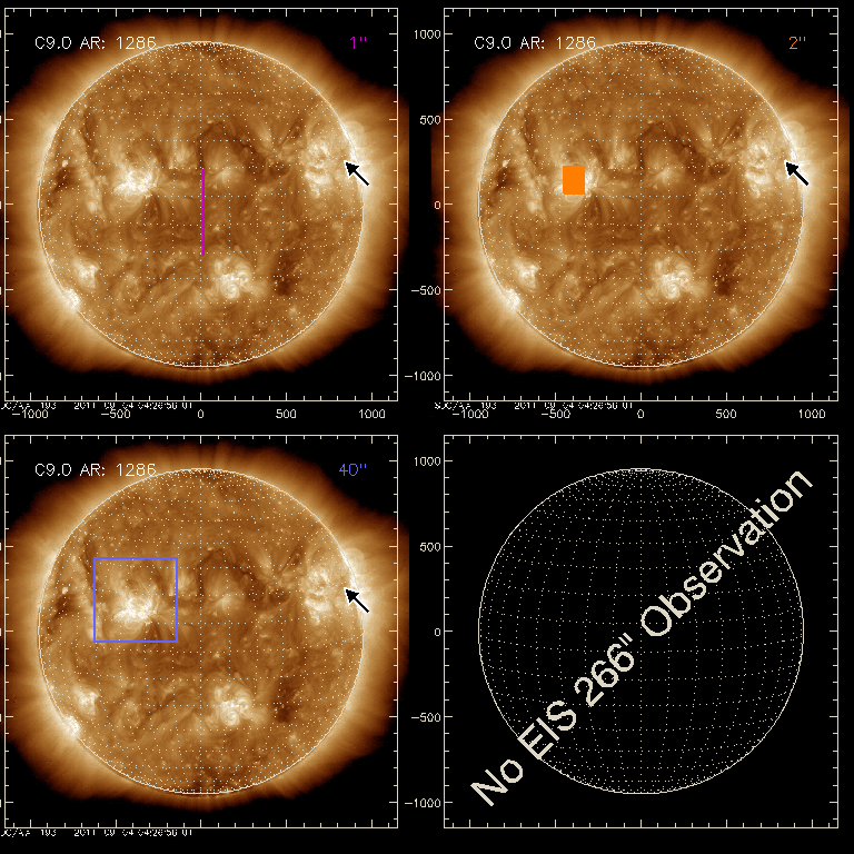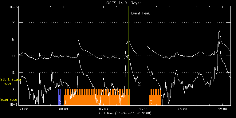 EIS Observation timeline overlay to GOES-Xray curve Code 1" 2" 40" 266" EIS Observations list for this event: STUDY ACRONYM ID DATE OBSERVED DESCRIPTION NOAA# TARGET 0 PRY_slot_context_v3 | 24121 | 2011/09/03 23:36:27 | High cadence observations of AR transi | 1283 | Active Region TIMELINE ID DATE OBSERVED FITS FILE XCEN (+W/-E) YCEN (+N/-S) DUR ----------------------------------------------------------------------------------------------------------------- 24121 | 2011/09/03 23:36:27.000 | eis_l0_20110903_233627.fits.gz | -379.70 | 180.84 | 2m57s 24121 | 2011/09/03 23:39:28.000 | eis_l0_20110903_233928.fits.gz | -379.24 | 180.84 | 2m56s 24121 | 2011/09/03 23:42:28.000 | eis_l0_20110903_234228.fits.gz | -378.77 | 180.84 | 2m57s 1 HH_Flare+AR_180x152 | 24174 | 2011/09/04 00:01:27 | Flare observations | 1283 | Flare TIMELINE ID DATE OBSERVED FITS FILE XCEN (+W/-E) YCEN (+N/-S) DUR ----------------------------------------------------------------------------------------------------------------- 24174 | 2011/09/04 00:01:27.000 | eis_l0_20110904_000127.fits.gz | -421.06 | 140.69 | 5m18s 24174 | 2011/09/04 00:06:48.000 | eis_l0_20110904_000648.fits.gz | -420.37 | 140.53 | 5m18s 24174 | 2011/09/04 00:12:09.000 | eis_l0_20110904_001209.fits.gz | -419.59 | 140.53 | 5m17s 24174 | 2011/09/04 00:17:29.000 | eis_l0_20110904_001729.fits.gz | -418.90 | 140.46 | 5m18s 24174 | 2011/09/04 00:22:50.000 | eis_l0_20110904_002250.fits.gz | -418.05 | 140.38 | 5m18s 24174 | 2011/09/04 00:28:10.000 | eis_l0_20110904_002810.fits.gz | -417.35 | 140.38 | 5m19s 24174 | 2011/09/04 00:33:32.000 | eis_l0_20110904_003332.fits.gz | -416.66 | 140.38 | 5m18s 24174 | 2011/09/04 00:38:53.000 | eis_l0_20110904_003853.fits.gz | -415.81 | 140.15 | 5m17s 24174 | 2011/09/04 00:44:13.000 | eis_l0_20110904_004413.fits.gz | -415.11 | 140.30 | 5m18s 24174 | 2011/09/04 00:49:33.000 | eis_l0_20110904_004933.fits.gz | -414.42 | 140.30 | 5m18s 24174 | 2011/09/04 00:54:54.000 | eis_l0_20110904_005454.fits.gz | -413.49 | 140.07 | 5m18s 24174 | 2011/09/04 01:00:14.000 | eis_l0_20110904_010014.fits.gz | -412.87 | 140.15 | 5m19s 24174 | 2011/09/04 01:05:36.000 | eis_l0_20110904_010536.fits.gz | -412.10 | 139.91 | 5m18s 24174 | 2011/09/04 01:10:57.000 | eis_l0_20110904_011057.fits.gz | -411.48 | 140.22 | 5m17s 24174 | 2011/09/04 01:16:17.000 | eis_l0_20110904_011617.fits.gz | -410.63 | 140.15 | 5m18s 24174 | 2011/09/04 01:21:38.000 | eis_l0_20110904_012138.fits.gz | -409.94 | 140.15 | 5m18s 24174 | 2011/09/04 01:26:59.000 | eis_l0_20110904_012659.fits.gz | -409.17 | 139.99 | 5m18s 24174 | 2011/09/04 01:32:20.000 | eis_l0_20110904_013220.fits.gz | -408.39 | 139.99 | 5m18s 24174 | 2011/09/04 01:37:40.000 | eis_l0_20110904_013740.fits.gz | -407.70 | 139.91 | 5m18s 24174 | 2011/09/04 01:43:01.000 | eis_l0_20110904_014301.fits.gz | -406.92 | 139.91 | 5m18s 24174 | 2011/09/04 01:48:22.000 | eis_l0_20110904_014822.fits.gz | -406.15 | 139.84 | 5m17s 24174 | 2011/09/04 01:53:42.000 | eis_l0_20110904_015342.fits.gz | -405.46 | 139.68 | 5m18s 24174 | 2011/09/04 01:59:03.000 | eis_l0_20110904_015903.fits.gz | -404.68 | 139.76 | 5m18s 24174 | 2011/09/04 02:04:24.000 | eis_l0_20110904_020424.fits.gz | -403.99 | 139.61 | 5m18s 24174 | 2011/09/04 02:09:45.000 | eis_l0_20110904_020945.fits.gz | -403.22 | 139.53 | 5m17s 24174 | 2011/09/04 02:15:05.000 | eis_l0_20110904_021505.fits.gz | -402.37 | 139.61 | 5m18s 24174 | 2011/09/04 02:20:25.000 | eis_l0_20110904_022025.fits.gz | -401.75 | 139.61 | 5m19s 24174 | 2011/09/04 02:25:47.000 | eis_l0_20110904_022547.fits.gz | -400.98 | 139.53 | 5m18s 24174 | 2011/09/04 02:31:08.000 | eis_l0_20110904_023108.fits.gz | -400.28 | 139.45 | 5m17s 24174 | 2011/09/04 02:36:28.000 | eis_l0_20110904_023628.fits.gz | -399.51 | 139.45 | 5m18s 24174 | 2011/09/04 02:41:49.000 | eis_l0_20110904_024149.fits.gz | -398.66 | 139.37 | 5m17s 24174 | 2011/09/04 02:47:09.000 | eis_l0_20110904_024709.fits.gz | -397.89 | 139.30 | 5m18s 24174 | 2011/09/04 02:52:30.000 | eis_l0_20110904_025230.fits.gz | -397.11 | 139.37 | 5m19s 24174 | 2011/09/04 02:57:51.000 | eis_l0_20110904_025751.fits.gz | -396.57 | 139.37 | 5m18s 24174 | 2011/09/04 03:03:12.000 | eis_l0_20110904_030312.fits.gz | -395.72 | 139.37 | 5m18s 24174 | 2011/09/04 03:08:33.000 | eis_l0_20110904_030833.fits.gz | -394.95 | 139.22 | 5m17s 24174 | 2011/09/04 03:13:53.000 | eis_l0_20110904_031353.fits.gz | -394.18 | 139.30 | 5m18s 24174 | 2011/09/04 03:19:13.000 | eis_l0_20110904_031913.fits.gz | -393.48 | 139.37 | 5m19s 24174 | 2011/09/04 03:24:35.000 | eis_l0_20110904_032435.fits.gz | -392.71 | 139.30 | 5m18s 24174 | 2011/09/04 03:29:56.000 | eis_l0_20110904_032956.fits.gz | -391.94 | 139.14 | 5m17s 24174 | 2011/09/04 03:35:16.000 | eis_l0_20110904_033516.fits.gz | -391.24 | 139.07 | 5m17s 24174 | 2011/09/04 03:40:36.000 | eis_l0_20110904_034036.fits.gz | -390.47 | 138.99 | 5m18s 24174 | 2011/09/04 03:45:56.000 | eis_l0_20110904_034556.fits.gz | -389.70 | 138.91 | 5m18s 24174 | 2011/09/04 03:51:16.000 | eis_l0_20110904_035116.fits.gz | -389.00 | 138.99 | 5m18s 24174 | 2011/09/04 03:56:37.000 | eis_l0_20110904_035637.fits.gz | -388.23 | 138.83 | 5m18s 24174 | 2011/09/04 04:01:58.000 | eis_l0_20110904_040158.fits.gz | -387.46 | 138.76 | 5m18s 24174 | 2011/09/04 04:07:19.000 | eis_l0_20110904_040719.fits.gz | -386.69 | 138.91 | 5m18s 24174 | 2011/09/04 04:12:40.000 | eis_l0_20110904_041240.fits.gz | -385.91 | 138.76 | 5m17s 24174 | 2011/09/04 04:18:00.000 | eis_l0_20110904_041800.fits.gz | -385.22 | 138.76 | 5m18s 24174 | 2011/09/04 04:23:21.000 | eis_l0_20110904_042321.fits.gz | -384.45 | 138.76 | 5m18s 24174 | 2011/09/04 04:28:42.000 | eis_l0_20110904_042842.fits.gz | -383.75 | 138.76 | 5m18s 24174 | 2011/09/04 04:34:03.000 | eis_l0_20110904_043403.fits.gz | -382.98 | 138.76 | 5m18s 24174 | 2011/09/04 04:39:23.000 | eis_l0_20110904_043923.fits.gz | -382.21 | 138.76 | 5m18s 24174 | 2011/09/04 04:44:44.000 | eis_l0_20110904_044444.fits.gz | -381.59 | 138.68 | 5m18s 24174 | 2011/09/04 04:50:0
