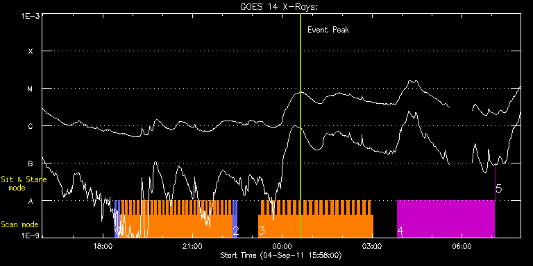 EIS Observation timeline overlay to GOES-Xray curve Code 1" 2" 40" 266" EIS Observations list for this event: STUDY ACRONYM ID DATE OBSERVED DESCRIPTION NOAA# TARGET 0 PRY_slot_context_v3 | 24115 | 2011/09/04 18:24:20 | High cadence observations of AR transi | 1283 | Active Region TIMELINE ID DATE OBSERVED FITS FILE XCEN (+W/-E) YCEN (+N/-S) DUR ----------------------------------------------------------------------------------------------------------------- 24115 | 2011/09/04 18:24:20.000 | eis_l0_20110904_182420.fits.gz | -218.41 | 174.12 | 2m56s 24115 | 2011/09/04 18:27:20.000 | eis_l0_20110904_182720.fits.gz | -217.94 | 174.04 | 2m57s 24115 | 2011/09/04 18:30:21.000 | eis_l0_20110904_183021.fits.gz | -217.48 | 174.12 | 2m56s 1 cam_artb_lite_v2 | 24116 | 2011/09/04 18:33:42 | High cadence observations of AR bright | | Active Region TIMELINE ID DATE OBSERVED FITS FILE XCEN (+W/-E) YCEN (+N/-S) DUR ----------------------------------------------------------------------------------------------------------------- 24116 | 2011/09/04 18:33:42.000 | eis_l0_20110904_183342.fits.gz | -236.22 | 104.20 | 3m52s 24116 | 2011/09/04 18:37:37.000 | eis_l0_20110904_183737.fits.gz | -235.60 | 104.04 | 3m52s 24116 | 2011/09/04 18:41:32.000 | eis_l0_20110904_184132.fits.gz | -235.06 | 103.97 | 3m51s 24116 | 2011/09/04 18:45:26.000 | eis_l0_20110904_184526.fits.gz | -234.45 | 103.97 | 3m52s 24116 | 2011/09/04 18:49:21.000 | eis_l0_20110904_184921.fits.gz | -233.90 | 104.04 | 3m51s 24116 | 2011/09/04 18:53:15.000 | eis_l0_20110904_185315.fits.gz | -233.29 | 104.04 | 3m52s 24116 | 2011/09/04 18:57:10.000 | eis_l0_20110904_185710.fits.gz | -232.67 | 103.97 | 3m51s 24116 | 2011/09/04 19:01:04.000 | eis_l0_20110904_190104.fits.gz | -232.21 | 104.04 | 3m52s 24116 | 2011/09/04 19:04:59.000 | eis_l0_20110904_190459.fits.gz | -231.66 | 103.97 | 3m52s 24116 | 2011/09/04 19:08:53.000 | eis_l0_20110904_190853.fits.gz | -230.97 | 103.97 | 3m52s 24116 | 2011/09/04 19:12:48.000 | eis_l0_20110904_191248.fits.gz | -230.35 | 103.89 | 3m51s 24116 | 2011/09/04 19:16:42.000 | eis_l0_20110904_191642.fits.gz | -229.97 | 103.97 | 3m52s 24116 | 2011/09/04 19:20:37.000 | eis_l0_20110904_192037.fits.gz | -229.27 | 103.89 | 3m52s 24116 | 2011/09/04 19:24:31.000 | eis_l0_20110904_192431.fits.gz | -228.81 | 104.12 | 57s 24116 | 2011/09/04 19:25:41.000 | eis_l0_20110904_192541.fits.gz | -228.57 | 103.97 | 2m42s 24116 | 2011/09/04 19:28:26.000 | eis_l0_20110904_192826.fits.gz | -228.19 | 104.04 | 3m52s 24116 | 2011/09/04 19:32:20.000 | eis_l0_20110904_193220.fits.gz | -227.57 | 104.04 | 3m52s 24116 | 2011/09/04 19:36:15.000 | eis_l0_20110904_193615.fits.gz | -227.03 | 103.97 | 3m51s 24116 | 2011/09/04 19:40:09.000 | eis_l0_20110904_194009.fits.gz | -226.49 | 103.89 | 3m52s 24116 | 2011/09/04 19:44:03.000 | eis_l0_20110904_194403.fits.gz | -225.87 | 103.81 | 3m52s 24116 | 2011/09/04 19:47:57.000 | eis_l0_20110904_194757.fits.gz | -225.25 | 103.81 | 3m52s 24116 | 2011/09/04 19:51:52.000 | eis_l0_20110904_195152.fits.gz | -224.64 | 103.89 | 3m52s 24116 | 2011/09/04 19:55:46.000 | eis_l0_20110904_195546.fits.gz | -224.17 | 103.81 | 3m52s 24116 | 2011/09/04 19:59:41.000 | eis_l0_20110904_195941.fits.gz | -223.63 | 103.81 | 3m52s 24116 | 2011/09/04 20:03:36.000 | eis_l0_20110904_200336.fits.gz | -222.86 | 103.74 | 3m51s 24116 | 2011/09/04 20:07:30.000 | eis_l0_20110904_200730.fits.gz | -222.47 | 103.74 | 3m52s 24116 | 2011/09/04 20:11:24.000 | eis_l0_20110904_201124.fits.gz | -221.78 | 103.58 | 3m52s 24116 | 2011/09/04 20:15:19.000 | eis_l0_20110904_201519.fits.gz | -221.24 | 103.58 | 3m52s 24116 | 2011/09/04 20:19:13.000 | eis_l0_20110904_201913.fits.gz | -220.70 | 103.66 | 3m52s 24116 | 2011/09/04 20:23:08.000 | eis_l0_20110904_202308.fits.gz | -220.15 | 103.66 | 3m52s 24116 | 2011/09/04 20:27:03.000 | eis_l0_20110904_202703.fits.gz | -219.54 | 103.74 | 3m51s 24116 | 2011/09/04 20:30:57.000 | eis_l0_20110904_203057.fits.gz | -219.00 | 103.58 | 3m52s 24116 | 2011/09/04 20:34:52.000 | eis_l0_20110904_203452.fits.gz | -218.30 | 103.58 | 3m51s 24116 | 2011/09/04 20:38:46.000 | eis_l0_20110904_203846.fits.gz | -217.76 | 103.50 | 3m52s 24116 | 2011/09/04 20:42:41.000 | eis_l0_20110904_204241.fits.gz | -217.14 | 103.58 | 3m51s 24116 | 2011/09/04 20:46:35.000 | eis_l0_20110904_204635.fits.gz | -216.68 | 103.58 | 3m52s 24116 | 2011/09/04 20:50:30.000 | eis_l0_20110904_205030.fits.gz | -215.98 | 103.50 | 3m51s 24116 | 2011/09/04 20:54:24.000 | eis_l0_20110904_205424.fits.gz | -215.44 | 103.50 | 3m52s 24116 | 2011/09/04 20:58:19.000 | eis_l0_20110904_205819.fits.gz | -214.98 | 103.66 | 3m52s 24116 | 2011/09/04 21:02:13.000 | eis_l0_20110904_210213.fits.gz | -214.36 | 103.66 | 3m52s 24116 | 2011/09/04 21:06:08.000 | eis_l0_20110904_210608.fits.gz | -213.82 | 103.74 | 3m52s 24116 | 2011/09/04 21:10:02.000 | eis_l0_20110904_211002.fits.gz | -213.20 | 103.58 | 3m52s 24116 | 2011/09/04 21:13:57.000 | eis_l0_20110904_211357.fits.gz | -212.59 | 103.66 | 3m52s 24116 | 2011/09/04 21:17:51.000 | eis_l0_20110904_211751.fits.gz | -212.04 | 103.66 | 3m52s 24116 | 2011/09/04 21:21:46.000 | eis_l0_20110904_212146.fits.gz | -211.43 | 103.35 | 3m52s 24116 | 2011/09/04 21:25:40.000 | eis_l0_20110904_212540.fits.gz | -210.88 | 103.43 | 3m52s 24116 | 2011/09/04 21:29:35.000 | eis_l0_20110904_212935.fits.gz | -210.35 | 103.43 | 3m52s 24116 | 2011/09/04 21:33:29.000 | eis_l0_20110904_213329.fits.gz | -209.73 | 103.43 | 3m52s 24116 | 2011/09/04 21:37:24.000 | eis_l0_20110904_213724.fits.gz | -209.03 | 103.43 | 3m51s 24116 | 2011/09/04 21:41:18.000 | eis_l0_20110904_214118.fits.gz | -208.57 | 103.50 | 3m52s 24116 | 2011/09/04 21:45:13.000 | eis_l0_20110904_214513.fits.gz | -208.03 | 103.27 | 3m52s 24116 | 2011/09/04 21:49:07.000 | eis_l0_20110904_214907.fits.gz | -207.41 | 103.27 | 3m52s 24116 | 2011/09/04 21:53:02.000 | eis_l0_20110904_215302.fits.gz | -206.95 | 103.35 | 3m52s 24116 | 2011/09/04 21:56:57.000 | eis_l0_20110904_215657.fits.gz | -206.25 | 103.43 | 3m51s 24116 | 
