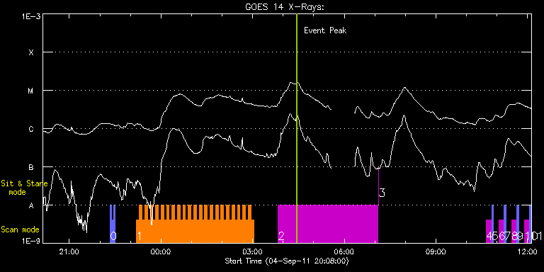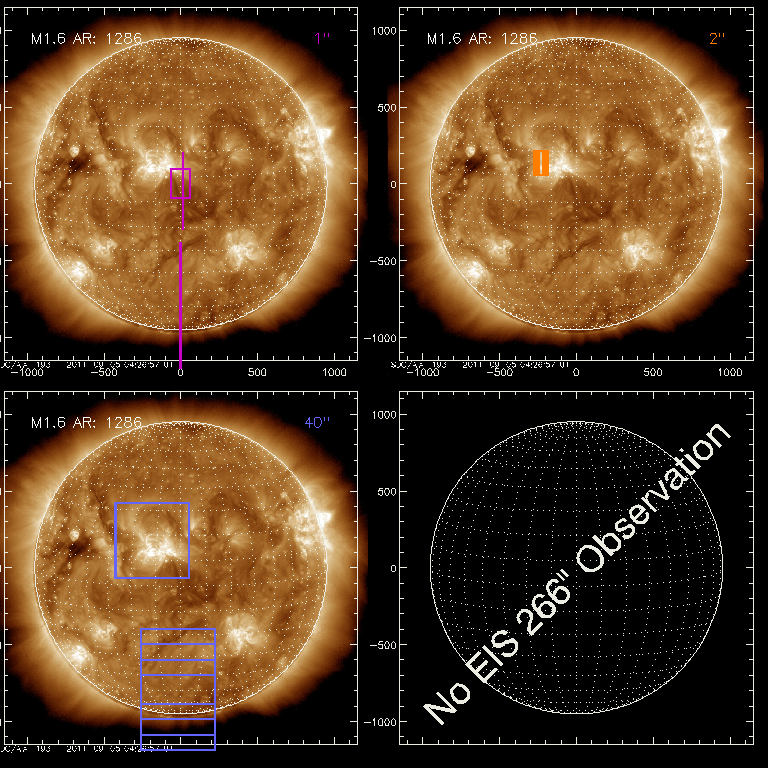 EIS Observation timeline overlay to GOES-Xray curve Code 1" 2" 40" 266" EIS Observations list for this event: STUDY ACRONYM ID DATE OBSERVED DESCRIPTION NOAA# TARGET 0 PRY_slot_context_v3 | 24122 | 2011/09/04 22:20:32 | High cadence observations of AR transi | 1283 | Active Region TIMELINE ID DATE OBSERVED FITS FILE XCEN (+W/-E) YCEN (+N/-S) DUR ----------------------------------------------------------------------------------------------------------------- 24122 | 2011/09/04 22:20:32.000 | eis_l0_20110904_222032.fits.gz | -183.49 | 173.19 | 2m56s 24122 | 2011/09/04 22:23:33.000 | eis_l0_20110904_222333.fits.gz | -183.10 | 173.27 | 2m56s 24122 | 2011/09/04 22:26:33.000 | eis_l0_20110904_222633.fits.gz | -182.72 | 173.19 | 2m56s 1 HH_Flare+AR_180x152 | 24171 | 2011/09/04 23:12:10 | Flare observations | 1283 | Flare TIMELINE ID DATE OBSERVED FITS FILE XCEN (+W/-E) YCEN (+N/-S) DUR ----------------------------------------------------------------------------------------------------------------- 24171 | 2011/09/04 23:12:10.000 | eis_l0_20110904_231210.fits.gz | -245.72 | 133.04 | 5m19s 24171 | 2011/09/04 23:17:32.000 | eis_l0_20110904_231732.fits.gz | -245.02 | 133.12 | 5m18s 24171 | 2011/09/04 23:22:52.000 | eis_l0_20110904_232252.fits.gz | -244.25 | 133.04 | 5m18s 24171 | 2011/09/04 23:28:13.000 | eis_l0_20110904_232813.fits.gz | -243.48 | 133.04 | 5m18s 24171 | 2011/09/04 23:33:34.000 | eis_l0_20110904_233334.fits.gz | -242.63 | 132.96 | 5m18s 24171 | 2011/09/04 23:38:55.000 | eis_l0_20110904_233855.fits.gz | -241.78 | 132.96 | 5m18s 24171 | 2011/09/04 23:44:16.000 | eis_l0_20110904_234416.fits.gz | -241.08 | 132.88 | 5m17s 24171 | 2011/09/04 23:49:36.000 | eis_l0_20110904_234936.fits.gz | -240.31 | 133.04 | 5m18s 24171 | 2011/09/04 23:54:57.000 | eis_l0_20110904_235457.fits.gz | -239.46 | 132.96 | 5m18s 24171 | 2011/09/05 00:00:18.000 | eis_l0_20110905_000018.fits.gz | -238.69 | 132.88 | 5m18s 24171 | 2011/09/05 00:05:39.000 | eis_l0_20110905_000539.fits.gz | -237.84 | 132.88 | 5m18s 24171 | 2011/09/05 00:11:00.000 | eis_l0_20110905_001100.fits.gz | -237.07 | 132.96 | 5m17s 24171 | 2011/09/05 00:16:20.000 | eis_l0_20110905_001620.fits.gz | -236.37 | 132.96 | 5m17s 24171 | 2011/09/05 00:21:40.000 | eis_l0_20110905_002140.fits.gz | -235.52 | 132.96 | 5m17s 24171 | 2011/09/05 00:27:00.000 | eis_l0_20110905_002700.fits.gz | -234.67 | 132.96 | 5m18s 24171 | 2011/09/05 00:32:20.000 | eis_l0_20110905_003220.fits.gz | -233.82 | 132.96 | 5m18s 24171 | 2011/09/05 00:37:40.000 | eis_l0_20110905_003740.fits.gz | -233.13 | 132.88 | 5m18s 24171 | 2011/09/05 00:43:01.000 | eis_l0_20110905_004301.fits.gz | -232.28 | 132.81 | 5m19s 24171 | 2011/09/05 00:48:22.000 | eis_l0_20110905_004822.fits.gz | -231.43 | 132.73 | 5m19s 24171 | 2011/09/05 00:53:43.000 | eis_l0_20110905_005343.fits.gz | -230.73 | 132.73 | 5m18s 24171 | 2011/09/05 00:59:04.000 | eis_l0_20110905_005904.fits.gz | -229.88 | 132.58 | 5m19s 24171 | 2011/09/05 01:04:25.000 | eis_l0_20110905_010425.fits.gz | -229.11 | 132.65 | 5m19s 24171 | 2011/09/05 01:09:47.000 | eis_l0_20110905_010947.fits.gz | -228.34 | 132.65 | 5m18s 24171 | 2011/09/05 01:15:08.000 | eis_l0_20110905_011508.fits.gz | -227.57 | 132.65 | 5m17s 24171 | 2011/09/05 01:20:28.000 | eis_l0_20110905_012028.fits.gz | -226.79 | 132.65 | 5m18s 24171 | 2011/09/05 01:25:49.000 | eis_l0_20110905_012549.fits.gz | -225.87 | 132.65 | 5m18s 24171 | 2011/09/05 01:31:10.000 | eis_l0_20110905_013110.fits.gz | -225.17 | 132.65 | 5m18s 24171 | 2011/09/05 01:36:31.000 | eis_l0_20110905_013631.fits.gz | -224.40 | 132.65 | 5m17s 24171 | 2011/09/05 01:41:51.000 | eis_l0_20110905_014151.fits.gz | -223.63 | 132.58 | 5m17s 24171 | 2011/09/05 01:47:11.000 | eis_l0_20110905_014711.fits.gz | -222.78 | 132.65 | 5m18s 24171 | 2011/09/05 01:52:32.000 | eis_l0_20110905_015232.fits.gz | -222.00 | 132.65 | 5m18s 24171 | 2011/09/05 01:57:53.000 | eis_l0_20110905_015753.fits.gz | -221.23 | 132.65 | 5m18s 24171 | 2011/09/05 02:03:14.000 | eis_l0_20110905_020314.fits.gz | -220.30 | 132.50 | 5m18s 24171 | 2011/09/05 02:08:35.000 | eis_l0_20110905_020835.fits.gz | -219.53 | 132.42 | 5m18s 24171 | 2011/09/05 02:13:56.000 | eis_l0_20110905_021356.fits.gz | -218.76 | 132.58 | 5m18s 24171 | 2011/09/05 02:19:16.000 | eis_l0_20110905_021916.fits.gz | -217.99 | 132.50 | 5m18s 24171 | 2011/09/05 02:24:37.000 | eis_l0_20110905_022437.fits.gz | -217.21 | 132.58 | 5m18s 24171 | 2011/09/05 02:29:58.000 | eis_l0_20110905_022958.fits.gz | -216.36 | 132.42 | 5m18s 24171 | 2011/09/05 02:35:19.000 | eis_l0_20110905_023519.fits.gz | -215.67 | 132.50 | 5m17s 24171 | 2011/09/05 02:40:39.000 | eis_l0_20110905_024039.fits.gz | -214.74 | 132.50 | 5m18s 24171 | 2011/09/05 02:45:59.000 | eis_l0_20110905_024559.fits.gz | -214.05 | 132.42 | 5m19s 24171 | 2011/09/05 02:51:21.000 | eis_l0_20110905_025121.fits.gz | -213.27 | 132.42 | 5m18s 24171 | 2011/09/05 02:56:42.000 | eis_l0_20110905_025642.fits.gz | -212.43 | 132.27 | 5m17s 2 SYNOP006 | 24179 | 2011/09/05 03:49:56 | Intensity measurements - Sun Centre | | Quiet Sun TIMELINE ID DATE OBSERVED FITS FILE XCEN (+W/-E) YCEN (+N/-S) DUR ----------------------------------------------------------------------------------------------------------------- 24179 | 2011/09/05 03:49:56.000 | eis_l0_20110905_034956.fits.gz | -0.10 | -0.42 | 3h15m35s 3 regcal076 | 24181 | 2011/09/05 07:07:47 | Flatfield, 1 exposure, led 100ms, ccd | | Engineering TIMELINE ID DATE OBSERVED FITS FILE XCEN (+W/-E) YCEN (+N/-S) DUR ----------------------------------------------------------------------------------------------------------------- 24181 | 2011/09/05 07:07:47.000 | eis_l0_20110905_070747.fits.gz | 14.43 | -50.35 | 1s 4 SK_DEEP_5x512_SLIT1 | 24125 | 2011/09/05 10:39:10 | Synoptic SOT Irradiance Scans - Berger | | Quiet Sun TIMELINE ID DATE OBSERVED FITS FILE XCEN (+W/-E) YCEN (+N/-S) DUR ----------------------------------------------------------------------------------------------------------------- 24125 | 2011/09/05 10