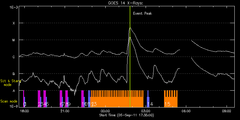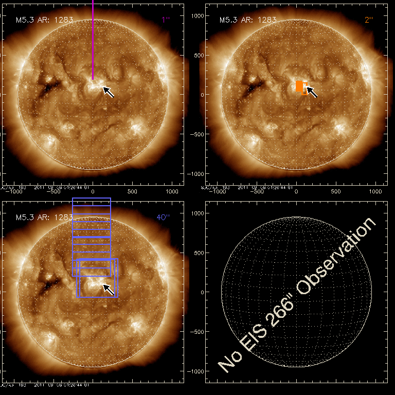 EIS Observation timeline overlay to GOES-Xray curve Code 1" 2" 40" 266" EIS Observations list for this event: STUDY ACRONYM ID DATE OBSERVED DESCRIPTION NOAA# TARGET 0 SK_DEEP_5x512_SLIT1 | 24153 | 2011/09/05 17:53:55 | Synoptic SOT Irradiance Scans - Berger | | Quiet Sun TIMELINE ID DATE OBSERVED FITS FILE XCEN (+W/-E) YCEN (+N/-S) DUR ----------------------------------------------------------------------------------------------------------------- 24153 | 2011/09/05 17:53:55.000 | eis_l0_20110905_175355.fits.gz | -0.10 | 444.52 | 4m2s 1 PRY_slot_contextLITE | 24154 | 2011/09/05 17:58:23 | Synoptic SOT Irradiance Scans - Berger | | Active Region TIMELINE ID DATE OBSERVED FITS FILE XCEN (+W/-E) YCEN (+N/-S) DUR ----------------------------------------------------------------------------------------------------------------- 24154 | 2011/09/05 17:58:23.000 | eis_l0_20110905_175823.fits.gz | -15.25 | 444.52 | 2m56s 2 SK_DEEP_5x512_SLIT1 | 24155 | 2011/09/05 18:59:49 | Synoptic SOT Irradiance Scans - Berger | | Quiet Sun TIMELINE ID DATE OBSERVED FITS FILE XCEN (+W/-E) YCEN (+N/-S) DUR ----------------------------------------------------------------------------------------------------------------- 24155 | 2011/09/05 18:59:49.000 | eis_l0_20110905_185949.fits.gz | -0.02 | 544.64 | 10m8s 3 PRY_slot_contextLITE | 24156 | 2011/09/05 19:10:23 | Synoptic SOT Irradiance Scans - Berger | | Active Region TIMELINE ID DATE OBSERVED FITS FILE XCEN (+W/-E) YCEN (+N/-S) DUR ----------------------------------------------------------------------------------------------------------------- 24156 | 2011/09/05 19:10:23.000 | eis_l0_20110905_191023.fits.gz | -15.25 | 544.48 | 2m56s 4 SK_DEEP_5x512_SLIT1 | 24157 | 2011/09/05 19:24:49 | Synoptic SOT Irradiance Scans - Berger | | Quiet Sun TIMELINE ID DATE OBSERVED FITS FILE XCEN (+W/-E) YCEN (+N/-S) DUR ----------------------------------------------------------------------------------------------------------------- 24157 | 2011/09/05 19:24:49.000 | eis_l0_20110905_192449.fits.gz | -0.10 | 644.67 | 10m8s 5 PRY_slot_contextLITE | 24158 | 2011/09/05 19:35:23 | Synoptic SOT Irradiance Scans - Berger | | Active Region TIMELINE ID DATE OBSERVED FITS FILE XCEN (+W/-E) YCEN (+N/-S) DUR ----------------------------------------------------------------------------------------------------------------- 24158 | 2011/09/05 19:35:23.000 | eis_l0_20110905_193523.fits.gz | -15.25 | 644.59 | 2m56s 6 SK_DEEP_5x512_SLIT1 | 24159 | 2011/09/05 20:36:49 | Synoptic SOT Irradiance Scans - Berger | | Quiet Sun TIMELINE ID DATE OBSERVED FITS FILE XCEN (+W/-E) YCEN (+N/-S) DUR ----------------------------------------------------------------------------------------------------------------- 24159 | 2011/09/05 20:36:49.000 | eis_l0_20110905_203649.fits.gz | -0.02 | 744.40 | 10m8s 7 PRY_slot_contextLITE | 24160 | 2011/09/05 20:47:23 | Synoptic SOT Irradiance Scans - Berger | | Active Region TIMELINE ID DATE OBSERVED FITS FILE XCEN (+W/-E) YCEN (+N/-S) DUR ----------------------------------------------------------------------------------------------------------------- 24160 | 2011/09/05 20:47:23.000 | eis_l0_20110905_204723.fits.gz | -15.25 | 744.24 | 2m56s 8 SK_DEEP_5x512_SLIT1 | 24161 | 2011/09/05 21:01:49 | Synoptic SOT Irradiance Scans - Berger | | Quiet Sun TIMELINE ID DATE OBSERVED FITS FILE XCEN (+W/-E) YCEN (+N/-S) DUR ----------------------------------------------------------------------------------------------------------------- 24161 | 2011/09/05 21:01:49.000 | eis_l0_20110905_210149.fits.gz | -0.02 | 844.36 | 10m8s 9 PRY_slot_contextLITE | 24162 | 2011/09/05 21:12:22 | Synoptic SOT Irradiance Scans - Berger | | Active Region TIMELINE ID DATE OBSERVED FITS FILE XCEN (+W/-E) YCEN (+N/-S) DUR ----------------------------------------------------------------------------------------------------------------- 24162 | 2011/09/05 21:12:22.000 | eis_l0_20110905_211222.fits.gz | -15.25 | 844.36 | 2m57s 10 SK_DEEP_5x512_SLIT1 | 24163 | 2011/09/05 22:13:19 | Synoptic SOT Irradiance Scans - Berger | | Quiet Sun TIMELINE ID DATE OBSERVED FITS FILE XCEN (+W/-E) YCEN (+N/-S) DUR ----------------------------------------------------------------------------------------------------------------- 24163 | 2011/09/05 22:13:19.000 | eis_l0_20110905_221319.fits.gz | -0.10 | 944.62 | 10m8s 11 PRY_slot_contextLITE | 24164 | 2011/09/05 22:23:52 | Synoptic SOT Irradiance Scans - Berger | | Active Region TIMELINE ID DATE OBSERVED FITS FILE XCEN (+W/-E) YCEN (+N/-S) DUR ----------------------------------------------------------------------------------------------------------------- 24164 | 2011/09/05 22:23:52.000 | eis_l0_20110905_222352.fits.gz | -15.32 | 944.62 | 2m57s 12 PRY_slot_context_v3 | 24165 | 2011/09/05 22:43:40 | High cadence observations of AR transi | 1283 | Active Region TIMELINE ID DATE OBSERVED FITS FILE XCEN (+W/-E) YCEN (+N/-S) DUR ----------------------------------------------------------------------------------------------------------------- 24165 | 2011/09/05 22:43:40.000 | eis_l0_20110905_224340.fits.gz | 35.66 | 171.34 | 2m56s 24165 | 2011/09/05 22:46:40.000 | eis_l0_20110905_224640.fits.gz | 36.12 | 171.42 | 2m57s 24165 | 2011/09/05 22:49:41.000 | eis_l0_20110905_224941.fits.gz | 36.51 | 171.42 | 2m56s 13 cam_artb_lite_v2 | 24166 | 2011/09/05 22:54:15 | High cadence observations of AR bright | 1283 | Active Region TIMELINE ID DATE OBSERVED FITS FILE XCEN (+W/-E) YCEN (+N/-S) DUR ----------------------------------------------------------------------------------------------------------------- 24166 | 2011/09/05 22:54:15.000 | eis_l0_20110905_225415.fits.gz | 18.00 | 101.42 | 3m52s 24166 | 2011/09/05 22:58:10.000 | eis_l0_20110905_225810.fits.gz | 18.62 | 101.34 | 3m52s 24166 | 2011/09/05 23:02:04.000 | eis_l0_20110905_230204.fits.gz | 19.16 | 101.50 | 3m52s 24166 | 2011/09/05 23:05:59.000 | eis_l0_20110905_230559.fits.gz | 19.78 | 101.26 | 3m52s 24166 | 2011/09/05 23:09:53.000 | eis_l0_20110905_23