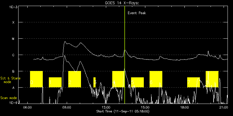 EIS Observation timeline overlay to GOES-Xray curve Code 1" 2" 40" 266" EIS Observations list for this event: STUDY ACRONYM ID DATE OBSERVED DESCRIPTION NOAA# TARGET 0 FLARE266_TEST1 | 24236 | 2011/09/11 06:12:13 | Flare Hunter | 1283 | Active Region TIMELINE ID DATE OBSERVED FITS FILE XCEN (+W/-E) YCEN (+N/-S) DUR ----------------------------------------------------------------------------------------------------------------- 24236 | 2011/09/11 06:12:13.000 | eis_l0_20110911_061213.fits.gz | 760.49 | 193.01 | 56m48s 1 FLARE266_TEST1 | 24237 | 2011/09/11 07:38:13 | Flare Hunter | 1283 | Active Region TIMELINE ID DATE OBSERVED FITS FILE XCEN (+W/-E) YCEN (+N/-S) DUR ----------------------------------------------------------------------------------------------------------------- 24237 | 2011/09/11 07:38:13.000 | eis_l0_20110911_073813.fits.gz | 763.66 | 194.47 | 56m47s 2 FLARE266_TEST1 | 24238 | 2011/09/11 09:08:02 | Flare Hunter | 1283 | Active Region TIMELINE ID DATE OBSERVED FITS FILE XCEN (+W/-E) YCEN (+N/-S) DUR ----------------------------------------------------------------------------------------------------------------- 24238 | 2011/09/11 09:08:02.000 | eis_l0_20110911_090802.fits.gz | 766.91 | 196.10 | 56m47s 3 FLARE266_TEST1 | 24239 | 2011/09/11 11:03:14 | Flare Hunter | 1283 | Active Region TIMELINE ID DATE OBSERVED FITS FILE XCEN (+W/-E) YCEN (+N/-S) DUR ----------------------------------------------------------------------------------------------------------------- 24239 | 2011/09/11 11:03:14.000 | eis_l0_20110911_110314.fits.gz | 770.38 | 198.57 | 8m44s 4 FLARE266_TEST1 | 24240 | 2011/09/11 12:29:33 | Flare Hunter | 1283 | Active Region TIMELINE ID DATE OBSERVED FITS FILE XCEN (+W/-E) YCEN (+N/-S) DUR ----------------------------------------------------------------------------------------------------------------- 24240 | 2011/09/11 12:29:33.000 | eis_l0_20110911_122933.fits.gz | 770.30 | 198.57 | 56m48s 5 FLARE266_TEST1 | 24241 | 2011/09/11 13:55:20 | Flare Hunter | 1283 | Active Region TIMELINE ID DATE OBSERVED FITS FILE XCEN (+W/-E) YCEN (+N/-S) DUR ----------------------------------------------------------------------------------------------------------------- 24241 | 2011/09/11 13:55:20.000 | eis_l0_20110911_135520.fits.gz | 770.23 | 198.64 | 56m47s 6 FLARE266_TEST1 | 24242 | 2011/09/11 15:20:13 | Flare Hunter | 1283 | Active Region TIMELINE ID DATE OBSERVED FITS FILE XCEN (+W/-E) YCEN (+N/-S) DUR ----------------------------------------------------------------------------------------------------------------- 24242 | 2011/09/11 15:20:13.000 | eis_l0_20110911_152013.fits.gz | 770.38 | 198.49 | 56m47s 7 FLARE266_TEST1 | 24243 | 2011/09/11 18:13:14 | Flare Hunter | 1283 | Active Region TIMELINE ID DATE OBSERVED FITS FILE XCEN (+W/-E) YCEN (+N/-S) DUR ----------------------------------------------------------------------------------------------------------------- 24243 | 2011/09/11 18:13:14.000 | eis_l0_20110911_181314.fits.gz | 770.30 | 198.80 | 56m47s 8 FLARE266_TEST1 | 24244 | 2011/09/11 19:38:13 | Flare Hunter | 1283 | Active Region TIMELINE ID DATE OBSERVED FITS FILE XCEN (+W/-E) YCEN (+N/-S) DUR ----------------------------------------------------------------------------------------------------------------- 24244 | 2011/09/11 19:38:13.000 | eis_l0_20110911_193813.fits.gz | 770.30 | 198.64 | 56m47s : Check study information : Download file : View thumbnails For this event, also check for:
