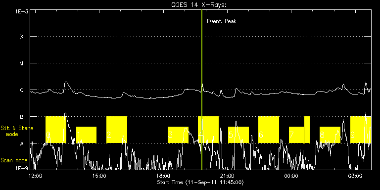 EIS Observation timeline overlay to GOES-Xray curve Code 1" 2" 40" 266" EIS Observations list for this event: STUDY ACRONYM ID DATE OBSERVED DESCRIPTION NOAA# TARGET 0 FLARE266_TEST1 | 24240 | 2011/09/11 12:29:33 | Flare Hunter | 1283 | Active Region TIMELINE ID DATE OBSERVED FITS FILE XCEN (+W/-E) YCEN (+N/-S) DUR ----------------------------------------------------------------------------------------------------------------- 24240 | 2011/09/11 12:29:33.000 | eis_l0_20110911_122933.fits.gz | 770.30 | 198.57 | 56m48s 1 FLARE266_TEST1 | 24241 | 2011/09/11 13:55:20 | Flare Hunter | 1283 | Active Region TIMELINE ID DATE OBSERVED FITS FILE XCEN (+W/-E) YCEN (+N/-S) DUR ----------------------------------------------------------------------------------------------------------------- 24241 | 2011/09/11 13:55:20.000 | eis_l0_20110911_135520.fits.gz | 770.23 | 198.64 | 56m47s 2 FLARE266_TEST1 | 24242 | 2011/09/11 15:20:13 | Flare Hunter | 1283 | Active Region TIMELINE ID DATE OBSERVED FITS FILE XCEN (+W/-E) YCEN (+N/-S) DUR ----------------------------------------------------------------------------------------------------------------- 24242 | 2011/09/11 15:20:13.000 | eis_l0_20110911_152013.fits.gz | 770.38 | 198.49 | 56m47s 3 FLARE266_TEST1 | 24243 | 2011/09/11 18:13:14 | Flare Hunter | 1283 | Active Region TIMELINE ID DATE OBSERVED FITS FILE XCEN (+W/-E) YCEN (+N/-S) DUR ----------------------------------------------------------------------------------------------------------------- 24243 | 2011/09/11 18:13:14.000 | eis_l0_20110911_181314.fits.gz | 770.30 | 198.80 | 56m47s 4 FLARE266_TEST1 | 24244 | 2011/09/11 19:38:13 | Flare Hunter | 1283 | Active Region TIMELINE ID DATE OBSERVED FITS FILE XCEN (+W/-E) YCEN (+N/-S) DUR ----------------------------------------------------------------------------------------------------------------- 24244 | 2011/09/11 19:38:13.000 | eis_l0_20110911_193813.fits.gz | 770.30 | 198.64 | 56m47s 5 FLARE266_TEST1 | 24245 | 2011/09/11 21:03:12 | Flare Hunter | 1283 | Active Region TIMELINE ID DATE OBSERVED FITS FILE XCEN (+W/-E) YCEN (+N/-S) DUR ----------------------------------------------------------------------------------------------------------------- 24245 | 2011/09/11 21:03:12.000 | eis_l0_20110911_210312.fits.gz | 770.38 | 198.57 | 56m48s 6 FLARE266_TEST1 | 24246 | 2011/09/11 22:28:13 | Flare Hunter | 1283 | Active Region TIMELINE ID DATE OBSERVED FITS FILE XCEN (+W/-E) YCEN (+N/-S) DUR ----------------------------------------------------------------------------------------------------------------- 24246 | 2011/09/11 22:28:13.000 | eis_l0_20110911_222813.fits.gz | 770.30 | 198.57 | 56m47s 7 FLARE266_TEST1 | 24247 | 2011/09/11 23:54:12 | Flare Hunter | 1283 | Active Region TIMELINE ID DATE OBSERVED FITS FILE XCEN (+W/-E) YCEN (+N/-S) DUR ----------------------------------------------------------------------------------------------------------------- 24247 | 2011/09/11 23:54:12.000 | eis_l0_20110911_235412.fits.gz | 770.30 | 198.72 | 39m30s 24247 | 2011/09/12 00:36:30.000 | eis_l0_20110912_003630.fits.gz | 770.30 | 198.64 | 14m30s 8 FLARE266_TEST1 | 24248 | 2011/09/12 01:20:12 | Flare Hunter | | Active Region TIMELINE ID DATE OBSERVED FITS FILE XCEN (+W/-E) YCEN (+N/-S) DUR ----------------------------------------------------------------------------------------------------------------- 24248 | 2011/09/12 01:20:12.000 | eis_l0_20110912_012012.fits.gz | 770.38 | 198.64 | 56m48s 9 FLARE266_TEST1 | 24249 | 2011/09/12 02:46:12 | Flare Hunter | | Active Region TIMELINE ID DATE OBSERVED FITS FILE XCEN (+W/-E) YCEN (+N/-S) DUR ----------------------------------------------------------------------------------------------------------------- 24249 | 2011/09/12 02:46:12.000 | eis_l0_20110912_024612.fits.gz | 770.30 | 198.57 | 56m48s : Check study information : Download file : View thumbnails For this event, also check for: