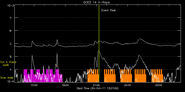 EIS Observation timeline overlay to GOES-Xray curve Code 1" 2" 40" 266" EIS Observations list for this event: STUDY ACRONYM ID DATE OBSERVED DESCRIPTION NOAA# TARGET 0 YK_AR_50x384 | 24802 | 2011/10/30 14:00:27 | Driving Mechanism of Super-Sonic Flows | 1330 | Active Region TIMELINE ID DATE OBSERVED FITS FILE XCEN (+W/-E) YCEN (+N/-S) DUR ----------------------------------------------------------------------------------------------------------------- 24802 | 2011/10/30 14:00:27.000 | eis_l0_20111030_140027.fits.gz | 554.57 | 22.13 | 18m23s 24802 | 2011/10/30 14:18:54.000 | eis_l0_20111030_141854.fits.gz | 556.89 | 22.37 | 18m24s 24802 | 2011/10/30 14:37:21.000 | eis_l0_20111030_143721.fits.gz | 559.29 | 22.37 | 18m24s 24802 | 2011/10/30 14:55:49.000 | eis_l0_20111030_145549.fits.gz | 561.76 | 22.60 | 18m23s 24802 | 2011/10/30 15:14:16.000 | eis_l0_20111030_151416.fits.gz | 564.00 | 22.60 | 18m23s 24802 | 2011/10/30 15:32:43.000 | eis_l0_20111030_153243.fits.gz | 566.39 | 22.83 | 18m23s 24802 | 2011/10/30 15:51:10.000 | eis_l0_20111030_155110.fits.gz | 568.63 | 23.06 | 7m11s 24802 | 2011/10/30 15:58:45.000 | eis_l0_20111030_155845.fits.gz | 569.64 | 22.91 | 10m48s 24802 | 2011/10/30 16:09:37.000 | eis_l0_20111030_160937.fits.gz | 571.03 | 23.14 | 13m20s 24802 | 2011/10/30 16:23:20.000 | eis_l0_20111030_162320.fits.gz | 572.73 | 23.45 | 4m40s 24802 | 2011/10/30 16:28:04.000 | eis_l0_20111030_162804.fits.gz | 573.34 | 23.45 | 18m23s 24802 | 2011/10/30 16:46:31.000 | eis_l0_20111030_164631.fits.gz | 575.66 | 23.45 | 18m23s 24802 | 2011/10/30 17:04:58.000 | eis_l0_20111030_170458.fits.gz | 577.98 | 23.60 | 18m24s 24802 | 2011/10/30 17:23:25.000 | eis_l0_20111030_172325.fits.gz | 580.22 | 23.83 | 18m23s 1 IUU_SCAN_STEPS_002 | 24821 | 2011/10/30 20:07:57 | Active Region Studies - Dynamics | | Active Region TIMELINE ID DATE OBSERVED FITS FILE XCEN (+W/-E) YCEN (+N/-S) DUR ----------------------------------------------------------------------------------------------------------------- 24821 | 2011/10/30 20:07:57.000 | eis_l0_20111030_200757.fits.gz | 599.05 | 25.22 | 5m24s 24821 | 2011/10/30 20:13:24.000 | eis_l0_20111030_201324.fits.gz | 599.75 | 25.15 | 5m24s 24821 | 2011/10/30 20:18:51.000 | eis_l0_20111030_201851.fits.gz | 600.36 | 25.30 | 5m23s 24821 | 2011/10/30 20:24:18.000 | eis_l0_20111030_202418.fits.gz | 601.06 | 25.38 | 5m23s 24821 | 2011/10/30 20:29:45.000 | eis_l0_20111030_202945.fits.gz | 601.76 | 25.38 | 5m23s 24821 | 2011/10/30 20:35:11.000 | eis_l0_20111030_203511.fits.gz | 602.45 | 25.46 | 5m24s 24821 | 2011/10/30 20:40:38.000 | eis_l0_20111030_204038.fits.gz | 602.99 | 25.46 | 5m23s 24821 | 2011/10/30 20:46:05.000 | eis_l0_20111030_204605.fits.gz | 603.69 | 25.53 | 5m23s 24821 | 2011/10/30 20:51:32.000 | eis_l0_20111030_205132.fits.gz | 604.38 | 25.53 | 5m23s 24821 | 2011/10/30 20:56:58.000 | eis_l0_20111030_205658.fits.gz | 605.00 | 25.61 | 5m24s 24821 | 2011/10/30 21:02:25.000 | eis_l0_20111030_210225.fits.gz | 605.69 | 25.61 | 5m23s 24821 | 2011/10/30 21:07:52.000 | eis_l0_20111030_210752.fits.gz | 606.23 | 25.84 | 5m23s 2 IUU_SCAN_STEPS_002 | 24822 | 2011/10/30 21:45:13 | Active Region Studies - Dynamics | | Active Region TIMELINE ID DATE OBSERVED FITS FILE XCEN (+W/-E) YCEN (+N/-S) DUR ----------------------------------------------------------------------------------------------------------------- 24822 | 2011/10/30 21:45:13.000 | eis_l0_20111030_214513.fits.gz | 610.79 | 26.15 | 5m24s 24822 | 2011/10/30 21:50:40.000 | eis_l0_20111030_215040.fits.gz | 611.49 | 26.07 | 5m23s 24822 | 2011/10/30 21:56:07.000 | eis_l0_20111030_215607.fits.gz | 612.18 | 26.15 | 5m23s 24822 | 2011/10/30 22:01:34.000 | eis_l0_20111030_220134.fits.gz | 612.80 | 26.15 | 5m23s 24822 | 2011/10/30 22:07:00.000 | eis_l0_20111030_220700.fits.gz | 613.50 | 26.23 | 5m24s 24822 | 2011/10/30 22:12:27.000 | eis_l0_20111030_221227.fits.gz | 614.11 | 26.30 | 5m23s 24822 | 2011/10/30 22:17:54.000 | eis_l0_20111030_221754.fits.gz | 614.73 | 26.30 | 5m23s 24822 | 2011/10/30 22:23:21.000 | eis_l0_20111030_222321.fits.gz | 615.35 | 26.38 | 5m23s 24822 | 2011/10/30 22:28:47.000 | eis_l0_20111030_222847.fits.gz | 616.12 | 26.46 | 5m24s 24822 | 2011/10/30 22:34:14.000 | eis_l0_20111030_223414.fits.gz | 616.74 | 26.61 | 5m24s 24822 | 2011/10/30 22:39:41.000 | eis_l0_20111030_223941.fits.gz | 617.36 | 26.61 | 5m23s 24822 | 2011/10/30 22:45:08.000 | eis_l0_20111030_224508.fits.gz | 618.05 | 26.69 | 5m23s 3 IUU_SCAN_STEPS_002 | 24823 | 2011/10/30 23:19:45 | Active Region Studies - Dynamics | | Active Region TIMELINE ID DATE OBSERVED FITS FILE XCEN (+W/-E) YCEN (+N/-S) DUR ----------------------------------------------------------------------------------------------------------------- 24823 | 2011/10/30 23:19:45.000 | eis_l0_20111030_231945.fits.gz | 622.15 | 26.92 | 5m24s 24823 | 2011/10/30 23:25:12.000 | eis_l0_20111030_232512.fits.gz | 622.77 | 26.92 | 5m23s 24823 | 2011/10/30 23:30:39.000 | eis_l0_20111030_233039.fits.gz | 623.46 | 26.92 | 5m23s 24823 | 2011/10/30 23:36:05.000 | eis_l0_20111030_233605.fits.gz | 624.00 | 27.08 | 5m24s 24823 | 2011/10/30 23:41:32.000 | eis_l0_20111030_234132.fits.gz | 624.62 | 27.15 | 5m24s 24823 | 2011/10/30 23:46:59.000 | eis_l0_20111030_234659.fits.gz | 625.39 | 27.15 | 5m23s 24823 | 2011/10/30 23:52:26.000 | eis_l0_20111030_235226.fits.gz | 626.09 | 27.23 | 5m23s 24823 | 2011/10/30 23:57:53.000 | eis_l0_20111030_235753.fits.gz | 626.78 | 27.15 | 5m23s 24823 | 2011/10/31 00:03:19.000 | eis_l0_20111031_000319.fits.gz | 627.25 | 27.39 | 5m24s 24823 | 2011/10/31 00:08:46.000 | eis_l0_20111031_000846.fits.gz | 627.94 | 27.31 | 5m24s 24823 | 2011/10/31 00:14:13.000 | eis_l0_20111031_001413.fits.gz | 628.56 | 27.46 | 5m23s 24823 | 2011/10/31 00:19:40.000 | eis_l0_20111031_001940.fits.gz | 629.26 | 27.54 | 5m23s 4 IUU_SCAN_STEPS_002 | 24824 | 2011/10/31 00:41:24 | Active Region Studies - Dynamics | | Active Region TIMELINE ID DATE OBSERVED FITS FILE XCEN (+W/-E) YCEN (+N/-S) DUR -----------