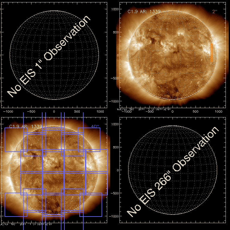 EIS Observation timeline overlay to GOES-Xray curve Code 1" 2" 40" 266" EIS Observations list for this event: STUDY ACRONYM ID DATE OBSERVED DESCRIPTION NOAA# TARGET 0 full_sun_slot_scan_1 | 24828 | 2011/11/01 09:57:20 | Multi-Temperature Full Disc Slot Scans | 1330 | Quiet Sun TIMELINE ID DATE OBSERVED FITS FILE XCEN (+W/-E) YCEN (+N/-S) DUR ----------------------------------------------------------------------------------------------------------------- 24828 | 2011/11/01 09:57:20.000 | eis_l0_20111101_095720.fits.gz | 920.72 | 185.58 | 5m28s 1 full_sun_slot_scan_1 | 24829 | 2011/11/01 10:02:53 | Multi-Temperature Full Disc Slot Scans | | Quiet Sun TIMELINE ID DATE OBSERVED FITS FILE XCEN (+W/-E) YCEN (+N/-S) DUR ----------------------------------------------------------------------------------------------------------------- 24829 | 2011/11/01 10:02:53.000 | eis_l0_20111101_100253.fits.gz | 920.72 | -286.50 | 5m26s 2 full_sun_slot_scan_1 | 24830 | 2011/11/01 10:13:13 | Multi-Temperature Full Disc Slot Scans | 1333 | Quiet Sun TIMELINE ID DATE OBSERVED FITS FILE XCEN (+W/-E) YCEN (+N/-S) DUR ----------------------------------------------------------------------------------------------------------------- 24830 | 2011/11/01 10:13:13.000 | eis_l0_20111101_101313.fits.gz | 452.75 | 185.42 | 5m27s 3 full_sun_slot_scan_1 | 24831 | 2011/11/01 10:18:45 | Multi-Temperature Full Disc Slot Scans | | Quiet Sun TIMELINE ID DATE OBSERVED FITS FILE XCEN (+W/-E) YCEN (+N/-S) DUR ----------------------------------------------------------------------------------------------------------------- 24831 | 2011/11/01 10:18:45.000 | eis_l0_20111101_101845.fits.gz | 452.68 | -286.42 | 5m27s 4 full_sun_slot_scan_1 | 24832 | 2011/11/01 10:29:13 | Multi-Temperature Full Disc Slot Scans | 1332 | Quiet Sun TIMELINE ID DATE OBSERVED FITS FILE XCEN (+W/-E) YCEN (+N/-S) DUR ----------------------------------------------------------------------------------------------------------------- 24832 | 2011/11/01 10:29:13.000 | eis_l0_20111101_102913.fits.gz | -15.37 | 185.58 | 5m27s 5 full_sun_slot_scan_1 | 24833 | 2011/11/01 10:34:46 | Multi-Temperature Full Disc Slot Scans | | Quiet Sun TIMELINE ID DATE OBSERVED FITS FILE XCEN (+W/-E) YCEN (+N/-S) DUR ----------------------------------------------------------------------------------------------------------------- 24833 | 2011/11/01 10:34:46.000 | eis_l0_20111101_103446.fits.gz | -15.21 | -286.42 | 5m26s 6 full_sun_slot_scan_1 | 24834 | 2011/11/01 10:54:43 | Multi-Temperature Full Disc Slot Scans | 1335 | Quiet Sun TIMELINE ID DATE OBSERVED FITS FILE XCEN (+W/-E) YCEN (+N/-S) DUR ----------------------------------------------------------------------------------------------------------------- 24834 | 2011/11/01 10:54:43.000 | eis_l0_20111101_105443.fits.gz | -483.26 | 185.50 | 5m28s 7 full_sun_slot_scan_1 | 24835 | 2011/11/01 11:00:16 | Multi-Temperature Full Disc Slot Scans | | Quiet Sun TIMELINE ID DATE OBSERVED FITS FILE XCEN (+W/-E) YCEN (+N/-S) DUR ----------------------------------------------------------------------------------------------------------------- 24835 | 2011/11/01 11:00:16.000 | eis_l0_20111101_110016.fits.gz | -483.26 | -286.42 | 5m27s 8 full_sun_slot_scan_1 | 24836 | 2011/11/01 11:10:43 | Multi-Temperature Full Disc Slot Scans | | Quiet Sun TIMELINE ID DATE OBSERVED FITS FILE XCEN (+W/-E) YCEN (+N/-S) DUR ----------------------------------------------------------------------------------------------------------------- 24836 | 2011/11/01 11:10:43.000 | eis_l0_20111101_111043.fits.gz | -9884.69 | -9777.20 | 5m28s 9 full_sun_slot_scan_1 | 24837 | 2011/11/01 11:16:16 | Multi-Temperature Full Disc Slot Scans | | Quiet Sun TIMELINE ID DATE OBSERVED FITS FILE XCEN (+W/-E) YCEN (+N/-S) DUR ----------------------------------------------------------------------------------------------------------------- 24837 | 2011/11/01 11:16:16.000 | eis_l0_20111101_111616.fits.gz | -9884.69 | -10249.20 | 5m27s 10 full_sun_slot_scan_1 | 24838 | 2011/11/01 11:26:43 | Multi-Temperature Full Disc Slot Scans | | Quiet Sun TIMELINE ID DATE OBSERVED FITS FILE XCEN (+W/-E) YCEN (+N/-S) DUR ----------------------------------------------------------------------------------------------------------------- 24838 | 2011/11/01 11:26:43.000 | eis_l0_20111101_112643.fits.gz | 760.97 | 655.63 | 5m28s 11 full_sun_slot_scan_1 | 24839 | 2011/11/01 11:36:43 | Multi-Temperature Full Disc Slot Scans | | Quiet Sun TIMELINE ID DATE OBSERVED FITS FILE XCEN (+W/-E) YCEN (+N/-S) DUR ----------------------------------------------------------------------------------------------------------------- 24839 | 2011/11/01 11:36:43.000 | eis_l0_20111101_113643.fits.gz | 395.82 | 1032.67 | 5m27s 12 full_sun_slot_scan_1 | 24840 | 2011/11/01 11:42:15 | Multi-Temperature Full Disc Slot Scans | 1332 | Quiet Sun TIMELINE ID DATE OBSERVED FITS FILE XCEN (+W/-E) YCEN (+N/-S) DUR ----------------------------------------------------------------------------------------------------------------- 24840 | 2011/11/01 11:42:15.000 | eis_l0_20111101_114215.fits.gz | 395.82 | 560.52 | 5m27s 13 full_sun_slot_scan_1 | 24841 | 2011/11/01 11:52:43 | Multi-Temperature Full Disc Slot Scans | | Quiet Sun TIMELINE ID DATE OBSERVED FITS FILE XCEN (+W/-E) YCEN (+N/-S) DUR ----------------------------------------------------------------------------------------------------------------- 24841 | 2011/11/01 11:52:43.000 | eis_l0_20111101_115243.fits.gz | -15.29 | 1126.61 | 5m27s 14 full_sun_slot_scan_1 | 24842 | 2011/11/01 11:58:15 | Multi-Temperature Full Disc Slot Scans | 1332 | Quiet Sun TIMELINE ID DATE OBSERVED FITS FILE XCEN (+W/-E) YCEN (+N/-S) DUR ----------------------------------------------------------------------------------------------------------------- 24842 | 2011/11/01 11:58:15.000 | eis_l0_20111101_115815.fits.gz | -15.29 | 654.61 | 5m27s 15 full_sun_slot_scan_1 | 24843 | 2011/11/01 12:08:43 | Multi-Temperature Full Disc Slot Scans | 