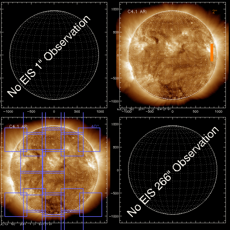 EIS Observation timeline overlay to GOES-Xray curve Code 1" 2" 40" 266" EIS Observations list for this event: STUDY ACRONYM ID DATE OBSERVED DESCRIPTION NOAA# TARGET 0 full_sun_slot_scan_1 | 24832 | 2011/11/01 10:29:13 | Multi-Temperature Full Disc Slot Scans | 1332 | Quiet Sun TIMELINE ID DATE OBSERVED FITS FILE XCEN (+W/-E) YCEN (+N/-S) DUR ----------------------------------------------------------------------------------------------------------------- 24832 | 2011/11/01 10:29:13.000 | eis_l0_20111101_102913.fits.gz | -15.37 | 185.58 | 5m27s 1 full_sun_slot_scan_1 | 24833 | 2011/11/01 10:34:46 | Multi-Temperature Full Disc Slot Scans | | Quiet Sun TIMELINE ID DATE OBSERVED FITS FILE XCEN (+W/-E) YCEN (+N/-S) DUR ----------------------------------------------------------------------------------------------------------------- 24833 | 2011/11/01 10:34:46.000 | eis_l0_20111101_103446.fits.gz | -15.21 | -286.42 | 5m26s 2 full_sun_slot_scan_1 | 24834 | 2011/11/01 10:54:43 | Multi-Temperature Full Disc Slot Scans | 1335 | Quiet Sun TIMELINE ID DATE OBSERVED FITS FILE XCEN (+W/-E) YCEN (+N/-S) DUR ----------------------------------------------------------------------------------------------------------------- 24834 | 2011/11/01 10:54:43.000 | eis_l0_20111101_105443.fits.gz | -483.26 | 185.50 | 5m28s 3 full_sun_slot_scan_1 | 24835 | 2011/11/01 11:00:16 | Multi-Temperature Full Disc Slot Scans | | Quiet Sun TIMELINE ID DATE OBSERVED FITS FILE XCEN (+W/-E) YCEN (+N/-S) DUR ----------------------------------------------------------------------------------------------------------------- 24835 | 2011/11/01 11:00:16.000 | eis_l0_20111101_110016.fits.gz | -483.26 | -286.42 | 5m27s 4 full_sun_slot_scan_1 | 24836 | 2011/11/01 11:10:43 | Multi-Temperature Full Disc Slot Scans | | Quiet Sun TIMELINE ID DATE OBSERVED FITS FILE XCEN (+W/-E) YCEN (+N/-S) DUR ----------------------------------------------------------------------------------------------------------------- 24836 | 2011/11/01 11:10:43.000 | eis_l0_20111101_111043.fits.gz | -9884.69 | -9777.20 | 5m28s 5 full_sun_slot_scan_1 | 24837 | 2011/11/01 11:16:16 | Multi-Temperature Full Disc Slot Scans | | Quiet Sun TIMELINE ID DATE OBSERVED FITS FILE XCEN (+W/-E) YCEN (+N/-S) DUR ----------------------------------------------------------------------------------------------------------------- 24837 | 2011/11/01 11:16:16.000 | eis_l0_20111101_111616.fits.gz | -9884.69 | -10249.20 | 5m27s 6 full_sun_slot_scan_1 | 24838 | 2011/11/01 11:26:43 | Multi-Temperature Full Disc Slot Scans | | Quiet Sun TIMELINE ID DATE OBSERVED FITS FILE XCEN (+W/-E) YCEN (+N/-S) DUR ----------------------------------------------------------------------------------------------------------------- 24838 | 2011/11/01 11:26:43.000 | eis_l0_20111101_112643.fits.gz | 760.97 | 655.63 | 5m28s 7 full_sun_slot_scan_1 | 24839 | 2011/11/01 11:36:43 | Multi-Temperature Full Disc Slot Scans | | Quiet Sun TIMELINE ID DATE OBSERVED FITS FILE XCEN (+W/-E) YCEN (+N/-S) DUR ----------------------------------------------------------------------------------------------------------------- 24839 | 2011/11/01 11:36:43.000 | eis_l0_20111101_113643.fits.gz | 395.82 | 1032.67 | 5m27s 8 full_sun_slot_scan_1 | 24840 | 2011/11/01 11:42:15 | Multi-Temperature Full Disc Slot Scans | 1332 | Quiet Sun TIMELINE ID DATE OBSERVED FITS FILE XCEN (+W/-E) YCEN (+N/-S) DUR ----------------------------------------------------------------------------------------------------------------- 24840 | 2011/11/01 11:42:15.000 | eis_l0_20111101_114215.fits.gz | 395.82 | 560.52 | 5m27s 9 full_sun_slot_scan_1 | 24841 | 2011/11/01 11:52:43 | Multi-Temperature Full Disc Slot Scans | | Quiet Sun TIMELINE ID DATE OBSERVED FITS FILE XCEN (+W/-E) YCEN (+N/-S) DUR ----------------------------------------------------------------------------------------------------------------- 24841 | 2011/11/01 11:52:43.000 | eis_l0_20111101_115243.fits.gz | -15.29 | 1126.61 | 5m27s 10 full_sun_slot_scan_1 | 24842 | 2011/11/01 11:58:15 | Multi-Temperature Full Disc Slot Scans | 1332 | Quiet Sun TIMELINE ID DATE OBSERVED FITS FILE XCEN (+W/-E) YCEN (+N/-S) DUR ----------------------------------------------------------------------------------------------------------------- 24842 | 2011/11/01 11:58:15.000 | eis_l0_20111101_115815.fits.gz | -15.29 | 654.61 | 5m27s 11 full_sun_slot_scan_1 | 24843 | 2011/11/01 12:08:43 | Multi-Temperature Full Disc Slot Scans | | Quiet Sun TIMELINE ID DATE OBSERVED FITS FILE XCEN (+W/-E) YCEN (+N/-S) DUR ----------------------------------------------------------------------------------------------------------------- 24843 | 2011/11/01 12:08:43.000 | eis_l0_20111101_120843.fits.gz | -426.48 | 1032.60 | 5m27s 12 full_sun_slot_scan_1 | 24844 | 2011/11/01 12:14:16 | Multi-Temperature Full Disc Slot Scans | | Quiet Sun TIMELINE ID DATE OBSERVED FITS FILE XCEN (+W/-E) YCEN (+N/-S) DUR ----------------------------------------------------------------------------------------------------------------- 24844 | 2011/11/01 12:14:16.000 | eis_l0_20111101_121416.fits.gz | -426.40 | 560.75 | 5m26s 13 full_sun_slot_scan_1 | 24845 | 2011/11/01 12:24:43 | Multi-Temperature Full Disc Slot Scans | | Quiet Sun TIMELINE ID DATE OBSERVED FITS FILE XCEN (+W/-E) YCEN (+N/-S) DUR ----------------------------------------------------------------------------------------------------------------- 24845 | 2011/11/01 12:24:43.000 | eis_l0_20111101_122443.fits.gz | -830.25 | 655.55 | 5m28s 14 full_sun_slot_scan_1 | 24846 | 2011/11/01 12:34:43 | Multi-Temperature Full Disc Slot Scans | | Quiet Sun TIMELINE ID DATE OBSERVED FITS FILE XCEN (+W/-E) YCEN (+N/-S) DUR ----------------------------------------------------------------------------------------------------------------- 24846 | 2011/11/01 12:34:43.000 | eis_l0_20111101_123443.fits.gz | 798.21 | -757.09 | 5m27s 15 full_sun_slot_scan_1 | 24847 | 2011/11/01 12:44:43 | Multi-Temperature Full Disc Slot Scans | | Quiet
