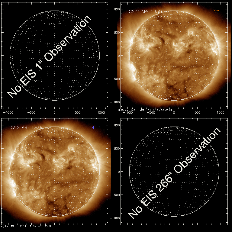 EIS Observation timeline overlay to GOES-Xray curve Code 1" 2" 40" 266" EIS Observations list for this event: STUDY ACRONYM ID DATE OBSERVED DESCRIPTION NOAA# TARGET 0 cam_ar_limb_lite_v2 | 24879 | 2011/11/01 22:58:03 | Limb Active Region Study - Temperature | | Active Region TIMELINE ID DATE OBSERVED FITS FILE XCEN (+W/-E) YCEN (+N/-S) DUR ----------------------------------------------------------------------------------------------------------------- 24879 | 2011/11/01 22:58:03.000 | eis_l0_20111101_225803.fits.gz | -9869.70 | -9963.20 | 2h6m1s 1 cam_ar_limb_lite_v2 | 24876 | 2011/11/02 01:53:36 | Limb Active Region Study - Temperature | | Active Region TIMELINE ID DATE OBSERVED FITS FILE XCEN (+W/-E) YCEN (+N/-S) DUR ----------------------------------------------------------------------------------------------------------------- 24876 | 2011/11/02 01:53:36.000 | eis_l0_20111102_015336.fits.gz | -9869.70 | -9963.20 | 5m25s 24876 | 2011/11/02 01:59:03.000 | eis_l0_20111102_015903.fits.gz | -9869.70 | -9963.20 | 48m13s 24876 | 2011/11/02 02:48:04.000 | eis_l0_20111102_024804.fits.gz | -9869.70 | -9963.20 | 3m5s 24876 | 2011/11/02 02:51:11.000 | eis_l0_20111102_025111.fits.gz | -9869.70 | -9963.20 | 16m18s 24876 | 2011/11/02 03:07:31.000 | eis_l0_20111102_030731.fits.gz | -9869.70 | -9963.20 | 52m6s 2 PRY_slot_context_v3 | 24880 | 2011/11/02 04:13:01 | Limb Active Region Study - Context | | Active Region TIMELINE ID DATE OBSERVED FITS FILE XCEN (+W/-E) YCEN (+N/-S) DUR ----------------------------------------------------------------------------------------------------------------- 24880 | 2011/11/02 04:13:01.000 | eis_l0_20111102_041301.fits.gz | -9884.69 | -9963.20 | 10s 24880 | 2011/11/02 04:13:37.000 | eis_l0_20111102_041337.fits.gz | -9884.69 | -9963.20 | 46s 24880 | 2011/11/02 04:14:36.000 | eis_l0_20111102_041436.fits.gz | -9884.69 | -9963.20 | 1m21s 3 cam_ar_limb_lite_v2 | 24877 | 2011/11/02 10:00:03 | Limb Active Region Study - Temperature | | Active Region TIMELINE ID DATE OBSERVED FITS FILE XCEN (+W/-E) YCEN (+N/-S) DUR ----------------------------------------------------------------------------------------------------------------- 24877 | 2011/11/02 10:00:03.000 | eis_l0_20111102_100003.fits.gz | -9869.70 | -9963.20 | 1h18m33s 24877 | 2011/11/02 11:18:38.000 | eis_l0_20111102_111838.fits.gz | -9869.70 | -9963.20 | 44m19s 24877 | 2011/11/02 12:02:59.000 | eis_l0_20111102_120259.fits.gz | -9869.70 | -9963.20 | 3m5s 4 cam_ar_limb_lite_v2 | 24878 | 2011/11/02 12:29:18 | Limb Active Region Study - Temperature | | Active Region TIMELINE ID DATE OBSERVED FITS FILE XCEN (+W/-E) YCEN (+N/-S) DUR ----------------------------------------------------------------------------------------------------------------- 24878 | 2011/11/02 12:29:18.000 | eis_l0_20111102_122918.fits.gz | -9869.70 | -9963.20 | 2h6m : Check study information : Download file : View thumbnails For this event, also check for: