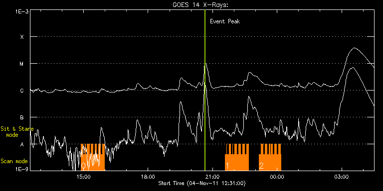 EIS Observation timeline overlay to GOES-Xray curve Code 1" 2" 40" 266" EIS Observations list for this event: STUDY ACRONYM ID DATE OBSERVED DESCRIPTION NOAA# TARGET 0 IUU_SCAN_STEPS_002 | 24902 | 2011/11/04 14:53:09 | Active Region Studies - Dynamics | | Active Region TIMELINE ID DATE OBSERVED FITS FILE XCEN (+W/-E) YCEN (+N/-S) DUR ----------------------------------------------------------------------------------------------------------------- 24902 | 2011/11/04 14:53:09.000 | eis_l0_20111104_145309.fits.gz | -731.00 | 265.23 | 5m23s 24902 | 2011/11/04 14:58:36.000 | eis_l0_20111104_145836.fits.gz | -730.53 | 265.15 | 5m23s 24902 | 2011/11/04 15:04:02.000 | eis_l0_20111104_150402.fits.gz | -729.99 | 265.08 | 1m47s 24902 | 2011/11/04 15:06:12.000 | eis_l0_20111104_150612.fits.gz | -729.92 | 265.15 | 3m14s 24902 | 2011/11/04 15:09:29.000 | eis_l0_20111104_150929.fits.gz | -729.53 | 265.00 | 4m41s 24902 | 2011/11/04 15:14:56.000 | eis_l0_20111104_151456.fits.gz | -729.07 | 265.08 | 20s 24902 | 2011/11/04 15:15:40.000 | eis_l0_20111104_151540.fits.gz | -728.99 | 265.08 | 41s 24902 | 2011/11/04 15:17:06.000 | eis_l0_20111104_151706.fits.gz | -728.91 | 265.00 | 3m14s 24902 | 2011/11/04 15:20:23.000 | eis_l0_20111104_152023.fits.gz | -728.60 | 264.92 | 5m24s 24902 | 2011/11/04 15:25:50.000 | eis_l0_20111104_152550.fits.gz | -728.14 | 264.92 | 5m23s 24902 | 2011/11/04 15:31:17.000 | eis_l0_20111104_153117.fits.gz | -727.60 | 264.92 | 5m23s 24902 | 2011/11/04 15:36:43.000 | eis_l0_20111104_153643.fits.gz | -727.14 | 264.77 | 5m24s 24902 | 2011/11/04 15:42:10.000 | eis_l0_20111104_154210.fits.gz | -726.59 | 264.77 | 5m24s 24902 | 2011/11/04 15:47:37.000 | eis_l0_20111104_154737.fits.gz | -726.21 | 264.85 | 5m23s 24902 | 2011/11/04 15:53:04.000 | eis_l0_20111104_155304.fits.gz | -725.67 | 264.69 | 5m23s 1 IUU_SCAN_STEPS_002 | 24897 | 2011/11/04 21:35:04 | Active Region Studies - Dynamics | | Active Region TIMELINE ID DATE OBSERVED FITS FILE XCEN (+W/-E) YCEN (+N/-S) DUR ----------------------------------------------------------------------------------------------------------------- 24897 | 2011/11/04 21:35:04.000 | eis_l0_20111104_213504.fits.gz | -693.84 | 262.30 | 3m35s 24897 | 2011/11/04 21:39:03.000 | eis_l0_20111104_213903.fits.gz | -693.53 | 262.45 | 20s 24897 | 2011/11/04 21:40:09.000 | eis_l0_20111104_214009.fits.gz | -693.38 | 262.22 | 5m23s 24897 | 2011/11/04 21:45:36.000 | eis_l0_20111104_214536.fits.gz | -692.99 | 262.30 | 5m23s 24897 | 2011/11/04 21:51:03.000 | eis_l0_20111104_215103.fits.gz | -692.30 | 262.14 | 4m18s 24897 | 2011/11/04 21:55:44.000 | eis_l0_20111104_215544.fits.gz | -691.91 | 262.22 | 42s 24897 | 2011/11/04 21:56:29.000 | eis_l0_20111104_215629.fits.gz | -691.83 | 262.14 | 5m24s 24897 | 2011/11/04 22:01:56.000 | eis_l0_20111104_220156.fits.gz | -691.29 | 262.07 | 5m24s 24897 | 2011/11/04 22:07:23.000 | eis_l0_20111104_220723.fits.gz | -690.75 | 262.07 | 5m23s 24897 | 2011/11/04 22:12:50.000 | eis_l0_20111104_221250.fits.gz | -690.21 | 262.07 | 5m23s 24897 | 2011/11/04 22:18:16.000 | eis_l0_20111104_221816.fits.gz | -689.67 | 262.07 | 5m24s 24897 | 2011/11/04 22:23:43.000 | eis_l0_20111104_222343.fits.gz | -689.21 | 261.91 | 5m24s 24897 | 2011/11/04 22:29:10.000 | eis_l0_20111104_222910.fits.gz | -688.67 | 261.99 | 5m23s 24897 | 2011/11/04 22:34:37.000 | eis_l0_20111104_223437.fits.gz | -688.13 | 261.91 | 5m23s 2 IUU_SCAN_STEPS_002 | 24898 | 2011/11/04 23:09:43 | Active Region Studies - Dynamics | | Active Region TIMELINE ID DATE OBSERVED FITS FILE XCEN (+W/-E) YCEN (+N/-S) DUR ----------------------------------------------------------------------------------------------------------------- 24898 | 2011/11/04 23:09:43.000 | eis_l0_20111104_230943.fits.gz | -684.73 | 261.52 | 5m23s 24898 | 2011/11/04 23:15:09.000 | eis_l0_20111104_231509.fits.gz | -684.26 | 261.68 | 5m24s 24898 | 2011/11/04 23:20:36.000 | eis_l0_20111104_232036.fits.gz | -683.57 | 261.52 | 5m24s 24898 | 2011/11/04 23:26:03.000 | eis_l0_20111104_232603.fits.gz | -683.10 | 261.52 | 5m23s 24898 | 2011/11/04 23:31:29.000 | eis_l0_20111104_233129.fits.gz | -682.64 | 261.60 | 5m24s 24898 | 2011/11/04 23:36:56.000 | eis_l0_20111104_233656.fits.gz | -682.02 | 261.52 | 3m36s 24898 | 2011/11/04 23:40:55.000 | eis_l0_20111104_234055.fits.gz | -681.56 | 261.45 | 1m25s 24898 | 2011/11/04 23:42:23.000 | eis_l0_20111104_234223.fits.gz | -681.48 | 261.52 | 5m23s 24898 | 2011/11/04 23:47:50.000 | eis_l0_20111104_234750.fits.gz | -680.94 | 261.29 | 5m23s 24898 | 2011/11/04 23:53:17.000 | eis_l0_20111104_235317.fits.gz | -680.40 | 261.37 | 5m23s 24898 | 2011/11/04 23:58:43.000 | eis_l0_20111104_235843.fits.gz | -679.86 | 261.37 | 5m24s 24898 | 2011/11/05 00:04:10.000 | eis_l0_20111105_000410.fits.gz | -679.40 | 261.37 | 5m24s 24898 | 2011/11/05 00:09:37.000 | eis_l0_20111105_000937.fits.gz | -678.86 | 261.29 | 1m25s : Check study information : Download file : View thumbnails For this event, also check for:
