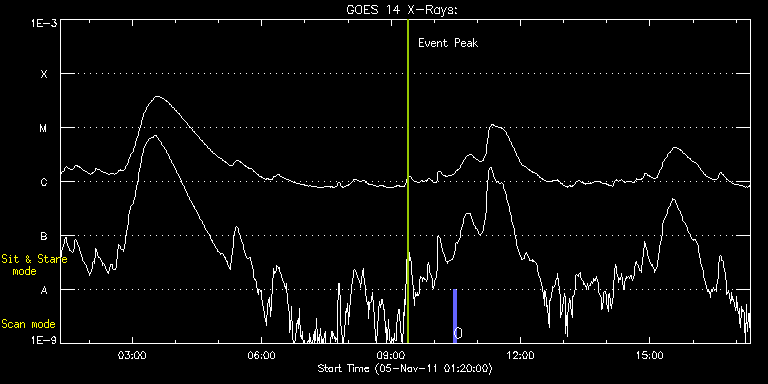 EIS Observation timeline overlay to GOES-Xray curve Code 1" 2" 40" 266" EIS Observations list for this event: STUDY ACRONYM ID DATE OBSERVED DESCRIPTION NOAA# TARGET 0 PRY_slot_context_v3 | 24907 | 2011/11/05 10:27:20 | Hinode Flare Watch on AR 11339 | 1339 | Active Region TIMELINE ID DATE OBSERVED FITS FILE XCEN (+W/-E) YCEN (+N/-S) DUR ----------------------------------------------------------------------------------------------------------------- 24907 | 2011/11/05 10:27:20.000 | eis_l0_20111105_102720.fits.gz | -603.99 | 258.20 | 2m57s : Check study information : Download file : View thumbnails For this event, also check for: