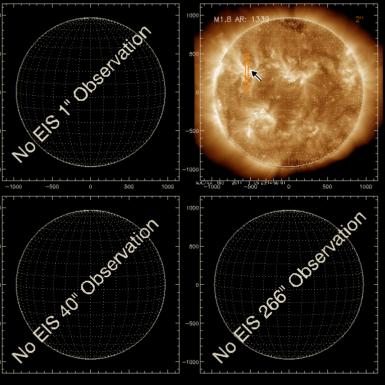EIS Observation timeline overlay to GOES-Xray curve Code 1" 2" 40" 266" EIS Observations list for this event: STUDY ACRONYM ID DATE OBSERVED DESCRIPTION NOAA# TARGET 0 PRY_slot_context_v3 | 24910 | 2011/11/05 18:12:19 | Hinode Flare Watch on AR 11339 | 1339 | Active Region TIMELINE ID DATE OBSERVED FITS FILE XCEN (+W/-E) YCEN (+N/-S) DUR ----------------------------------------------------------------------------------------------------------------- 24910 | 2011/11/05 18:12:19.000 | eis_l0_20111105_181219.fits.gz | -542.38 | 255.81 | 2m56s : Check study information : Download file : View thumbnails For this event, also check for: