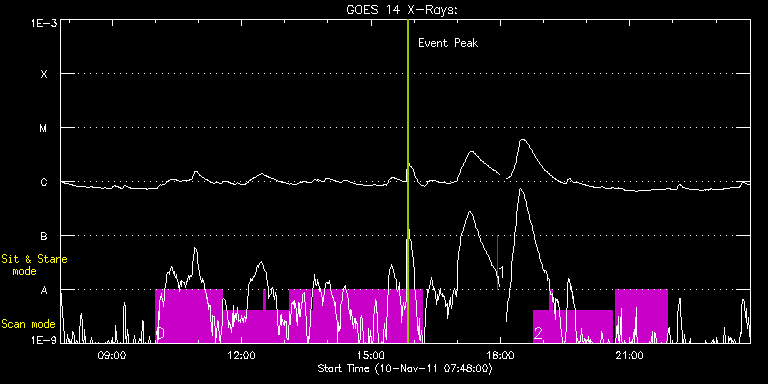 EIS Observation timeline overlay to GOES-Xray curve Code 1" 2" 40" 266" EIS Observations list for this event: STUDY ACRONYM ID DATE OBSERVED DESCRIPTION NOAA# TARGET 0 HPW021_VEL_360x512v1 | 24935 | 2011/11/10 10:00:28 | Scan of AR coordinated with SUMER | 1339 | Active Region TIMELINE ID DATE OBSERVED FITS FILE XCEN (+W/-E) YCEN (+N/-S) DUR ----------------------------------------------------------------------------------------------------------------- 24935 | 2011/11/10 10:00:28.000 | eis_l0_20111110_100028.fits.gz | 419.99 | 254.96 | 1h32m50s 24935 | 2011/11/10 11:33:20.000 | eis_l0_20111110_113320.fits.gz | 432.12 | 255.19 | 57m45s 24935 | 2011/11/10 12:31:07.000 | eis_l0_20111110_123107.fits.gz | 439.53 | 255.65 | 2m2s 24935 | 2011/11/10 12:33:11.000 | eis_l0_20111110_123311.fits.gz | 439.77 | 255.65 | 32m59s 24935 | 2011/11/10 13:06:17.000 | eis_l0_20111110_130617.fits.gz | 444.09 | 255.81 | 28m52s 24935 | 2011/11/10 13:36:12.000 | eis_l0_20111110_133612.fits.gz | 447.95 | 255.96 | 4m6s 24935 | 2011/11/10 13:40:20.000 | eis_l0_20111110_134020.fits.gz | 448.42 | 256.12 | 21m38s 24935 | 2011/11/10 14:02:00.000 | eis_l0_20111110_140200.fits.gz | 451.20 | 256.19 | 1m 24935 | 2011/11/10 14:04:04.000 | eis_l0_20111110_140404.fits.gz | 451.43 | 256.04 | 2h7m55s 1 regcal076 | 24937 | 2011/11/10 17:55:42 | Flatfield, 1 exposure, led 100ms, ccd | | Engineering TIMELINE ID DATE OBSERVED FITS FILE XCEN (+W/-E) YCEN (+N/-S) DUR ----------------------------------------------------------------------------------------------------------------- 24937 | 2011/11/10 17:55:42.000 | eis_l0_20111110_175542.fits.gz | 14.51 | -50.42 | 1s 2 HPW021_VEL_360x512v1 | 24936 | 2011/11/10 18:46:10 | Scan of AR coordinated with SUMER | 1339 | Active Region TIMELINE ID DATE OBSERVED FITS FILE XCEN (+W/-E) YCEN (+N/-S) DUR ----------------------------------------------------------------------------------------------------------------- 24936 | 2011/11/10 18:46:10.000 | eis_l0_20111110_184610.fits.gz | 487.12 | 257.74 | 21m38s 24936 | 2011/11/10 19:07:50.000 | eis_l0_20111110_190750.fits.gz | 489.82 | 257.74 | 5m8s 24936 | 2011/11/10 19:13:00.000 | eis_l0_20111110_191300.fits.gz | 490.44 | 257.97 | 1h22m31s 24936 | 2011/11/10 20:39:41.000 | eis_l0_20111110_203941.fits.gz | 501.18 | 258.36 | 1h12m12s : Check study information : Download file : View thumbnails For this event, also check for:
