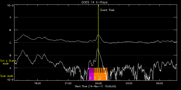 EIS Observation timeline overlay to GOES-Xray curve Code 1" 2" 40" 266" EIS Observations list for this event: STUDY ACRONYM ID DATE OBSERVED DESCRIPTION NOAA# TARGET 0 SK_AR1_50x320c | 24964 | 2011/11/14 23:03:19 | HOP-128; Cangpaim bitween Hida and Hin | 1342 | Active Region TIMELINE ID DATE OBSERVED FITS FILE XCEN (+W/-E) YCEN (+N/-S) DUR ----------------------------------------------------------------------------------------------------------------- 24964 | 2011/11/14 23:03:19.000 | eis_l0_20111114_230319.fits.gz | 504.02 | 145.73 | 2m45s 24964 | 2011/11/14 23:06:08.000 | eis_l0_20111114_230608.fits.gz | 504.40 | 145.88 | 2m45s 24964 | 2011/11/14 23:08:56.000 | eis_l0_20111114_230856.fits.gz | 504.87 | 145.73 | 2m45s 24964 | 2011/11/14 23:11:44.000 | eis_l0_20111114_231144.fits.gz | 505.25 | 145.96 | 2m45s 24964 | 2011/11/14 23:14:33.000 | eis_l0_20111114_231433.fits.gz | 505.56 | 145.96 | 2m45s 24964 | 2011/11/14 23:17:21.000 | eis_l0_20111114_231721.fits.gz | 505.95 | 145.88 | 2m45s 24964 | 2011/11/14 23:20:09.000 | eis_l0_20111114_232009.fits.gz | 506.26 | 145.88 | 2m46s 24964 | 2011/11/14 23:22:58.000 | eis_l0_20111114_232258.fits.gz | 506.64 | 146.04 | 2m45s 24964 | 2011/11/14 23:25:46.000 | eis_l0_20111114_232546.fits.gz | 507.03 | 146.12 | 2m45s 24964 | 2011/11/14 23:28:34.000 | eis_l0_20111114_232834.fits.gz | 507.34 | 146.04 | 2m46s 1 CAM_ARTB_RHESSI_b_2 | 24965 | 2011/11/14 23:31:38 | HOP-128; Cangpaim bitween Hida and Hin | | Active Region TIMELINE ID DATE OBSERVED FITS FILE XCEN (+W/-E) YCEN (+N/-S) DUR ----------------------------------------------------------------------------------------------------------------- 24965 | 2011/11/14 23:31:38.000 | eis_l0_20111114_233138.fits.gz | 507.74 | 145.96 | 3m52s 24965 | 2011/11/14 23:35:32.000 | eis_l0_20111114_233532.fits.gz | 508.28 | 146.04 | 3m52s 24965 | 2011/11/14 23:39:27.000 | eis_l0_20111114_233927.fits.gz | 508.82 | 146.12 | 3m52s 24965 | 2011/11/14 23:43:22.000 | eis_l0_20111114_234322.fits.gz | 509.28 | 146.04 | 3m51s 24965 | 2011/11/14 23:47:16.000 | eis_l0_20111114_234716.fits.gz | 509.82 | 146.12 | 3m52s 24965 | 2011/11/14 23:51:11.000 | eis_l0_20111114_235111.fits.gz | 510.29 | 146.19 | 3m51s 24965 | 2011/11/14 23:55:05.000 | eis_l0_20111114_235505.fits.gz | 510.75 | 146.19 | 3m52s 24965 | 2011/11/14 23:59:00.000 | eis_l0_20111114_235900.fits.gz | 511.29 | 146.35 | 3m51s 2 tr_bright_lo | 24966 | 2011/11/15 00:02:56 | HOP-128; Cangpaim bitween Hida and Hin | | Quiet Sun TIMELINE ID DATE OBSERVED FITS FILE XCEN (+W/-E) YCEN (+N/-S) DUR ----------------------------------------------------------------------------------------------------------------- 24966 | 2011/11/15 00:02:56.000 | eis_l0_20111115_000256.fits.gz | 511.83 | 146.35 | 5m15s 24966 | 2011/11/15 00:08:14.000 | eis_l0_20111115_000814.fits.gz | 512.45 | 146.43 | 5m15s 24966 | 2011/11/15 00:13:32.000 | eis_l0_20111115_001332.fits.gz | 513.22 | 146.43 | 5m15s 24966 | 2011/11/15 00:18:50.000 | eis_l0_20111115_001850.fits.gz | 514.00 | 146.35 | 5m15s 24966 | 2011/11/15 00:24:07.000 | eis_l0_20111115_002407.fits.gz | 514.54 | 146.43 | 5m15s 24966 | 2011/11/15 00:29:25.000 | eis_l0_20111115_002925.fits.gz | 515.23 | 146.19 | 5m15s 24966 | 2011/11/15 00:34:43.000 | eis_l0_20111115_003443.fits.gz | 515.93 | 146.43 | 5m15s 24966 | 2011/11/15 00:40:01.000 | eis_l0_20111115_004001.fits.gz | 516.62 | 146.35 | 5m15s 24966 | 2011/11/15 00:45:19.000 | eis_l0_20111115_004519.fits.gz | 517.24 | 146.43 | 5m15s : Check study information : Download file : View thumbnails For this event, also check for: