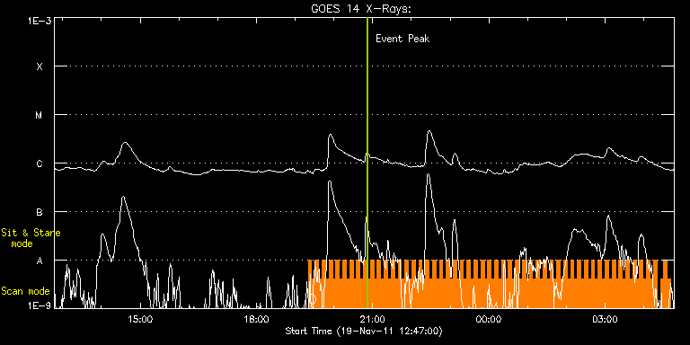 EIS Observation timeline overlay to GOES-Xray curve Code 1" 2" 40" 266" EIS Observations list for this event: STUDY ACRONYM ID DATE OBSERVED DESCRIPTION NOAA# TARGET 0 HH_Flare+AR_180x152 | 25004 | 2011/11/19 19:20:14 | AR observation and Flare hunt | 1354 | Flare TIMELINE ID DATE OBSERVED FITS FILE XCEN (+W/-E) YCEN (+N/-S) DUR ----------------------------------------------------------------------------------------------------------------- 25004 | 2011/11/19 19:20:14.000 | eis_l0_20111119_192014.fits.gz | -805.84 | -297.83 | 5m18s 25004 | 2011/11/19 19:25:35.000 | eis_l0_20111119_192535.fits.gz | -805.30 | -297.83 | 5m19s 25004 | 2011/11/19 19:30:57.000 | eis_l0_20111119_193057.fits.gz | -804.76 | -297.98 | 5m18s 25004 | 2011/11/19 19:36:17.000 | eis_l0_20111119_193617.fits.gz | -804.38 | -297.75 | 5m19s 25004 | 2011/11/19 19:41:39.000 | eis_l0_20111119_194139.fits.gz | -803.84 | -297.90 | 5m18s 25004 | 2011/11/19 19:46:59.000 | eis_l0_20111119_194659.fits.gz | -803.29 | -297.90 | 5m18s 25004 | 2011/11/19 19:52:20.000 | eis_l0_20111119_195220.fits.gz | -802.83 | -297.90 | 5m18s 25004 | 2011/11/19 19:57:41.000 | eis_l0_20111119_195741.fits.gz | -802.37 | -297.98 | 5m17s 25004 | 2011/11/19 20:03:01.000 | eis_l0_20111119_200301.fits.gz | -801.75 | -297.90 | 5m18s 25004 | 2011/11/19 20:08:22.000 | eis_l0_20111119_200822.fits.gz | -801.36 | -298.06 | 5m18s 25004 | 2011/11/19 20:13:43.000 | eis_l0_20111119_201343.fits.gz | -800.74 | -298.06 | 5m17s 25004 | 2011/11/19 20:19:03.000 | eis_l0_20111119_201903.fits.gz | -800.28 | -297.98 | 5m18s 25004 | 2011/11/19 20:24:24.000 | eis_l0_20111119_202424.fits.gz | -799.74 | -298.14 | 5m18s 25004 | 2011/11/19 20:29:45.000 | eis_l0_20111119_202945.fits.gz | -799.35 | -298.06 | 5m17s 25004 | 2011/11/19 20:35:05.000 | eis_l0_20111119_203505.fits.gz | -798.74 | -298.06 | 5m19s 25004 | 2011/11/19 20:40:26.000 | eis_l0_20111119_204026.fits.gz | -798.35 | -297.98 | 5m18s 25004 | 2011/11/19 20:45:47.000 | eis_l0_20111119_204547.fits.gz | -797.73 | -298.14 | 5m18s 25004 | 2011/11/19 20:51:08.000 | eis_l0_20111119_205108.fits.gz | -797.19 | -298.14 | 5m19s 25004 | 2011/11/19 20:56:29.000 | eis_l0_20111119_205629.fits.gz | -796.65 | -298.14 | 5m18s 25004 | 2011/11/19 21:01:50.000 | eis_l0_20111119_210150.fits.gz | -796.19 | -298.21 | 5m18s 25004 | 2011/11/19 21:07:10.000 | eis_l0_20111119_210710.fits.gz | -795.72 | -298.29 | 5m18s 25004 | 2011/11/19 21:12:31.000 | eis_l0_20111119_211231.fits.gz | -795.11 | -298.29 | 5m18s 25004 | 2011/11/19 21:17:51.000 | eis_l0_20111119_211751.fits.gz | -794.72 | -298.21 | 5m18s 25004 | 2011/11/19 21:23:12.000 | eis_l0_20111119_212312.fits.gz | -794.10 | -298.29 | 5m18s 25004 | 2011/11/19 21:28:33.000 | eis_l0_20111119_212833.fits.gz | -793.64 | -298.29 | 5m18s 25004 | 2011/11/19 21:33:54.000 | eis_l0_20111119_213354.fits.gz | -793.17 | -298.37 | 5m17s 25004 | 2011/11/19 21:39:14.000 | eis_l0_20111119_213914.fits.gz | -792.56 | -298.37 | 5m19s 25004 | 2011/11/19 21:44:36.000 | eis_l0_20111119_214436.fits.gz | -792.09 | -298.37 | 5m18s 25004 | 2011/11/19 21:49:57.000 | eis_l0_20111119_214957.fits.gz | -791.63 | -298.37 | 5m17s 25004 | 2011/11/19 21:55:17.000 | eis_l0_20111119_215517.fits.gz | -791.01 | -298.44 | 5m18s 25004 | 2011/11/19 22:00:38.000 | eis_l0_20111119_220038.fits.gz | -790.55 | -298.44 | 5m18s 25004 | 2011/11/19 22:05:59.000 | eis_l0_20111119_220559.fits.gz | -790.09 | -298.44 | 5m18s 25004 | 2011/11/19 22:11:20.000 | eis_l0_20111119_221120.fits.gz | -789.47 | -298.52 | 5m18s 25004 | 2011/11/19 22:16:40.000 | eis_l0_20111119_221640.fits.gz | -789.08 | -298.44 | 5m18s 25004 | 2011/11/19 22:22:01.000 | eis_l0_20111119_222201.fits.gz | -788.46 | -298.37 | 5m18s 25004 | 2011/11/19 22:27:22.000 | eis_l0_20111119_222722.fits.gz | -787.92 | -298.52 | 5m17s 25004 | 2011/11/19 22:32:42.000 | eis_l0_20111119_223242.fits.gz | -787.46 | -298.52 | 5m18s 25004 | 2011/11/19 22:38:03.000 | eis_l0_20111119_223803.fits.gz | -786.92 | -298.60 | 5m18s 25004 | 2011/11/19 22:43:23.000 | eis_l0_20111119_224323.fits.gz | -786.38 | -298.60 | 5m18s 25004 | 2011/11/19 22:48:44.000 | eis_l0_20111119_224844.fits.gz | -785.84 | -298.68 | 5m18s 25004 | 2011/11/19 22:54:05.000 | eis_l0_20111119_225405.fits.gz | -785.30 | -298.68 | 5m17s 25004 | 2011/11/19 22:59:25.000 | eis_l0_20111119_225925.fits.gz | -784.83 | -298.68 | 5m17s 25004 | 2011/11/19 23:04:45.000 | eis_l0_20111119_230445.fits.gz | -784.21 | -298.68 | 5m18s 25004 | 2011/11/19 23:10:06.000 | eis_l0_20111119_231006.fits.gz | -783.75 | -298.75 | 5m18s 25004 | 2011/11/19 23:15:27.000 | eis_l0_20111119_231527.fits.gz | -783.29 | -298.75 | 5m17s 25004 | 2011/11/19 23:20:47.000 | eis_l0_20111119_232047.fits.gz | -782.67 | -298.83 | 5m19s 25004 | 2011/11/19 23:26:08.000 | eis_l0_20111119_232608.fits.gz | -782.21 | -298.75 | 5m18s 25004 | 2011/11/19 23:31:29.000 | eis_l0_20111119_233129.fits.gz | -781.66 | -298.83 | 5m18s 25004 | 2011/11/19 23:36:49.000 | eis_l0_20111119_233649.fits.gz | -781.12 | -298.83 | 5m19s 25004 | 2011/11/19 23:42:11.000 | eis_l0_20111119_234211.fits.gz | -780.66 | -298.75 | 5m17s 25004 | 2011/11/19 23:47:31.000 | eis_l0_20111119_234731.fits.gz | -780.12 | -298.83 | 5m19s 25004 | 2011/11/19 23:52:52.000 | eis_l0_20111119_235252.fits.gz | -779.50 | -298.91 | 5m18s 25004 | 2011/11/19 23:58:13.000 | eis_l0_20111119_235813.fits.gz | -779.04 | -298.75 | 5m17s 25004 | 2011/11/20 00:03:33.000 | eis_l0_20111120_000333.fits.gz | -778.50 | -298.91 | 5m17s 25004 | 2011/11/20 00:08:53.000 | eis_l0_20111120_000853.fits.gz | -777.96 | -298.91 | 5m18s 25004 | 2011/11/20 00:14:14.000 | eis_l0_20111120_001414.fits.gz | -777.49 | -298.98 | 5m18s 25004 | 2011/11/20 00:19:34.000 | eis_l0_20111120_001934.fits.gz | -776.88 | -299.06 | 5m18s 25004 | 2011/11/20 00:24:55.000 | eis_l0_20111120_002455.fits.gz | -776.41 | -299.06 | 5m18s 25004 | 2011/11/20 00:30:16.000 | eis_l0_20111120_003016.fits.gz | -775.95 | -299.06 | 5m17s 25004 | 2011/11/20 00:35:36.000 | eis_l0_20111120_003536.fits.gz | -