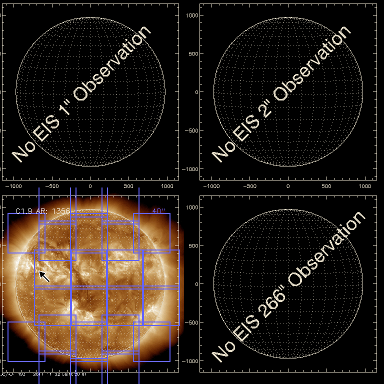 EIS Observation timeline overlay to GOES-Xray curve Code 1" 2" 40" 266" EIS Observations list for this event: STUDY ACRONYM ID DATE OBSERVED DESCRIPTION NOAA# TARGET 0 full_sun_slot_scan_1 | 25007 | 2011/11/22 10:40:20 | HOP130 Full sun slot | | Quiet Sun TIMELINE ID DATE OBSERVED FITS FILE XCEN (+W/-E) YCEN (+N/-S) DUR ----------------------------------------------------------------------------------------------------------------- 25007 | 2011/11/22 10:40:20.000 | eis_l0_20111122_104020.fits.gz | 920.72 | 185.50 | 5m27s 1 full_sun_slot_scan_1 | 25008 | 2011/11/22 10:45:53 | HOP130 Full sun slot | 1346 | Quiet Sun TIMELINE ID DATE OBSERVED FITS FILE XCEN (+W/-E) YCEN (+N/-S) DUR ----------------------------------------------------------------------------------------------------------------- 25008 | 2011/11/22 10:45:53.000 | eis_l0_20111122_104553.fits.gz | 920.72 | -286.50 | 5m26s 2 full_sun_slot_scan_1 | 25053 | 2011/11/22 10:59:14 | HOP130 Full sun slot | 1357 | Quiet Sun TIMELINE ID DATE OBSERVED FITS FILE XCEN (+W/-E) YCEN (+N/-S) DUR ----------------------------------------------------------------------------------------------------------------- 25053 | 2011/11/22 10:59:14.000 | eis_l0_20111122_105914.fits.gz | 452.75 | 185.50 | 5m27s 3 full_sun_slot_scan_1 | 25054 | 2011/11/22 11:04:46 | HOP130 Full sun slot | | Quiet Sun TIMELINE ID DATE OBSERVED FITS FILE XCEN (+W/-E) YCEN (+N/-S) DUR ----------------------------------------------------------------------------------------------------------------- 25054 | 2011/11/22 11:04:46.000 | eis_l0_20111122_110446.fits.gz | 452.75 | -286.50 | 5m27s 4 full_sun_slot_scan_1 | 25055 | 2011/11/22 11:15:15 | HOP130 Full sun slot | 1353 | Quiet Sun TIMELINE ID DATE OBSERVED FITS FILE XCEN (+W/-E) YCEN (+N/-S) DUR ----------------------------------------------------------------------------------------------------------------- 25055 | 2011/11/22 11:15:15.000 | eis_l0_20111122_111515.fits.gz | -15.21 | 185.50 | 5m27s 5 full_sun_slot_scan_1 | 25056 | 2011/11/22 11:20:47 | HOP130 Full sun slot | 1352 | Quiet Sun TIMELINE ID DATE OBSERVED FITS FILE XCEN (+W/-E) YCEN (+N/-S) DUR ----------------------------------------------------------------------------------------------------------------- 25056 | 2011/11/22 11:20:47.000 | eis_l0_20111122_112047.fits.gz | -15.21 | -286.58 | 5m26s 6 full_sun_slot_scan_1 | 25057 | 2011/11/22 11:31:14 | HOP130 Full sun slot | 1353 | Quiet Sun TIMELINE ID DATE OBSERVED FITS FILE XCEN (+W/-E) YCEN (+N/-S) DUR ----------------------------------------------------------------------------------------------------------------- 25057 | 2011/11/22 11:31:14.000 | eis_l0_20111122_113114.fits.gz | -483.26 | 185.50 | 5m27s 7 full_sun_slot_scan_1 | 25058 | 2011/11/22 11:36:46 | HOP130 Full sun slot | 1354 | Quiet Sun TIMELINE ID DATE OBSERVED FITS FILE XCEN (+W/-E) YCEN (+N/-S) DUR ----------------------------------------------------------------------------------------------------------------- 25058 | 2011/11/22 11:36:46.000 | eis_l0_20111122_113646.fits.gz | -483.18 | -286.58 | 5m27s 8 full_sun_slot_scan_1 | 25059 | 2011/11/22 11:47:14 | HOP130 Full sun slot | | Quiet Sun TIMELINE ID DATE OBSERVED FITS FILE XCEN (+W/-E) YCEN (+N/-S) DUR ----------------------------------------------------------------------------------------------------------------- 25059 | 2011/11/22 11:47:14.000 | eis_l0_20111122_114714.fits.gz | -9884.69 | -9777.20 | 5m27s 9 full_sun_slot_scan_1 | 25060 | 2011/11/22 11:52:46 | HOP130 Full sun slot | | Quiet Sun TIMELINE ID DATE OBSERVED FITS FILE XCEN (+W/-E) YCEN (+N/-S) DUR ----------------------------------------------------------------------------------------------------------------- 25060 | 2011/11/22 11:52:46.000 | eis_l0_20111122_115246.fits.gz | -9884.69 | -10249.20 | 5m27s 10 full_sun_slot_scan_1 | 25061 | 2011/11/22 12:03:14 | HOP130 Full sun slot | | Quiet Sun TIMELINE ID DATE OBSERVED FITS FILE XCEN (+W/-E) YCEN (+N/-S) DUR ----------------------------------------------------------------------------------------------------------------- 25061 | 2011/11/22 12:03:14.000 | eis_l0_20111122_120314.fits.gz | 799.90 | 655.71 | 5m27s 11 full_sun_slot_scan_1 | 25062 | 2011/11/22 12:13:14 | HOP130 Full sun slot | | Quiet Sun TIMELINE ID DATE OBSERVED FITS FILE XCEN (+W/-E) YCEN (+N/-S) DUR ----------------------------------------------------------------------------------------------------------------- 25062 | 2011/11/22 12:13:14.000 | eis_l0_20111122_121314.fits.gz | 395.82 | 1032.67 | 5m27s 12 full_sun_slot_scan_1 | 25063 | 2011/11/22 12:18:46 | HOP130 Full sun slot | | Quiet Sun TIMELINE ID DATE OBSERVED FITS FILE XCEN (+W/-E) YCEN (+N/-S) DUR ----------------------------------------------------------------------------------------------------------------- 25063 | 2011/11/22 12:18:46.000 | eis_l0_20111122_121846.fits.gz | 395.82 | 560.67 | 5m27s 13 full_sun_slot_scan_1 | 25064 | 2011/11/22 12:29:14 | HOP130 Full sun slot | | Quiet Sun TIMELINE ID DATE OBSERVED FITS FILE XCEN (+W/-E) YCEN (+N/-S) DUR ----------------------------------------------------------------------------------------------------------------- 25064 | 2011/11/22 12:29:14.000 | eis_l0_20111122_122914.fits.gz | -15.29 | 1126.45 | 5m27s 14 full_sun_slot_scan_1 | 25065 | 2011/11/22 12:34:46 | HOP130 Full sun slot | | Quiet Sun TIMELINE ID DATE OBSERVED FITS FILE XCEN (+W/-E) YCEN (+N/-S) DUR ----------------------------------------------------------------------------------------------------------------- 25065 | 2011/11/22 12:34:46.000 | eis_l0_20111122_123446.fits.gz | -15.29 | 654.61 | 5m27s 15 full_sun_slot_scan_1 | 25066 | 2011/11/22 12:45:14 | HOP130 Full sun slot | | Quiet Sun TIMELINE ID DATE OBSERVED FITS FILE XCEN (+W/-E) YCEN (+N/-S) DUR ----------------------------------------------------------------------------------------------------------------- 25066 | 2011/11/22 12:45:14.000 | eis_l0_20111122_124514.fits.gz | -426.15 | 1032.44 | 5m27s 16 