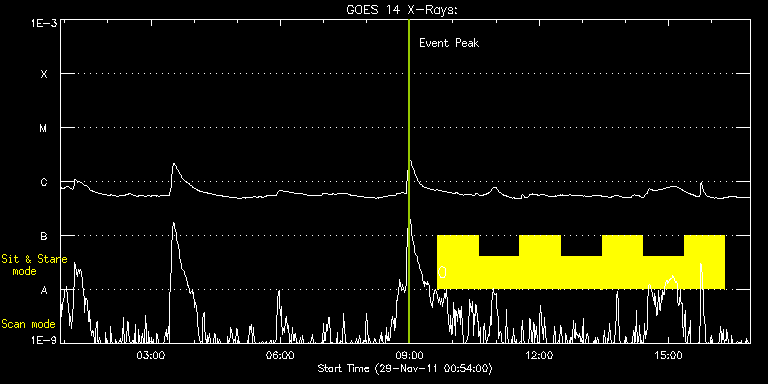 EIS Observation timeline overlay to GOES-Xray curve Code 1" 2" 40" 266" EIS Observations list for this event: STUDY ACRONYM ID DATE OBSERVED DESCRIPTION NOAA# TARGET 0 Flare266_Hunter01 | 25190 | 2011/11/29 09:38:34 | Trigger-enabled Flare hunter study | 1361 | Flare TIMELINE ID DATE OBSERVED FITS FILE XCEN (+W/-E) YCEN (+N/-S) DUR ----------------------------------------------------------------------------------------------------------------- 25190 | 2011/11/29 09:38:34.000 | eis_l0_20111129_093834.fits.gz | -391.81 | 280.30 | 56m22s 25190 | 2011/11/29 10:35:49.000 | eis_l0_20111129_103549.fits.gz | -383.70 | 280.53 | 56m22s 25190 | 2011/11/29 11:33:03.000 | eis_l0_20111129_113303.fits.gz | -375.51 | 280.37 | 56m22s 25190 | 2011/11/29 12:30:17.000 | eis_l0_20111129_123017.fits.gz | -367.40 | 280.45 | 56m23s 25190 | 2011/11/29 13:27:32.000 | eis_l0_20111129_132732.fits.gz | -359.13 | 280.53 | 56m22s 25190 | 2011/11/29 14:24:46.000 | eis_l0_20111129_142446.fits.gz | -351.02 | 280.60 | 56m23s 25190 | 2011/11/29 15:22:01.000 | eis_l0_20111129_152201.fits.gz | -342.68 | 280.68 | 56m22s : Check study information : Download file : View thumbnails For this event, also check for: