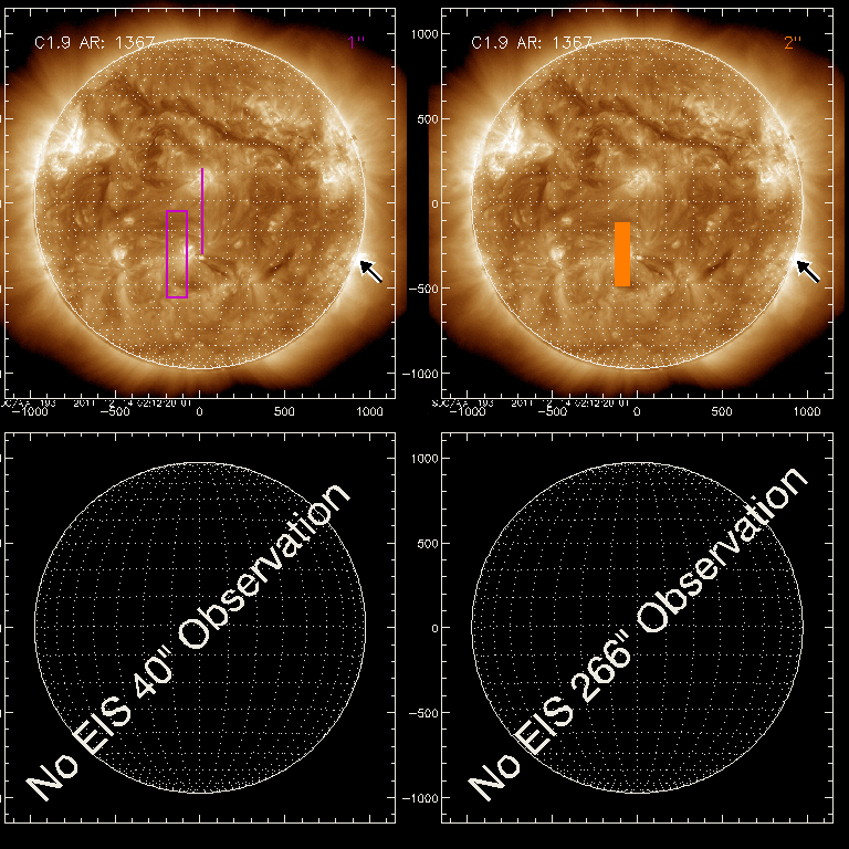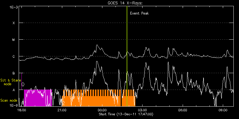 EIS Observation timeline overlay to GOES-Xray curve Code 1" 2" 40" 266" EIS Observations list for this event: STUDY ACRONYM ID DATE OBSERVED DESCRIPTION NOAA# TARGET 0 regcal077 | 25288 | 2011/12/13 17:59:12 | Flatfield, 2 exposures, led 80ms, full | | Engineering TIMELINE ID DATE OBSERVED FITS FILE XCEN (+W/-E) YCEN (+N/-S) DUR ----------------------------------------------------------------------------------------------------------------- 25288 | 2011/12/13 17:59:12.000 | eis_l0_20111213_175912.fits.gz | 14.74 | -50.27 | 4s 1 HPW021_VEL_240x512v1 | 25317 | 2011/12/13 18:11:10 | Active Region Studies | 1374 | Active Region TIMELINE ID DATE OBSERVED FITS FILE XCEN (+W/-E) YCEN (+N/-S) DUR ----------------------------------------------------------------------------------------------------------------- 25317 | 2011/12/13 18:11:10.000 | eis_l0_20111213_181110.fits.gz | -132.49 | -304.24 | 2h3m47s 2 IUU_SCAN_STEPS_002 | 25318 | 2011/12/13 21:00:56 | Active Region Studies | | Active Region TIMELINE ID DATE OBSERVED FITS FILE XCEN (+W/-E) YCEN (+N/-S) DUR ----------------------------------------------------------------------------------------------------------------- 25318 | 2011/12/13 21:00:56.000 | eis_l0_20111213_210056.fits.gz | -108.92 | -303.85 | 5m24s 25318 | 2011/12/13 21:06:23.000 | eis_l0_20111213_210623.fits.gz | -108.15 | -303.85 | 5m24s 25318 | 2011/12/13 21:11:50.000 | eis_l0_20111213_211150.fits.gz | -107.30 | -303.93 | 5m24s 25318 | 2011/12/13 21:17:17.000 | eis_l0_20111213_211717.fits.gz | -106.53 | -303.85 | 5m23s 25318 | 2011/12/13 21:22:44.000 | eis_l0_20111213_212244.fits.gz | -105.68 | -303.85 | 5m23s 25318 | 2011/12/13 21:28:11.000 | eis_l0_20111213_212811.fits.gz | -104.91 | -303.77 | 5m24s 25318 | 2011/12/13 21:33:38.000 | eis_l0_20111213_213338.fits.gz | -104.13 | -303.85 | 5m23s 25318 | 2011/12/13 21:39:05.000 | eis_l0_20111213_213905.fits.gz | -103.36 | -303.85 | 5m23s 25318 | 2011/12/13 21:44:31.000 | eis_l0_20111213_214431.fits.gz | -102.36 | -303.85 | 5m24s 25318 | 2011/12/13 21:49:58.000 | eis_l0_20111213_214958.fits.gz | -101.66 | -303.93 | 5m24s 25318 | 2011/12/13 21:55:25.000 | eis_l0_20111213_215525.fits.gz | -100.89 | -303.85 | 5m23s 25318 | 2011/12/13 22:00:52.000 | eis_l0_20111213_220052.fits.gz | -100.12 | -303.85 | 5m23s 25318 | 2011/12/13 22:06:19.000 | eis_l0_20111213_220619.fits.gz | -99.27 | -303.85 | 5m23s 25318 | 2011/12/13 22:11:45.000 | eis_l0_20111213_221145.fits.gz | -98.57 | -303.70 | 5m24s 25318 | 2011/12/13 22:17:12.000 | eis_l0_20111213_221712.fits.gz | -97.72 | -303.62 | 5m24s 25318 | 2011/12/13 22:22:39.000 | eis_l0_20111213_222239.fits.gz | -96.95 | -303.70 | 5m23s 25318 | 2011/12/13 22:28:06.000 | eis_l0_20111213_222806.fits.gz | -96.10 | -303.85 | 5m23s 25318 | 2011/12/13 22:33:33.000 | eis_l0_20111213_223333.fits.gz | -95.25 | -303.85 | 5m23s 25318 | 2011/12/13 22:38:59.000 | eis_l0_20111213_223859.fits.gz | -94.56 | -303.70 | 5m24s 25318 | 2011/12/13 22:44:26.000 | eis_l0_20111213_224426.fits.gz | -93.78 | -303.62 | 5m23s 25318 | 2011/12/13 22:49:53.000 | eis_l0_20111213_224953.fits.gz | -93.01 | -303.77 | 5m23s 25318 | 2011/12/13 22:55:20.000 | eis_l0_20111213_225520.fits.gz | -92.16 | -303.77 | 5m23s 25318 | 2011/12/13 23:00:46.000 | eis_l0_20111213_230046.fits.gz | -91.47 | -303.62 | 5m24s 25318 | 2011/12/13 23:06:13.000 | eis_l0_20111213_230613.fits.gz | -90.46 | -303.77 | 5m24s 25318 | 2011/12/13 23:11:40.000 | eis_l0_20111213_231140.fits.gz | -89.69 | -303.62 | 5m23s 25318 | 2011/12/13 23:17:07.000 | eis_l0_20111213_231707.fits.gz | -88.99 | -303.70 | 5m23s 25318 | 2011/12/13 23:22:33.000 | eis_l0_20111213_232233.fits.gz | -88.14 | -303.77 | 5m24s 25318 | 2011/12/13 23:28:00.000 | eis_l0_20111213_232800.fits.gz | -87.37 | -303.70 | 5m24s 25318 | 2011/12/13 23:33:27.000 | eis_l0_20111213_233327.fits.gz | -86.52 | -303.54 | 5m23s 25318 | 2011/12/13 23:38:54.000 | eis_l0_20111213_233854.fits.gz | -85.75 | -303.62 | 5m23s 25318 | 2011/12/13 23:44:21.000 | eis_l0_20111213_234421.fits.gz | -84.98 | -303.54 | 5m23s 25318 | 2011/12/13 23:49:47.000 | eis_l0_20111213_234947.fits.gz | -84.05 | -303.70 | 5m24s 25318 | 2011/12/13 23:55:14.000 | eis_l0_20111213_235514.fits.gz | -83.35 | -303.54 | 5m24s 25318 | 2011/12/14 00:00:41.000 | eis_l0_20111214_000041.fits.gz | -82.58 | -303.54 | 5m23s 25318 | 2011/12/14 00:06:08.000 | eis_l0_20111214_000608.fits.gz | -81.73 | -303.70 | 5m23s 25318 | 2011/12/14 00:11:34.000 | eis_l0_20111214_001134.fits.gz | -80.96 | -303.62 | 5m24s 25318 | 2011/12/14 00:17:01.000 | eis_l0_20111214_001701.fits.gz | -80.19 | -303.54 | 5m24s 25318 | 2011/12/14 00:22:28.000 | eis_l0_20111214_002228.fits.gz | -79.41 | -303.62 | 5m23s 25318 | 2011/12/14 00:27:55.000 | eis_l0_20111214_002755.fits.gz | -78.56 | -303.54 | 5m23s 25318 | 2011/12/14 00:33:22.000 | eis_l0_20111214_003322.fits.gz | -77.79 | -303.54 | 5m23s 25318 | 2011/12/14 00:38:48.000 | eis_l0_20111214_003848.fits.gz | -76.94 | -303.70 | 5m24s 25318 | 2011/12/14 00:44:15.000 | eis_l0_20111214_004415.fits.gz | -76.25 | -303.62 | 5m24s 25318 | 2011/12/14 00:49:42.000 | eis_l0_20111214_004942.fits.gz | -75.40 | -303.62 | 5m23s 25318 | 2011/12/14 00:55:09.000 | eis_l0_20111214_005509.fits.gz | -74.55 | -303.62 | 5m23s 25318 | 2011/12/14 01:00:35.000 | eis_l0_20111214_010035.fits.gz | -73.70 | -303.54 | 5m24s 25318 | 2011/12/14 01:06:02.000 | eis_l0_20111214_010602.fits.gz | -72.93 | -303.62 | 5m24s 25318 | 2011/12/14 01:11:29.000 | eis_l0_20111214_011129.fits.gz | -72.23 | -303.39 | 5m23s 25318 | 2011/12/14 01:16:56.000 | eis_l0_20111214_011656.fits.gz | -71.30 | -303.62 | 5m23s 25318 | 2011/12/14 01:27:49.000 | eis_l0_20111214_012749.fits.gz | -69.76 | -303.39 | 5m24s 25318 | 2011/12/14 01:33:16.000 | eis_l0_20111214_013316.fits.gz | -68.99 | -303.31 | 5m24s 25318 | 2011/12/14 01:38:43.000 | eis_l0_20111214_013843.fits.gz | -68.06 | -303.46 | 5m23s 25318 | 2011/12/14 01:44:10.000 | eis_l0_20111214_014410.fits.gz | -67.36 | -303.46 | 5m23s 25318 | 2011/12/14 01:49