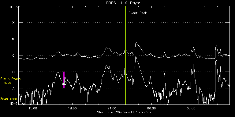 EIS Observation timeline overlay to GOES-Xray curve Code 1" 2" 40" 266" EIS Observations list for this event: STUDY ACRONYM ID DATE OBSERVED DESCRIPTION NOAA# TARGET 0 regcal074 | 25338 | 2011/12/20 17:20:12 | Dark exposures including overscan pixe | | Engineering TIMELINE ID DATE OBSERVED FITS FILE XCEN (+W/-E) YCEN (+N/-S) DUR ----------------------------------------------------------------------------------------------------------------- 25338 | 2011/12/20 17:20:12.000 | eis_l0_20111220_172012.fits.gz | -74.40 | -81.17 | 3m21s : Check study information : Download file : View thumbnails For this event, also check for: