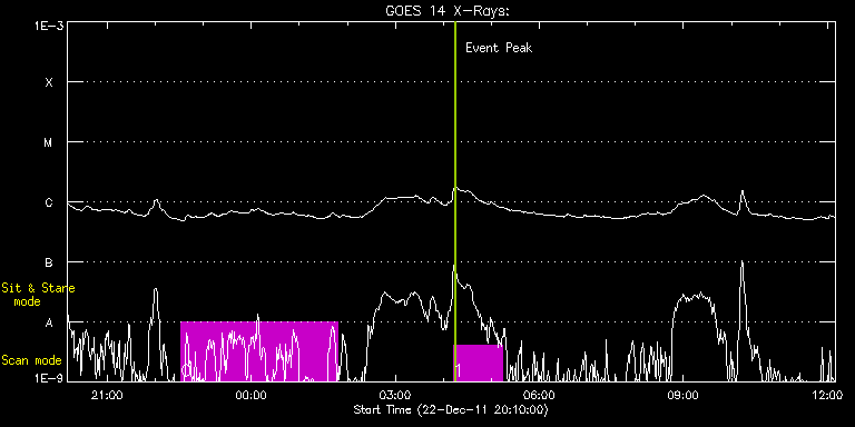 EIS Observation timeline overlay to GOES-Xray curve Code 1" 2" 40" 266" EIS Observations list for this event: STUDY ACRONYM ID DATE OBSERVED DESCRIPTION NOAA# TARGET 0 SYNOP006 | 25347 | 2011/12/22 22:32:27 | EIS sensitivity monitoring | | Quiet Sun TIMELINE ID DATE OBSERVED FITS FILE XCEN (+W/-E) YCEN (+N/-S) DUR ----------------------------------------------------------------------------------------------------------------- 25347 | 2011/12/22 22:32:27.000 | eis_l0_20111222_223227.fits.gz | -0.14 | -0.42 | 3h15m36s 1 HPW021_VEL_120x512v1 | 25348 | 2011/12/23 04:12:13 | Active Region map. AR 11384. | 1384 | Active Region TIMELINE ID DATE OBSERVED FITS FILE XCEN (+W/-E) YCEN (+N/-S) DUR ----------------------------------------------------------------------------------------------------------------- 25348 | 2011/12/23 04:12:13.000 | eis_l0_20111223_041213.fits.gz | -551.85 | 75.28 | 1h1m52s : Check study information : Download file : View thumbnails For this event, also check for:
