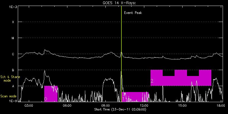 EIS Observation timeline overlay to GOES-Xray curve Code 1" 2" 40" 266" EIS Observations list for this event: STUDY ACRONYM ID DATE OBSERVED DESCRIPTION NOAA# TARGET 0 HPW021_VEL_120x512v1 | 25348 | 2011/12/23 04:12:13 | Active Region map. AR 11384. | 1384 | Active Region TIMELINE ID DATE OBSERVED FITS FILE XCEN (+W/-E) YCEN (+N/-S) DUR ----------------------------------------------------------------------------------------------------------------- 25348 | 2011/12/23 04:12:13.000 | eis_l0_20111223_041213.fits.gz | -551.85 | 75.28 | 1h1m52s 1 HPW021_VEL_240x512v1 | 25349 | 2011/12/23 10:16:13 | Active Region map. AR 11381 + 11382. | 1381 | Active Region TIMELINE ID DATE OBSERVED FITS FILE XCEN (+W/-E) YCEN (+N/-S) DUR ----------------------------------------------------------------------------------------------------------------- 25349 | 2011/12/23 10:16:13.000 | eis_l0_20111223_101613.fits.gz | 463.71 | -202.39 | 2h3m48s 2 HPW021_VEL_001x512v1 | 25350 | 2011/12/23 12:30:13 | Active Region flows. Sit-and-stare. AR | | Active Region TIMELINE ID DATE OBSERVED FITS FILE XCEN (+W/-E) YCEN (+N/-S) DUR ----------------------------------------------------------------------------------------------------------------- 25350 | 2011/12/23 12:30:13.000 | eis_l0_20111223_123013.fits.gz | 404.17 | -201.54 | 56m43s 25350 | 2011/12/23 13:27:03.000 | eis_l0_20111223_132703.fits.gz | 411.43 | -201.62 | 56m43s 25350 | 2011/12/23 14:23:53.000 | eis_l0_20111223_142353.fits.gz | 418.46 | -201.85 | 56m43s 25350 | 2011/12/23 15:20:43.000 | eis_l0_20111223_152043.fits.gz | 425.57 | -201.77 | 56m42s 25350 | 2011/12/23 16:17:32.000 | eis_l0_20111223_161732.fits.gz | 432.60 | -201.85 | 56m42s : Check study information : Download file : View thumbnails For this event, also check for: