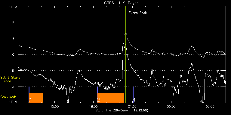 EIS Observation timeline overlay to GOES-Xray curve Code 1" 2" 40" 266" EIS Observations list for this event: STUDY ACRONYM ID DATE OBSERVED DESCRIPTION NOAA# TARGET 0 PRY_slot_context_v3 | 25368 | 2011/12/26 13:00:19 | EIS spectral atlas | 1381 | Active Region TIMELINE ID DATE OBSERVED FITS FILE XCEN (+W/-E) YCEN (+N/-S) DUR ----------------------------------------------------------------------------------------------------------------- 25368 | 2011/12/26 13:00:19.000 | eis_l0_20111226_130019.fits.gz | 859.69 | -298.83 | 2m56s 1 Atlas_60 | 25369 | 2011/12/26 13:03:40 | EIS spectral atlas | 1381 | Quiet Sun TIMELINE ID DATE OBSERVED FITS FILE XCEN (+W/-E) YCEN (+N/-S) DUR ----------------------------------------------------------------------------------------------------------------- 25369 | 2011/12/26 13:03:40.000 | eis_l0_20111226_130340.fits.gz | 874.59 | -298.75 | 1h1m40s 2 PRY_slot_context_v3 | 25352 | 2011/12/26 18:16:19 | EIS spectral atlas | | Active Region TIMELINE ID DATE OBSERVED FITS FILE XCEN (+W/-E) YCEN (+N/-S) DUR ----------------------------------------------------------------------------------------------------------------- 25352 | 2011/12/26 18:16:19.000 | eis_l0_20111226_181619.fits.gz | -22.94 | -251.48 | 2m56s 3 Atlas_120 | 25353 | 2011/12/26 18:19:40 | EIS spectral atlas | | Quiet Sun TIMELINE ID DATE OBSERVED FITS FILE XCEN (+W/-E) YCEN (+N/-S) DUR ----------------------------------------------------------------------------------------------------------------- 25353 | 2011/12/26 18:19:40.000 | eis_l0_20111226_181940.fits.gz | -7.73 | -251.40 | 2h1m39s 4 PRY_slot_context_v3 | 25370 | 2011/12/26 21:02:19 | EIS spectral atlas | 1381 | Active Region TIMELINE ID DATE OBSERVED FITS FILE XCEN (+W/-E) YCEN (+N/-S) DUR ----------------------------------------------------------------------------------------------------------------- 25370 | 2011/12/26 21:02:19.000 | eis_l0_20111226_210219.fits.gz | 879.78 | -300.45 | 2m56s : Check study information : Download file : View thumbnails For this event, also check for: