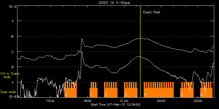 EIS Observation timeline overlay to GOES-Xray curve Code 1" 2" 40" 266" EIS Observations list for this event: STUDY ACRONYM ID DATE OBSERVED DESCRIPTION NOAA# TARGET 0 HH_Flare+AR_180x152 | 25985 | 2012/02/07 16:09:14 | Flare Observations | 1410 | Flare TIMELINE ID DATE OBSERVED FITS FILE XCEN (+W/-E) YCEN (+N/-S) DUR ----------------------------------------------------------------------------------------------------------------- 25985 | 2012/02/07 16:09:14.000 | eis_l0_20120207_160914.fits.gz | 902.12 | 347.31 | 5m17s 25985 | 2012/02/07 16:14:34.000 | eis_l0_20120207_161434.fits.gz | 902.04 | 347.31 | 5m17s 25985 | 2012/02/07 16:19:54.000 | eis_l0_20120207_161954.fits.gz | 902.12 | 347.39 | 5m18s 25985 | 2012/02/07 16:25:15.000 | eis_l0_20120207_162515.fits.gz | 902.12 | 347.39 | 5m18s 25985 | 2012/02/07 16:30:36.000 | eis_l0_20120207_163036.fits.gz | 902.12 | 347.39 | 5m17s 25985 | 2012/02/07 16:35:56.000 | eis_l0_20120207_163556.fits.gz | 902.12 | 347.39 | 5m18s 25985 | 2012/02/07 16:41:17.000 | eis_l0_20120207_164117.fits.gz | 902.04 | 347.39 | 5m17s 25985 | 2012/02/07 16:46:37.000 | eis_l0_20120207_164637.fits.gz | 902.04 | 347.39 | 5m18s 25985 | 2012/02/07 16:51:58.000 | eis_l0_20120207_165158.fits.gz | 902.04 | 347.39 | 5m18s 25985 | 2012/02/07 16:57:19.000 | eis_l0_20120207_165719.fits.gz | 902.04 | 347.31 | 5m18s 25985 | 2012/02/07 17:02:40.000 | eis_l0_20120207_170240.fits.gz | 902.04 | 347.39 | 5m19s 1 HH_Flare+AR_180x152 | 25986 | 2012/02/07 18:11:15 | Flare Observations | 1410 | Flare TIMELINE ID DATE OBSERVED FITS FILE XCEN (+W/-E) YCEN (+N/-S) DUR ----------------------------------------------------------------------------------------------------------------- 25986 | 2012/02/07 18:11:15.000 | eis_l0_20120207_181115.fits.gz | 902.12 | 347.47 | 5m18s 25986 | 2012/02/07 18:16:36.000 | eis_l0_20120207_181636.fits.gz | 902.04 | 347.47 | 5m18s 25986 | 2012/02/07 18:21:56.000 | eis_l0_20120207_182156.fits.gz | 902.12 | 347.39 | 5m19s 25986 | 2012/02/07 18:27:18.000 | eis_l0_20120207_182718.fits.gz | 902.12 | 347.39 | 5m17s 25986 | 2012/02/07 18:32:38.000 | eis_l0_20120207_183238.fits.gz | 902.12 | 347.23 | 5m18s 25986 | 2012/02/07 18:37:59.000 | eis_l0_20120207_183759.fits.gz | 902.04 | 347.39 | 5m18s 25986 | 2012/02/07 18:43:19.000 | eis_l0_20120207_184319.fits.gz | 902.04 | 347.39 | 5m18s 2 HH_Flare+AR_180x152 | 25987 | 2012/02/07 19:22:44 | Flare Observations | 1410 | Flare TIMELINE ID DATE OBSERVED FITS FILE XCEN (+W/-E) YCEN (+N/-S) DUR ----------------------------------------------------------------------------------------------------------------- 25987 | 2012/02/07 19:22:44.000 | eis_l0_20120207_192244.fits.gz | 902.12 | 347.31 | 5m17s 25987 | 2012/02/07 19:28:04.000 | eis_l0_20120207_192804.fits.gz | 902.04 | 347.39 | 5m18s 25987 | 2012/02/07 19:33:25.000 | eis_l0_20120207_193325.fits.gz | 902.12 | 347.31 | 5m18s 25987 | 2012/02/07 19:38:46.000 | eis_l0_20120207_193846.fits.gz | 901.97 | 347.39 | 5m17s 25987 | 2012/02/07 19:44:06.000 | eis_l0_20120207_194406.fits.gz | 902.04 | 347.47 | 5m19s 25987 | 2012/02/07 19:49:27.000 | eis_l0_20120207_194927.fits.gz | 902.12 | 347.39 | 5m18s 25987 | 2012/02/07 19:54:48.000 | eis_l0_20120207_195448.fits.gz | 902.12 | 347.31 | 5m18s 25987 | 2012/02/07 20:00:09.000 | eis_l0_20120207_200009.fits.gz | 902.12 | 347.31 | 5m18s 25987 | 2012/02/07 20:05:30.000 | eis_l0_20120207_200530.fits.gz | 902.04 | 347.39 | 5m18s 25987 | 2012/02/07 20:10:51.000 | eis_l0_20120207_201051.fits.gz | 902.12 | 347.31 | 5m17s 25987 | 2012/02/07 20:16:11.000 | eis_l0_20120207_201611.fits.gz | 902.12 | 347.31 | 5m18s 25987 | 2012/02/07 20:21:31.000 | eis_l0_20120207_202131.fits.gz | 902.04 | 347.39 | 5m18s 3 HH_Flare+AR_180x152 | 25988 | 2012/02/07 21:00:14 | Flare Observations | 1410 | Flare TIMELINE ID DATE OBSERVED FITS FILE XCEN (+W/-E) YCEN (+N/-S) DUR ----------------------------------------------------------------------------------------------------------------- 25988 | 2012/02/07 21:00:14.000 | eis_l0_20120207_210014.fits.gz | 932.00 | 347.39 | 5m18s 25988 | 2012/02/07 21:05:35.000 | eis_l0_20120207_210535.fits.gz | 932.00 | 347.31 | 5m18s 25988 | 2012/02/07 21:10:56.000 | eis_l0_20120207_211056.fits.gz | 932.00 | 347.39 | 5m17s 25988 | 2012/02/07 21:16:16.000 | eis_l0_20120207_211616.fits.gz | 932.00 | 347.31 | 5m19s 25988 | 2012/02/07 21:21:38.000 | eis_l0_20120207_212138.fits.gz | 932.00 | 347.47 | 5m17s 25988 | 2012/02/07 21:26:58.000 | eis_l0_20120207_212658.fits.gz | 932.07 | 347.39 | 5m18s 25988 | 2012/02/07 21:32:18.000 | eis_l0_20120207_213218.fits.gz | 932.07 | 347.31 | 5m18s 25988 | 2012/02/07 21:37:39.000 | eis_l0_20120207_213739.fits.gz | 932.00 | 347.31 | 5m18s 25988 | 2012/02/07 21:42:59.000 | eis_l0_20120207_214259.fits.gz | 932.00 | 347.47 | 5m18s 25988 | 2012/02/07 21:48:20.000 | eis_l0_20120207_214820.fits.gz | 932.07 | 347.31 | 5m18s 25988 | 2012/02/07 21:53:41.000 | eis_l0_20120207_215341.fits.gz | 932.07 | 347.31 | 5m18s 25988 | 2012/02/07 21:59:02.000 | eis_l0_20120207_215902.fits.gz | 932.00 | 347.47 | 5m18s 4 HH_Flare+AR_180x152 | 25989 | 2012/02/07 22:35:43 | Flare Observations | 1410 | Flare TIMELINE ID DATE OBSERVED FITS FILE XCEN (+W/-E) YCEN (+N/-S) DUR ----------------------------------------------------------------------------------------------------------------- 25989 | 2012/02/07 22:35:43.000 | eis_l0_20120207_223543.fits.gz | 932.00 | 347.31 | 5m18s 25989 | 2012/02/07 22:41:04.000 | eis_l0_20120207_224104.fits.gz | 932.00 | 347.39 | 5m17s 25989 | 2012/02/07 22:46:24.000 | eis_l0_20120207_224624.fits.gz | 932.00 | 347.39 | 5m17s 25989 | 2012/02/07 22:51:44.000 | eis_l0_20120207_225144.fits.gz | 932.07 | 347.31 | 5m18s 25989 | 2012/02/07 22:57:05.000 | eis_l0_20120207_225705.fits.gz | 932.00 | 347.23 | 5m17s 25989 | 2012/02/07 23:02:25.000 | eis_l0_20120207_230225.fits.gz | 932.00 | 347.39 | 5m18s 25989 | 2012/02/07 23:07:46.000 | eis_l0_20120207_230746.fits.gz | 932.07 | 347.31 | 5m18s 25989 | 2012/02/07 23:13:07.000 | e