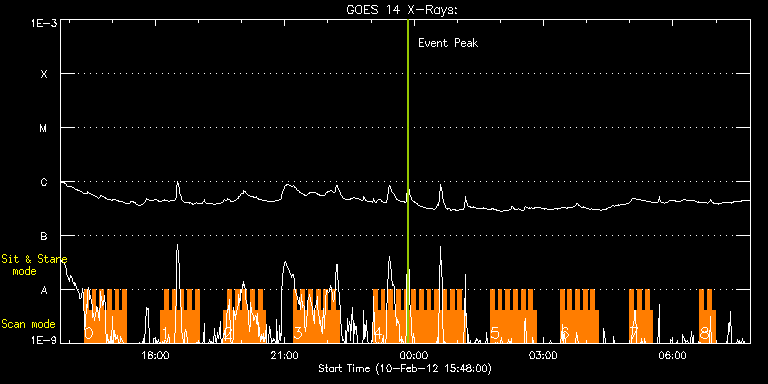 EIS Observation timeline overlay to GOES-Xray curve Code 1" 2" 40" 266" EIS Observations list for this event: STUDY ACRONYM ID DATE OBSERVED DESCRIPTION NOAA# TARGET 0 HH_Flare+AR_180x152 | 26008 | 2012/02/10 16:21:13 | Active Region Observation | 1417 | Flare TIMELINE ID DATE OBSERVED FITS FILE XCEN (+W/-E) YCEN (+N/-S) DUR ----------------------------------------------------------------------------------------------------------------- 26008 | 2012/02/10 16:21:13.000 | eis_l0_20120210_162113.fits.gz | -847.23 | 347.81 | 5m18s 26008 | 2012/02/10 16:26:34.000 | eis_l0_20120210_162634.fits.gz | -846.92 | 347.96 | 5m18s 26008 | 2012/02/10 16:31:55.000 | eis_l0_20120210_163155.fits.gz | -846.69 | 348.12 | 5m18s 26008 | 2012/02/10 16:37:16.000 | eis_l0_20120210_163716.fits.gz | -846.30 | 348.12 | 5m17s 26008 | 2012/02/10 16:42:36.000 | eis_l0_20120210_164236.fits.gz | -846.00 | 348.20 | 5m18s 26008 | 2012/02/10 16:47:57.000 | eis_l0_20120210_164757.fits.gz | -845.69 | 348.20 | 5m18s 26008 | 2012/02/10 16:53:18.000 | eis_l0_20120210_165318.fits.gz | -845.30 | 348.35 | 5m18s 26008 | 2012/02/10 16:58:38.000 | eis_l0_20120210_165838.fits.gz | -844.99 | 348.51 | 5m19s 26008 | 2012/02/10 17:04:00.000 | eis_l0_20120210_170400.fits.gz | -844.68 | 348.51 | 5m17s 26008 | 2012/02/10 17:09:20.000 | eis_l0_20120210_170920.fits.gz | -844.45 | 348.74 | 5m18s 26008 | 2012/02/10 17:14:41.000 | eis_l0_20120210_171441.fits.gz | -843.99 | 348.66 | 5m18s 1 HH_Flare+AR_180x152 | 26009 | 2012/02/10 18:07:44 | Active Region Observation | 1417 | Flare TIMELINE ID DATE OBSERVED FITS FILE XCEN (+W/-E) YCEN (+N/-S) DUR ----------------------------------------------------------------------------------------------------------------- 26009 | 2012/02/10 18:07:44.000 | eis_l0_20120210_180744.fits.gz | -840.82 | 349.51 | 5m18s 26009 | 2012/02/10 18:13:05.000 | eis_l0_20120210_181305.fits.gz | -840.51 | 349.66 | 5m18s 26009 | 2012/02/10 18:18:26.000 | eis_l0_20120210_181826.fits.gz | -840.20 | 349.74 | 5m19s 26009 | 2012/02/10 18:23:47.000 | eis_l0_20120210_182347.fits.gz | -839.89 | 349.89 | 5m18s 26009 | 2012/02/10 18:29:07.000 | eis_l0_20120210_182907.fits.gz | -839.59 | 349.89 | 5m18s 26009 | 2012/02/10 18:34:28.000 | eis_l0_20120210_183428.fits.gz | -839.20 | 349.97 | 5m18s 26009 | 2012/02/10 18:39:48.000 | eis_l0_20120210_183948.fits.gz | -838.81 | 349.89 | 5m18s 26009 | 2012/02/10 18:45:09.000 | eis_l0_20120210_184509.fits.gz | -838.58 | 350.13 | 5m18s 26009 | 2012/02/10 18:50:30.000 | eis_l0_20120210_185030.fits.gz | -838.19 | 350.20 | 5m18s 26009 | 2012/02/10 18:55:51.000 | eis_l0_20120210_185551.fits.gz | -837.89 | 350.28 | 5m17s 2 HH_Flare+AR_180x152 | 26010 | 2012/02/10 19:35:09 | Active Region Observation | 1417 | Flare TIMELINE ID DATE OBSERVED FITS FILE XCEN (+W/-E) YCEN (+N/-S) DUR ----------------------------------------------------------------------------------------------------------------- 26010 | 2012/02/10 19:35:09.000 | eis_l0_20120210_193509.fits.gz | -835.41 | 350.90 | 5m17s 26010 | 2012/02/10 19:40:29.000 | eis_l0_20120210_194029.fits.gz | -835.10 | 351.05 | 5m18s 26010 | 2012/02/10 19:45:50.000 | eis_l0_20120210_194550.fits.gz | -834.72 | 351.05 | 5m17s 26010 | 2012/02/10 19:51:10.000 | eis_l0_20120210_195110.fits.gz | -834.41 | 351.05 | 5m18s 26010 | 2012/02/10 19:56:31.000 | eis_l0_20120210_195631.fits.gz | -834.10 | 351.21 | 5m17s 26010 | 2012/02/10 20:01:51.000 | eis_l0_20120210_200151.fits.gz | -833.64 | 351.36 | 5m18s 26010 | 2012/02/10 20:07:12.000 | eis_l0_20120210_200712.fits.gz | -833.33 | 351.36 | 5m18s 26010 | 2012/02/10 20:12:33.000 | eis_l0_20120210_201233.fits.gz | -833.02 | 351.44 | 5m17s 26010 | 2012/02/10 20:17:53.000 | eis_l0_20120210_201753.fits.gz | -832.63 | 351.67 | 5m17s 26010 | 2012/02/10 20:23:13.000 | eis_l0_20120210_202313.fits.gz | -832.32 | 351.60 | 5m18s 26010 | 2012/02/10 20:28:34.000 | eis_l0_20120210_202834.fits.gz | -831.94 | 351.67 | 5m18s 3 HH_Flare+AR_180x152 | 26011 | 2012/02/10 21:11:43 | Active Region Observation | 1417 | Flare TIMELINE ID DATE OBSERVED FITS FILE XCEN (+W/-E) YCEN (+N/-S) DUR ----------------------------------------------------------------------------------------------------------------- 26011 | 2012/02/10 21:11:43.000 | eis_l0_20120210_211143.fits.gz | -829.16 | 352.44 | 5m17s 26011 | 2012/02/10 21:17:03.000 | eis_l0_20120210_211703.fits.gz | -828.85 | 352.52 | 5m17s 26011 | 2012/02/10 21:22:23.000 | eis_l0_20120210_212223.fits.gz | -828.46 | 352.60 | 5m18s 26011 | 2012/02/10 21:27:44.000 | eis_l0_20120210_212744.fits.gz | -828.15 | 352.68 | 5m18s 26011 | 2012/02/10 21:33:05.000 | eis_l0_20120210_213305.fits.gz | -827.69 | 352.68 | 5m17s 26011 | 2012/02/10 21:38:25.000 | eis_l0_20120210_213825.fits.gz | -827.46 | 352.91 | 5m18s 26011 | 2012/02/10 21:43:45.000 | eis_l0_20120210_214345.fits.gz | -826.99 | 352.91 | 5m19s 26011 | 2012/02/10 21:49:06.000 | eis_l0_20120210_214906.fits.gz | -826.68 | 352.98 | 5m18s 26011 | 2012/02/10 21:54:26.000 | eis_l0_20120210_215426.fits.gz | -826.38 | 353.06 | 5m19s 26011 | 2012/02/10 21:59:48.000 | eis_l0_20120210_215948.fits.gz | -825.91 | 353.06 | 5m17s 26011 | 2012/02/10 22:05:08.000 | eis_l0_20120210_220508.fits.gz | -825.60 | 353.22 | 5m18s 26011 | 2012/02/10 22:10:29.000 | eis_l0_20120210_221029.fits.gz | -825.29 | 353.29 | 5m18s 4 HH_Flare+AR_180x152 | 26012 | 2012/02/10 23:03:14 | Active Region Observation | 1417 | Flare TIMELINE ID DATE OBSERVED FITS FILE XCEN (+W/-E) YCEN (+N/-S) DUR ----------------------------------------------------------------------------------------------------------------- 26012 | 2012/02/10 23:03:14.000 | eis_l0_20120210_230314.fits.gz | -821.74 | 354.14 | 5m19s 26012 | 2012/02/10 23:08:35.000 | eis_l0_20120210_230835.fits.gz | -821.35 | 354.22 | 5m19s 26012 | 2012/02/10 23:13:57.000 | eis_l0_20120210_231357.fits.gz | -821.04 | 354.30 | 5m17s 26012 | 2012/02/10 23:19:17.000 | eis_l0_20120210_231917.fits.gz | -820.66 | 354.38 | 5m18s 26012 | 2012/02/10 23:24:38.000 | eis_l0_20