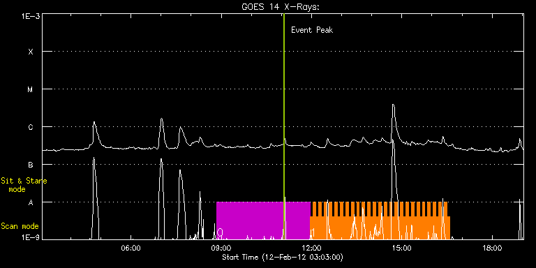 EIS Observation timeline overlay to GOES-Xray curve Code 1" 2" 40" 266" EIS Observations list for this event: STUDY ACRONYM ID DATE OBSERVED DESCRIPTION NOAA# TARGET 0 HPW021_VEL_360x512v1 | 26024 | 2012/02/12 08:51:19 | Detail scan of AR at the limb | 1417 | Active Region TIMELINE ID DATE OBSERVED FITS FILE XCEN (+W/-E) YCEN (+N/-S) DUR ----------------------------------------------------------------------------------------------------------------- 26024 | 2012/02/12 08:51:19.000 | eis_l0_20120212_085119.fits.gz | -629.50 | 364.49 | 3h5m42s 1 IUU_SCAN_STEPS_002 | 26025 | 2012/02/12 11:57:20 | Fast scans of AR core at limb | | Active Region TIMELINE ID DATE OBSERVED FITS FILE XCEN (+W/-E) YCEN (+N/-S) DUR ----------------------------------------------------------------------------------------------------------------- 26025 | 2012/02/12 11:57:20.000 | eis_l0_20120212_115720.fits.gz | -610.11 | 366.66 | 5m23s 26025 | 2012/02/12 12:02:47.000 | eis_l0_20120212_120247.fits.gz | -609.49 | 366.73 | 5m23s 26025 | 2012/02/12 12:08:13.000 | eis_l0_20120212_120813.fits.gz | -608.87 | 366.81 | 5m24s 26025 | 2012/02/12 12:13:40.000 | eis_l0_20120212_121340.fits.gz | -608.25 | 366.89 | 5m24s 26025 | 2012/02/12 12:19:07.000 | eis_l0_20120212_121907.fits.gz | -607.63 | 367.04 | 5m23s 26025 | 2012/02/12 12:24:33.000 | eis_l0_20120212_122433.fits.gz | -607.02 | 367.04 | 5m24s 26025 | 2012/02/12 12:30:00.000 | eis_l0_20120212_123000.fits.gz | -606.40 | 367.04 | 5m24s 26025 | 2012/02/12 12:35:27.000 | eis_l0_20120212_123527.fits.gz | -605.78 | 367.12 | 5m23s 26025 | 2012/02/12 12:40:54.000 | eis_l0_20120212_124054.fits.gz | -605.16 | 367.12 | 5m23s 26025 | 2012/02/12 12:46:20.000 | eis_l0_20120212_124620.fits.gz | -604.62 | 367.20 | 5m24s 26025 | 2012/02/12 12:51:47.000 | eis_l0_20120212_125147.fits.gz | -604.00 | 367.28 | 5m24s 26025 | 2012/02/12 12:57:14.000 | eis_l0_20120212_125714.fits.gz | -603.31 | 367.35 | 5m24s 26025 | 2012/02/12 13:02:41.000 | eis_l0_20120212_130241.fits.gz | -602.77 | 367.43 | 5m23s 26025 | 2012/02/12 13:08:08.000 | eis_l0_20120212_130808.fits.gz | -602.07 | 367.43 | 5m23s 26025 | 2012/02/12 13:13:34.000 | eis_l0_20120212_131334.fits.gz | -601.45 | 367.58 | 5m24s 26025 | 2012/02/12 13:19:01.000 | eis_l0_20120212_131901.fits.gz | -600.84 | 367.51 | 5m24s 26025 | 2012/02/12 13:24:28.000 | eis_l0_20120212_132428.fits.gz | -600.22 | 367.58 | 5m23s 26025 | 2012/02/12 13:29:55.000 | eis_l0_20120212_132955.fits.gz | -599.68 | 367.74 | 5m23s 26025 | 2012/02/12 13:35:21.000 | eis_l0_20120212_133521.fits.gz | -598.98 | 367.82 | 5m24s 26025 | 2012/02/12 13:40:48.000 | eis_l0_20120212_134048.fits.gz | -598.36 | 367.82 | 5m24s 26025 | 2012/02/12 13:46:15.000 | eis_l0_20120212_134615.fits.gz | -597.82 | 368.05 | 5m23s 26025 | 2012/02/12 13:51:42.000 | eis_l0_20120212_135142.fits.gz | -597.21 | 368.05 | 5m23s 26025 | 2012/02/12 13:57:09.000 | eis_l0_20120212_135709.fits.gz | -596.51 | 368.13 | 5m23s 26025 | 2012/02/12 14:02:35.000 | eis_l0_20120212_140235.fits.gz | -595.89 | 368.20 | 5m24s 26025 | 2012/02/12 14:08:02.000 | eis_l0_20120212_140802.fits.gz | -595.35 | 368.20 | 5m24s 26025 | 2012/02/12 14:13:29.000 | eis_l0_20120212_141329.fits.gz | -594.66 | 368.20 | 5m23s 26025 | 2012/02/12 14:18:56.000 | eis_l0_20120212_141856.fits.gz | -594.04 | 368.28 | 5m23s 26025 | 2012/02/12 14:24:22.000 | eis_l0_20120212_142422.fits.gz | -593.42 | 368.43 | 5m24s 26025 | 2012/02/12 14:29:49.000 | eis_l0_20120212_142949.fits.gz | -592.80 | 368.51 | 5m24s 26025 | 2012/02/12 14:35:16.000 | eis_l0_20120212_143516.fits.gz | -592.18 | 368.51 | 5m23s 26025 | 2012/02/12 14:40:43.000 | eis_l0_20120212_144043.fits.gz | -591.57 | 368.59 | 5m23s 26025 | 2012/02/12 14:46:10.000 | eis_l0_20120212_144610.fits.gz | -590.87 | 368.67 | 5m23s 26025 | 2012/02/12 14:51:36.000 | eis_l0_20120212_145136.fits.gz | -590.33 | 368.74 | 5m24s 26025 | 2012/02/12 14:57:03.000 | eis_l0_20120212_145703.fits.gz | -589.64 | 368.67 | 5m23s 26025 | 2012/02/12 15:02:30.000 | eis_l0_20120212_150230.fits.gz | -589.02 | 368.82 | 5m23s 26025 | 2012/02/12 15:07:57.000 | eis_l0_20120212_150757.fits.gz | -588.48 | 368.90 | 5m23s 26025 | 2012/02/12 15:13:23.000 | eis_l0_20120212_151323.fits.gz | -587.78 | 368.98 | 5m24s 26025 | 2012/02/12 15:18:50.000 | eis_l0_20120212_151850.fits.gz | -587.24 | 369.05 | 5m24s 26025 | 2012/02/12 15:24:17.000 | eis_l0_20120212_152417.fits.gz | -586.54 | 369.13 | 5m23s 26025 | 2012/02/12 15:29:44.000 | eis_l0_20120212_152944.fits.gz | -585.93 | 369.13 | 5m23s 26025 | 2012/02/12 15:35:11.000 | eis_l0_20120212_153511.fits.gz | -585.31 | 369.28 | 5m23s 26025 | 2012/02/12 15:40:37.000 | eis_l0_20120212_154037.fits.gz | -584.61 | 369.28 | 5m24s 26025 | 2012/02/12 15:46:04.000 | eis_l0_20120212_154604.fits.gz | -584.00 | 369.36 | 5m23s 26025 | 2012/02/12 15:51:31.000 | eis_l0_20120212_155131.fits.gz | -583.38 | 369.44 | 5m23s 26025 | 2012/02/12 15:56:58.000 | eis_l0_20120212_155658.fits.gz | -582.68 | 369.52 | 5m23s 26025 | 2012/02/12 16:02:24.000 | eis_l0_20120212_160224.fits.gz | -582.14 | 369.52 | 5m24s 26025 | 2012/02/12 16:07:51.000 | eis_l0_20120212_160751.fits.gz | -581.52 | 369.59 | 5m23s 26025 | 2012/02/12 16:13:18.000 | eis_l0_20120212_161318.fits.gz | -580.83 | 369.59 | 5m23s 26025 | 2012/02/12 16:18:45.000 | eis_l0_20120212_161845.fits.gz | -580.13 | 369.67 | 5m23s 26025 | 2012/02/12 16:24:12.000 | eis_l0_20120212_162412.fits.gz | -579.59 | 369.75 | 5m23s 26025 | 2012/02/12 16:29:38.000 | eis_l0_20120212_162938.fits.gz | -578.97 | 369.75 | 5m24s : Check study information : Download file : View thumbnails For this event, also check for: