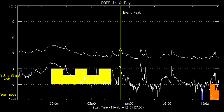 EIS Observation timeline overlay to GOES-Xray curve Code 1" 2" 40" 266" EIS Observations list for this event: STUDY ACRONYM ID DATE OBSERVED DESCRIPTION NOAA# TARGET 0 Flare266_Hunter01 | 27094 | 2012/05/11 23:45:13 | Flare Hunting with the 266" Slot | 1476 | Flare TIMELINE ID DATE OBSERVED FITS FILE XCEN (+W/-E) YCEN (+N/-S) DUR ----------------------------------------------------------------------------------------------------------------- 27094 | 2012/05/11 23:45:13.000 | eis_l0_20120511_234513.fits.gz | -34.85 | 175.62 | 56m21s 27094 | 2012/05/12 00:42:27.000 | eis_l0_20120512_004227.fits.gz | -26.12 | 175.62 | 56m22s 27094 | 2012/05/12 01:39:41.000 | eis_l0_20120512_013941.fits.gz | -17.47 | 175.47 | 56m22s 27094 | 2012/05/12 02:36:56.000 | eis_l0_20120512_023656.fits.gz | -8.81 | 175.39 | 56m22s 27094 | 2012/05/12 03:34:10.000 | eis_l0_20120512_033410.fits.gz | -0.09 | 175.16 | 56m23s 1 PRY_slot_context_v3 | 27181 | 2012/05/12 11:44:55 | slot raster obs. | 1476 | Active Region TIMELINE ID DATE OBSERVED FITS FILE XCEN (+W/-E) YCEN (+N/-S) DUR ----------------------------------------------------------------------------------------------------------------- 27181 | 2012/05/12 11:44:55.000 | eis_l0_20120512_114455.fits.gz | 194.90 | 181.80 | 2m56s 27181 | 2012/05/12 11:47:55.000 | eis_l0_20120512_114755.fits.gz | 195.29 | 181.80 | 2m57s 2 cam_artb_cds_a_lite | 27180 | 2012/05/12 12:27:19 | AR TB obs. | 1476 | Active Region TIMELINE ID DATE OBSERVED FITS FILE XCEN (+W/-E) YCEN (+N/-S) DUR ----------------------------------------------------------------------------------------------------------------- 27180 | 2012/05/12 12:27:19.000 | eis_l0_20120512_122719.fits.gz | 216.07 | 181.73 | 19m25s 27180 | 2012/05/12 12:46:50.000 | eis_l0_20120512_124650.fits.gz | 219.01 | 181.65 | 19m25s : Check study information : Download file : View thumbnails For this event, also check for: