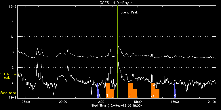 EIS Observation timeline overlay to GOES-Xray curve Code 1" 2" 40" 266" EIS Observations list for this event: STUDY ACRONYM ID DATE OBSERVED DESCRIPTION NOAA# TARGET 0 PRY_slot_context_v3 | 27181 | 2012/05/12 11:44:55 | slot raster obs. | 1476 | Active Region TIMELINE ID DATE OBSERVED FITS FILE XCEN (+W/-E) YCEN (+N/-S) DUR ----------------------------------------------------------------------------------------------------------------- 27181 | 2012/05/12 11:44:55.000 | eis_l0_20120512_114455.fits.gz | 194.90 | 181.80 | 2m56s 27181 | 2012/05/12 11:47:55.000 | eis_l0_20120512_114755.fits.gz | 195.29 | 181.80 | 2m57s 1 cam_artb_cds_a_lite | 27180 | 2012/05/12 12:27:19 | AR TB obs. | 1476 | Active Region TIMELINE ID DATE OBSERVED FITS FILE XCEN (+W/-E) YCEN (+N/-S) DUR ----------------------------------------------------------------------------------------------------------------- 27180 | 2012/05/12 12:27:19.000 | eis_l0_20120512_122719.fits.gz | 216.07 | 181.73 | 19m25s 27180 | 2012/05/12 12:46:50.000 | eis_l0_20120512_124650.fits.gz | 219.01 | 181.65 | 19m25s 2 cam_artb_cds_a_lite | 27107 | 2012/05/12 14:16:27 | AR TB obs. | 1476 | Active Region TIMELINE ID DATE OBSERVED FITS FILE XCEN (+W/-E) YCEN (+N/-S) DUR ----------------------------------------------------------------------------------------------------------------- 27107 | 2012/05/12 14:16:27.000 | eis_l0_20120512_141627.fits.gz | 232.21 | 181.34 | 19m25s 27107 | 2012/05/12 14:35:57.000 | eis_l0_20120512_143557.fits.gz | 235.07 | 181.19 | 19m25s 3 cam_artb_cds_a_lite | 27108 | 2012/05/12 16:05:55 | AR TB obs | 1476 | Active Region TIMELINE ID DATE OBSERVED FITS FILE XCEN (+W/-E) YCEN (+N/-S) DUR ----------------------------------------------------------------------------------------------------------------- 27108 | 2012/05/12 16:05:55.000 | eis_l0_20120512_160555.fits.gz | 248.28 | 180.96 | 19m25s 27108 | 2012/05/12 16:25:25.000 | eis_l0_20120512_162525.fits.gz | 251.14 | 180.88 | 19m26s 4 PRY_slot_context_v3 | 27194 | 2012/05/12 17:56:20 | | 1476 | Active Region TIMELINE ID DATE OBSERVED FITS FILE XCEN (+W/-E) YCEN (+N/-S) DUR ----------------------------------------------------------------------------------------------------------------- 27194 | 2012/05/12 17:56:20.000 | eis_l0_20120512_175620.fits.gz | -15.21 | -0.58 | 2m57s 27194 | 2012/05/12 17:59:21.000 | eis_l0_20120512_175921.fits.gz | -15.29 | -0.58 | 2m56s : Check study information : Download file : View thumbnails For this event, also check for: