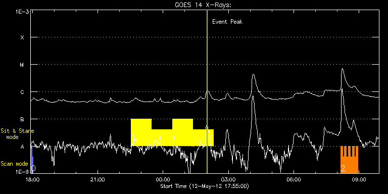EIS Observation timeline overlay to GOES-Xray curve Code 1" 2" 40" 266" EIS Observations list for this event: STUDY ACRONYM ID DATE OBSERVED DESCRIPTION NOAA# TARGET 0 PRY_slot_context_v3 | 27194 | 2012/05/12 17:56:20 | | 1476 | Active Region TIMELINE ID DATE OBSERVED FITS FILE XCEN (+W/-E) YCEN (+N/-S) DUR ----------------------------------------------------------------------------------------------------------------- 27194 | 2012/05/12 17:56:20.000 | eis_l0_20120512_175620.fits.gz | -15.21 | -0.58 | 2m57s 27194 | 2012/05/12 17:59:21.000 | eis_l0_20120512_175921.fits.gz | -15.29 | -0.58 | 2m56s 1 FLARE266_TEST2 | 27138 | 2012/05/12 22:31:46 | XRT FT obs. | 1476 | Active Region TIMELINE ID DATE OBSERVED FITS FILE XCEN (+W/-E) YCEN (+N/-S) DUR ----------------------------------------------------------------------------------------------------------------- 27138 | 2012/05/12 22:31:46.000 | eis_l0_20120512_223146.fits.gz | 172.18 | 129.56 | 56m 27138 | 2012/05/12 23:28:38.000 | eis_l0_20120512_232838.fits.gz | 180.37 | 129.41 | 56m 27138 | 2012/05/13 00:25:30.000 | eis_l0_20120513_002530.fits.gz | 188.55 | 129.18 | 56m 27138 | 2012/05/13 01:22:21.000 | eis_l0_20120513_012221.fits.gz | 196.59 | 128.95 | 56m 2 HH_Flare+AR_180x152 | 27164 | 2012/05/13 08:08:51 | Flare obs. | | Flare TIMELINE ID DATE OBSERVED FITS FILE XCEN (+W/-E) YCEN (+N/-S) DUR ----------------------------------------------------------------------------------------------------------------- 27164 | 2012/05/13 08:08:51.000 | eis_l0_20120513_080851.fits.gz | 384.02 | 177.32 | 5m17s 27164 | 2012/05/13 08:14:11.000 | eis_l0_20120513_081411.fits.gz | 384.79 | 177.32 | 5m18s 27164 | 2012/05/13 08:19:32.000 | eis_l0_20120513_081932.fits.gz | 385.56 | 177.17 | 5m18s 27164 | 2012/05/13 08:24:53.000 | eis_l0_20120513_082453.fits.gz | 386.26 | 177.17 | 5m18s 27164 | 2012/05/13 08:30:14.000 | eis_l0_20120513_083014.fits.gz | 387.03 | 177.17 | 5m17s 27164 | 2012/05/13 08:35:34.000 | eis_l0_20120513_083534.fits.gz | 387.80 | 177.01 | 5m17s 27164 | 2012/05/13 08:40:54.000 | eis_l0_20120513_084054.fits.gz | 388.42 | 177.09 | 5m18s 27164 | 2012/05/13 08:46:14.000 | eis_l0_20120513_084614.fits.gz | 389.12 | 177.01 | 5m18s 27164 | 2012/05/13 08:51:35.000 | eis_l0_20120513_085135.fits.gz | 389.89 | 177.01 | 5m18s : Check study information : Download file : View thumbnails For this event, also check for: