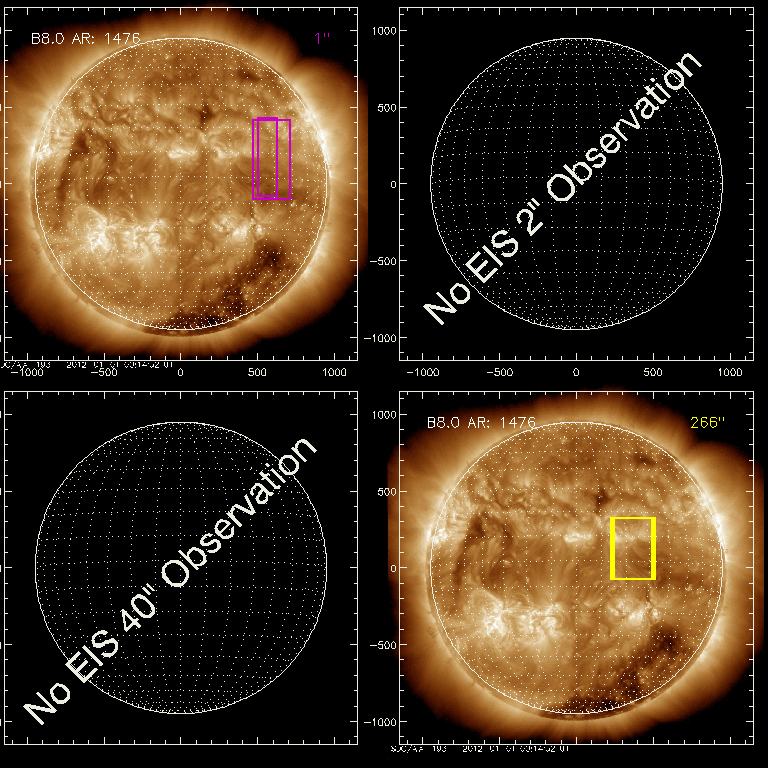 EIS Observation timeline overlay to GOES-Xray curve Code 1" 2" 40" 266" EIS Observations list for this event: STUDY ACRONYM ID DATE OBSERVED DESCRIPTION NOAA# TARGET 0 FLARE266_TEST2 | 27189 | 2012/05/13 21:31:43 | XRT FT obs. | 1476 | Active Region TIMELINE ID DATE OBSERVED FITS FILE XCEN (+W/-E) YCEN (+N/-S) DUR ----------------------------------------------------------------------------------------------------------------- 27189 | 2012/05/13 21:31:43.000 | eis_l0_20120513_213143.fits.gz | 361.51 | 123.46 | 56m1s 27189 | 2012/05/13 22:28:35.000 | eis_l0_20120513_222835.fits.gz | 368.85 | 123.15 | 56m 27189 | 2012/05/13 23:25:27.000 | eis_l0_20120513_232527.fits.gz | 376.11 | 122.84 | 56m 27189 | 2012/05/14 00:22:19.000 | eis_l0_20120514_002219.fits.gz | 383.37 | 122.54 | 56m 1 HPW021_VEL_240x512v1 | 27197 | 2012/05/14 07:09:51 | AR obs. | 1476 | Active Region TIMELINE ID DATE OBSERVED FITS FILE XCEN (+W/-E) YCEN (+N/-S) DUR ----------------------------------------------------------------------------------------------------------------- 27197 | 2012/05/14 07:09:51.000 | eis_l0_20120514_070951.fits.gz | 566.22 | 170.37 | 2h3m48s 2 HPW022_VEL_480x512v1 | 27153 | 2012/05/14 10:26:51 | AR raster scan obs. | 1476 | Active Region TIMELINE ID DATE OBSERVED FITS FILE XCEN (+W/-E) YCEN (+N/-S) DUR ----------------------------------------------------------------------------------------------------------------- 27153 | 2012/05/14 10:26:51.000 | eis_l0_20120514_102651.fits.gz | 591.96 | 155.39 | 1h7m38s : Check study information : Download file : View thumbnails For this event, also check for: