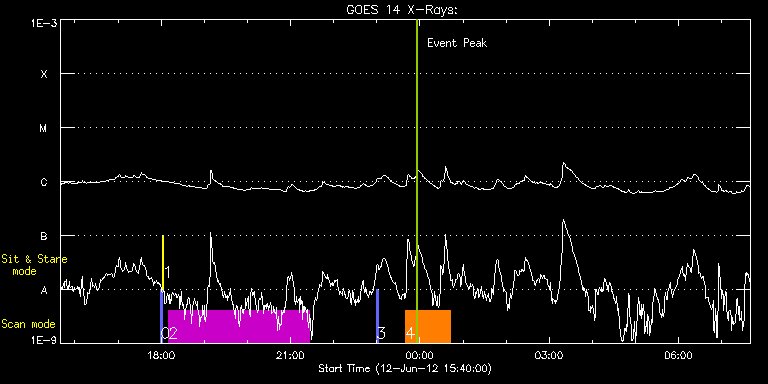 EIS Observation timeline overlay to GOES-Xray curve Code 1" 2" 40" 266" EIS Observations list for this event: STUDY ACRONYM ID DATE OBSERVED DESCRIPTION NOAA# TARGET 0 PRY_slot_contextLITE | 27672 | 2012/06/12 17:59:21 | Change of EIS pointing and alignment w | | Active Region TIMELINE ID DATE OBSERVED FITS FILE XCEN (+W/-E) YCEN (+N/-S) DUR ----------------------------------------------------------------------------------------------------------------- 27672 | 2012/06/12 17:59:21.000 | eis_l0_20120612_175921.fits.gz | -15.21 | -0.65 | 2m56s 1 Alignment_266 | 27673 | 2012/06/12 18:02:35 | Change of EIS pointing and alignment w | | Quiet Sun TIMELINE ID DATE OBSERVED FITS FILE XCEN (+W/-E) YCEN (+N/-S) DUR ----------------------------------------------------------------------------------------------------------------- 27673 | 2012/06/12 18:02:35.000 | eis_l0_20120612_180235.fits.gz | -132.49 | -0.50 | 1m22s 2 SYNOP006 | 27674 | 2012/06/12 18:10:34 | SYNOP006 | | Quiet Sun TIMELINE ID DATE OBSERVED FITS FILE XCEN (+W/-E) YCEN (+N/-S) DUR ----------------------------------------------------------------------------------------------------------------- 27674 | 2012/06/12 18:10:34.000 | eis_l0_20120612_181034.fits.gz | 0.01 | -0.42 | 3h15m34s 3 PRY_slot_context_v3 | 27679 | 2012/06/12 22:59:34 | EIS Atlas Synoptic Programme | 1499 | Active Region TIMELINE ID DATE OBSERVED FITS FILE XCEN (+W/-E) YCEN (+N/-S) DUR ----------------------------------------------------------------------------------------------------------------- 27679 | 2012/06/12 22:59:34.000 | eis_l0_20120612_225934.fits.gz | 872.83 | 210.46 | 2m56s 4 Atlas_60 | 27675 | 2012/06/12 23:40:34 | EIS Spectral Atlas Synoptic Programme | 1499 | Quiet Sun TIMELINE ID DATE OBSERVED FITS FILE XCEN (+W/-E) YCEN (+N/-S) DUR ----------------------------------------------------------------------------------------------------------------- 27675 | 2012/06/12 23:40:34.000 | eis_l0_20120612_234034.fits.gz | 887.41 | 210.62 | 1h1m39s : Check study information : Download file : View thumbnails For this event, also check for: