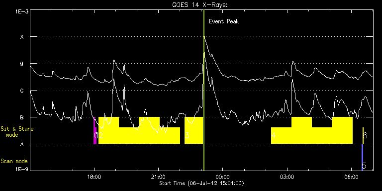 EIS Observation timeline overlay to GOES-Xray curve Code 1" 2" 40" 266" EIS Observations list for this event: STUDY ACRONYM ID DATE OBSERVED DESCRIPTION NOAA# TARGET 0 regcal071 | 28082 | 2012/07/06 17:59:11 | Dark exposures, CCD bottom rows (100s | | Engineering TIMELINE ID DATE OBSERVED FITS FILE XCEN (+W/-E) YCEN (+N/-S) DUR ----------------------------------------------------------------------------------------------------------------- 28082 | 2012/07/06 17:59:11.000 | eis_l0_20120706_175911.fits.gz | 648.79 | -672.27 | 3m22s 1 regcal072 | 28083 | 2012/07/06 18:03:00 | Dark exposures, top CCD rows (100s exp | | Engineering TIMELINE ID DATE OBSERVED FITS FILE XCEN (+W/-E) YCEN (+N/-S) DUR ----------------------------------------------------------------------------------------------------------------- 28083 | 2012/07/06 18:03:00.000 | eis_l0_20120706_180300.fits.gz | 14.43 | 205.58 | 3m22s 2 FLARE266_TEST2 | 28080 | 2012/07/06 18:12:33 | EIS-XRT flare response study | 1515 | Active Region TIMELINE ID DATE OBSERVED FITS FILE XCEN (+W/-E) YCEN (+N/-S) DUR ----------------------------------------------------------------------------------------------------------------- 28080 | 2012/07/06 18:12:33.000 | eis_l0_20120706_181233.fits.gz | 503.11 | -417.19 | 56m 28080 | 2012/07/06 19:09:24.000 | eis_l0_20120706_190924.fits.gz | 508.59 | -416.96 | 56m1s 28080 | 2012/07/06 20:06:17.000 | eis_l0_20120706_200617.fits.gz | 514.00 | -416.58 | 55m59s 28080 | 2012/07/06 21:03:08.000 | eis_l0_20120706_210308.fits.gz | 519.56 | -416.27 | 56m 3 FLARE266_TEST2 | 28085 | 2012/07/06 22:13:13 | EIS-XRT flare response study | 1515 | Active Region TIMELINE ID DATE OBSERVED FITS FILE XCEN (+W/-E) YCEN (+N/-S) DUR ----------------------------------------------------------------------------------------------------------------- 28085 | 2012/07/06 22:13:13.000 | eis_l0_20120706_221313.fits.gz | 526.12 | -415.96 | 50m18s 4 FLARE266_TEST2 | 28086 | 2012/07/07 02:15:33 | EIS-XRT flare response study | 1515 | Active Region TIMELINE ID DATE OBSERVED FITS FILE XCEN (+W/-E) YCEN (+N/-S) DUR ----------------------------------------------------------------------------------------------------------------- 28086 | 2012/07/07 02:15:33.000 | eis_l0_20120707_021533.fits.gz | 548.37 | -414.49 | 56m 28086 | 2012/07/07 03:12:25.000 | eis_l0_20120707_031225.fits.gz | 553.39 | -414.03 | 56m 28086 | 2012/07/07 04:09:17.000 | eis_l0_20120707_040917.fits.gz | 558.41 | -413.72 | 56m 28086 | 2012/07/07 05:06:09.000 | eis_l0_20120707_050609.fits.gz | 563.36 | -413.41 | 56m 5 PRY_slot_contextLITE | 28089 | 2012/07/07 06:28:26 | EIS alignment during XRT Synoptic | | Active Region TIMELINE ID DATE OBSERVED FITS FILE XCEN (+W/-E) YCEN (+N/-S) DUR ----------------------------------------------------------------------------------------------------------------- 28089 | 2012/07/07 06:28:26.000 | eis_l0_20120707_062826.fits.gz | -15.29 | -0.35 | 2m56s 6 Alignment_266 | 28090 | 2012/07/07 06:31:41 | EIS alignment during XRT Synoptic | | Quiet Sun TIMELINE ID DATE OBSERVED FITS FILE XCEN (+W/-E) YCEN (+N/-S) DUR ----------------------------------------------------------------------------------------------------------------- 28090 | 2012/07/07 06:31:41.000 | eis_l0_20120707_063141.fits.gz | -132.57 | -0.27 | 1m22s : Check study information : Download file : View thumbnails For this event, also check for: