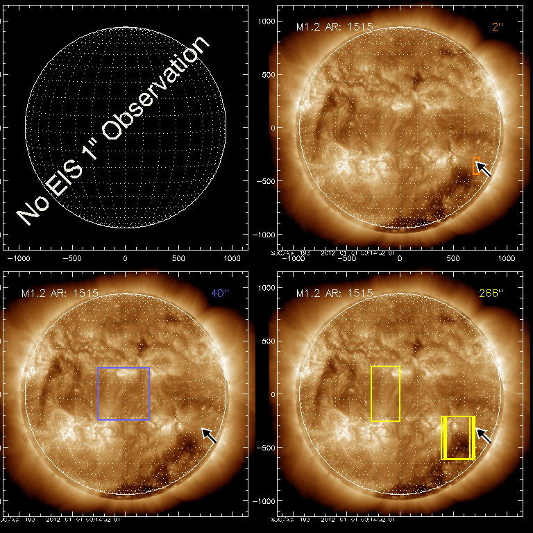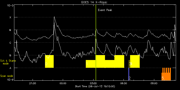 EIS Observation timeline overlay to GOES-Xray curve Code 1" 2" 40" 266" EIS Observations list for this event: STUDY ACRONYM ID DATE OBSERVED DESCRIPTION NOAA# TARGET 0 FLARE266_TEST2 | 28085 | 2012/07/06 22:13:13 | EIS-XRT flare response study | 1515 | Active Region TIMELINE ID DATE OBSERVED FITS FILE XCEN (+W/-E) YCEN (+N/-S) DUR ----------------------------------------------------------------------------------------------------------------- 28085 | 2012/07/06 22:13:13.000 | eis_l0_20120706_221313.fits.gz | 526.12 | -415.96 | 50m18s 1 FLARE266_TEST2 | 28086 | 2012/07/07 02:15:33 | EIS-XRT flare response study | 1515 | Active Region TIMELINE ID DATE OBSERVED FITS FILE XCEN (+W/-E) YCEN (+N/-S) DUR ----------------------------------------------------------------------------------------------------------------- 28086 | 2012/07/07 02:15:33.000 | eis_l0_20120707_021533.fits.gz | 548.37 | -414.49 | 56m 28086 | 2012/07/07 03:12:25.000 | eis_l0_20120707_031225.fits.gz | 553.39 | -414.03 | 56m 28086 | 2012/07/07 04:09:17.000 | eis_l0_20120707_040917.fits.gz | 558.41 | -413.72 | 56m 28086 | 2012/07/07 05:06:09.000 | eis_l0_20120707_050609.fits.gz | 563.36 | -413.41 | 56m 2 PRY_slot_contextLITE | 28089 | 2012/07/07 06:28:26 | EIS alignment during XRT Synoptic | | Active Region TIMELINE ID DATE OBSERVED FITS FILE XCEN (+W/-E) YCEN (+N/-S) DUR ----------------------------------------------------------------------------------------------------------------- 28089 | 2012/07/07 06:28:26.000 | eis_l0_20120707_062826.fits.gz | -15.29 | -0.35 | 2m56s 3 Alignment_266 | 28090 | 2012/07/07 06:31:41 | EIS alignment during XRT Synoptic | | Quiet Sun TIMELINE ID DATE OBSERVED FITS FILE XCEN (+W/-E) YCEN (+N/-S) DUR ----------------------------------------------------------------------------------------------------------------- 28090 | 2012/07/07 06:31:41.000 | eis_l0_20120707_063141.fits.gz | -132.57 | -0.27 | 1m22s 4 FLARE266_TEST2 | 28081 | 2012/07/07 06:38:12 | EIS-XRT flare response study | 1515 | Active Region TIMELINE ID DATE OBSERVED FITS FILE XCEN (+W/-E) YCEN (+N/-S) DUR ----------------------------------------------------------------------------------------------------------------- 28081 | 2012/07/07 06:38:12.000 | eis_l0_20120707_063812.fits.gz | 571.32 | -412.87 | 56m1s 5 HH_Flare+AR_180x152 | 28164 | 2012/07/07 09:45:20 | Flare Observation | 1515 | Flare TIMELINE ID DATE OBSERVED FITS FILE XCEN (+W/-E) YCEN (+N/-S) DUR ----------------------------------------------------------------------------------------------------------------- 28164 | 2012/07/07 09:45:20.000 | eis_l0_20120707_094520.fits.gz | 717.19 | -361.48 | 5m18s 28164 | 2012/07/07 09:50:41.000 | eis_l0_20120707_095041.fits.gz | 717.57 | -361.55 | 5m18s 28164 | 2012/07/07 09:56:02.000 | eis_l0_20120707_095602.fits.gz | 718.04 | -361.48 | 5m19s 28164 | 2012/07/07 10:01:23.000 | eis_l0_20120707_100123.fits.gz | 718.50 | -361.48 | 5m18s 28164 | 2012/07/07 10:06:44.000 | eis_l0_20120707_100644.fits.gz | 718.89 | -361.40 | 5m18s 28164 | 2012/07/07 10:12:05.000 | eis_l0_20120707_101205.fits.gz | 719.35 | -361.25 | 5m17s 28164 | 2012/07/07 10:17:25.000 | eis_l0_20120707_101725.fits.gz | 719.81 | -361.40 | 5m17s 28164 | 2012/07/07 10:22:45.000 | eis_l0_20120707_102245.fits.gz | 720.28 | -361.32 | 5m17s 28164 | 2012/07/07 10:28:05.000 | eis_l0_20120707_102805.fits.gz | 720.59 | -361.25 | 5m19s 28164 | 2012/07/07 10:33:26.000 | eis_l0_20120707_103326.fits.gz | 721.13 | -361.25 | 5m19s : Check study information : Download file : View thumbnails For this event, also check for: