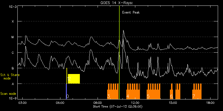 EIS Observation timeline overlay to GOES-Xray curve Code 1" 2" 40" 266" EIS Observations list for this event: STUDY ACRONYM ID DATE OBSERVED DESCRIPTION NOAA# TARGET 0 PRY_slot_contextLITE | 28089 | 2012/07/07 06:28:26 | EIS alignment during XRT Synoptic | | Active Region TIMELINE ID DATE OBSERVED FITS FILE XCEN (+W/-E) YCEN (+N/-S) DUR ----------------------------------------------------------------------------------------------------------------- 28089 | 2012/07/07 06:28:26.000 | eis_l0_20120707_062826.fits.gz | -15.29 | -0.35 | 2m56s 1 Alignment_266 | 28090 | 2012/07/07 06:31:41 | EIS alignment during XRT Synoptic | | Quiet Sun TIMELINE ID DATE OBSERVED FITS FILE XCEN (+W/-E) YCEN (+N/-S) DUR ----------------------------------------------------------------------------------------------------------------- 28090 | 2012/07/07 06:31:41.000 | eis_l0_20120707_063141.fits.gz | -132.57 | -0.27 | 1m22s 2 FLARE266_TEST2 | 28081 | 2012/07/07 06:38:12 | EIS-XRT flare response study | 1515 | Active Region TIMELINE ID DATE OBSERVED FITS FILE XCEN (+W/-E) YCEN (+N/-S) DUR ----------------------------------------------------------------------------------------------------------------- 28081 | 2012/07/07 06:38:12.000 | eis_l0_20120707_063812.fits.gz | 571.32 | -412.87 | 56m1s 3 HH_Flare+AR_180x152 | 28164 | 2012/07/07 09:45:20 | Flare Observation | 1515 | Flare TIMELINE ID DATE OBSERVED FITS FILE XCEN (+W/-E) YCEN (+N/-S) DUR ----------------------------------------------------------------------------------------------------------------- 28164 | 2012/07/07 09:45:20.000 | eis_l0_20120707_094520.fits.gz | 717.19 | -361.48 | 5m18s 28164 | 2012/07/07 09:50:41.000 | eis_l0_20120707_095041.fits.gz | 717.57 | -361.55 | 5m18s 28164 | 2012/07/07 09:56:02.000 | eis_l0_20120707_095602.fits.gz | 718.04 | -361.48 | 5m19s 28164 | 2012/07/07 10:01:23.000 | eis_l0_20120707_100123.fits.gz | 718.50 | -361.48 | 5m18s 28164 | 2012/07/07 10:06:44.000 | eis_l0_20120707_100644.fits.gz | 718.89 | -361.40 | 5m18s 28164 | 2012/07/07 10:12:05.000 | eis_l0_20120707_101205.fits.gz | 719.35 | -361.25 | 5m17s 28164 | 2012/07/07 10:17:25.000 | eis_l0_20120707_101725.fits.gz | 719.81 | -361.40 | 5m17s 28164 | 2012/07/07 10:22:45.000 | eis_l0_20120707_102245.fits.gz | 720.28 | -361.32 | 5m17s 28164 | 2012/07/07 10:28:05.000 | eis_l0_20120707_102805.fits.gz | 720.59 | -361.25 | 5m19s 28164 | 2012/07/07 10:33:26.000 | eis_l0_20120707_103326.fits.gz | 721.13 | -361.25 | 5m19s 4 HH_Flare+AR_180x152 | 28165 | 2012/07/07 11:17:11 | Flare Observation | 1515 | Flare TIMELINE ID DATE OBSERVED FITS FILE XCEN (+W/-E) YCEN (+N/-S) DUR ----------------------------------------------------------------------------------------------------------------- 28165 | 2012/07/07 11:17:11.000 | eis_l0_20120707_111711.fits.gz | 724.53 | -360.78 | 5m18s 28165 | 2012/07/07 11:22:32.000 | eis_l0_20120707_112232.fits.gz | 724.99 | -360.78 | 5m18s 28165 | 2012/07/07 11:27:53.000 | eis_l0_20120707_112753.fits.gz | 725.45 | -360.86 | 5m17s 28165 | 2012/07/07 11:33:13.000 | eis_l0_20120707_113313.fits.gz | 725.84 | -360.78 | 5m18s 28165 | 2012/07/07 11:38:33.000 | eis_l0_20120707_113833.fits.gz | 726.22 | -360.86 | 5m18s 28165 | 2012/07/07 11:43:54.000 | eis_l0_20120707_114354.fits.gz | 726.77 | -360.86 | 5m17s 28165 | 2012/07/07 11:49:14.000 | eis_l0_20120707_114914.fits.gz | 727.07 | -360.55 | 5m19s 28165 | 2012/07/07 11:54:36.000 | eis_l0_20120707_115436.fits.gz | 727.61 | -360.71 | 5m18s 28165 | 2012/07/07 11:59:57.000 | eis_l0_20120707_115957.fits.gz | 727.92 | -360.63 | 5m17s 28165 | 2012/07/07 12:05:17.000 | eis_l0_20120707_120517.fits.gz | 728.47 | -360.55 | 5m18s 28165 | 2012/07/07 12:10:37.000 | eis_l0_20120707_121037.fits.gz | 728.85 | -360.47 | 3m42s 28165 | 2012/07/07 12:14:10.000 | eis_l0_20120707_121410.fits.gz | 729.16 | -360.63 | 9s 28165 | 2012/07/07 12:16:51.000 | eis_l0_20120707_121651.fits.gz | 729.31 | -360.55 | 2m17s 28165 | 2012/07/07 12:20:03.000 | eis_l0_20120707_122003.fits.gz | 729.47 | -360.47 | 1m13s 5 HH_Flare+AR_180x152 | 28166 | 2012/07/07 12:55:14 | Flare Observation | 1515 | Flare TIMELINE ID DATE OBSERVED FITS FILE XCEN (+W/-E) YCEN (+N/-S) DUR ----------------------------------------------------------------------------------------------------------------- 28166 | 2012/07/07 12:55:14.000 | eis_l0_20120707_125514.fits.gz | 732.33 | -360.24 | 5m18s 28166 | 2012/07/07 13:00:35.000 | eis_l0_20120707_130035.fits.gz | 732.64 | -360.01 | 5m19s 28166 | 2012/07/07 13:05:57.000 | eis_l0_20120707_130557.fits.gz | 733.18 | -360.24 | 5m18s 28166 | 2012/07/07 13:11:17.000 | eis_l0_20120707_131117.fits.gz | 733.64 | -360.24 | 5m18s 28166 | 2012/07/07 13:16:38.000 | eis_l0_20120707_131638.fits.gz | 733.95 | -360.09 | 5m18s 28166 | 2012/07/07 13:21:59.000 | eis_l0_20120707_132159.fits.gz | 734.41 | -360.01 | 5m17s 28166 | 2012/07/07 13:27:19.000 | eis_l0_20120707_132719.fits.gz | 734.80 | -359.93 | 5m18s 28166 | 2012/07/07 13:32:39.000 | eis_l0_20120707_133239.fits.gz | 735.26 | -360.01 | 5m19s 28166 | 2012/07/07 13:38:01.000 | eis_l0_20120707_133801.fits.gz | 735.73 | -359.93 | 5m17s 28166 | 2012/07/07 13:43:21.000 | eis_l0_20120707_134321.fits.gz | 736.11 | -359.93 | 5m18s 28166 | 2012/07/07 13:48:42.000 | eis_l0_20120707_134842.fits.gz | 736.50 | -359.86 | 5m18s 28166 | 2012/07/07 13:54:03.000 | eis_l0_20120707_135403.fits.gz | 736.89 | -359.78 | 5m17s 6 HH_Flare+AR_180x152 | 28167 | 2012/07/07 14:46:41 | Flare Observation | 1515 | Flare TIMELINE ID DATE OBSERVED FITS FILE XCEN (+W/-E) YCEN (+N/-S) DUR ----------------------------------------------------------------------------------------------------------------- 28167 | 2012/07/07 14:46:41.000 | eis_l0_20120707_144641.fits.gz | 740.98 | -359.47 | 5m17s 28167 | 2012/07/07 14:52:01.000 | eis_l0_20120707_145201.fits.gz | 741.36 | -359.47 | 5m17s 28167 | 2012/07/07 14:57:21.000 | eis_l0_20120707_145721.fits.gz | 741.83 | -359.47 | 2m38s 28167 | 2012/07/07 15:12:38.000 | eis_l0_20120707_151238.fits.gz