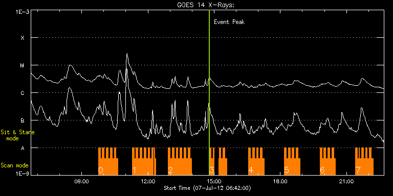 EIS Observation timeline overlay to GOES-Xray curve Code 1" 2" 40" 266" EIS Observations list for this event: STUDY ACRONYM ID DATE OBSERVED DESCRIPTION NOAA# TARGET 0 HH_Flare+AR_180x152 | 28164 | 2012/07/07 09:45:20 | Flare Observation | 1515 | Flare TIMELINE ID DATE OBSERVED FITS FILE XCEN (+W/-E) YCEN (+N/-S) DUR ----------------------------------------------------------------------------------------------------------------- 28164 | 2012/07/07 09:45:20.000 | eis_l0_20120707_094520.fits.gz | 717.19 | -361.48 | 5m18s 28164 | 2012/07/07 09:50:41.000 | eis_l0_20120707_095041.fits.gz | 717.57 | -361.55 | 5m18s 28164 | 2012/07/07 09:56:02.000 | eis_l0_20120707_095602.fits.gz | 718.04 | -361.48 | 5m19s 28164 | 2012/07/07 10:01:23.000 | eis_l0_20120707_100123.fits.gz | 718.50 | -361.48 | 5m18s 28164 | 2012/07/07 10:06:44.000 | eis_l0_20120707_100644.fits.gz | 718.89 | -361.40 | 5m18s 28164 | 2012/07/07 10:12:05.000 | eis_l0_20120707_101205.fits.gz | 719.35 | -361.25 | 5m17s 28164 | 2012/07/07 10:17:25.000 | eis_l0_20120707_101725.fits.gz | 719.81 | -361.40 | 5m17s 28164 | 2012/07/07 10:22:45.000 | eis_l0_20120707_102245.fits.gz | 720.28 | -361.32 | 5m17s 28164 | 2012/07/07 10:28:05.000 | eis_l0_20120707_102805.fits.gz | 720.59 | -361.25 | 5m19s 28164 | 2012/07/07 10:33:26.000 | eis_l0_20120707_103326.fits.gz | 721.13 | -361.25 | 5m19s 1 HH_Flare+AR_180x152 | 28165 | 2012/07/07 11:17:11 | Flare Observation | 1515 | Flare TIMELINE ID DATE OBSERVED FITS FILE XCEN (+W/-E) YCEN (+N/-S) DUR ----------------------------------------------------------------------------------------------------------------- 28165 | 2012/07/07 11:17:11.000 | eis_l0_20120707_111711.fits.gz | 724.53 | -360.78 | 5m18s 28165 | 2012/07/07 11:22:32.000 | eis_l0_20120707_112232.fits.gz | 724.99 | -360.78 | 5m18s 28165 | 2012/07/07 11:27:53.000 | eis_l0_20120707_112753.fits.gz | 725.45 | -360.86 | 5m17s 28165 | 2012/07/07 11:33:13.000 | eis_l0_20120707_113313.fits.gz | 725.84 | -360.78 | 5m18s 28165 | 2012/07/07 11:38:33.000 | eis_l0_20120707_113833.fits.gz | 726.22 | -360.86 | 5m18s 28165 | 2012/07/07 11:43:54.000 | eis_l0_20120707_114354.fits.gz | 726.77 | -360.86 | 5m17s 28165 | 2012/07/07 11:49:14.000 | eis_l0_20120707_114914.fits.gz | 727.07 | -360.55 | 5m19s 28165 | 2012/07/07 11:54:36.000 | eis_l0_20120707_115436.fits.gz | 727.61 | -360.71 | 5m18s 28165 | 2012/07/07 11:59:57.000 | eis_l0_20120707_115957.fits.gz | 727.92 | -360.63 | 5m17s 28165 | 2012/07/07 12:05:17.000 | eis_l0_20120707_120517.fits.gz | 728.47 | -360.55 | 5m18s 28165 | 2012/07/07 12:10:37.000 | eis_l0_20120707_121037.fits.gz | 728.85 | -360.47 | 3m42s 28165 | 2012/07/07 12:14:10.000 | eis_l0_20120707_121410.fits.gz | 729.16 | -360.63 | 9s 28165 | 2012/07/07 12:16:51.000 | eis_l0_20120707_121651.fits.gz | 729.31 | -360.55 | 2m17s 28165 | 2012/07/07 12:20:03.000 | eis_l0_20120707_122003.fits.gz | 729.47 | -360.47 | 1m13s 2 HH_Flare+AR_180x152 | 28166 | 2012/07/07 12:55:14 | Flare Observation | 1515 | Flare TIMELINE ID DATE OBSERVED FITS FILE XCEN (+W/-E) YCEN (+N/-S) DUR ----------------------------------------------------------------------------------------------------------------- 28166 | 2012/07/07 12:55:14.000 | eis_l0_20120707_125514.fits.gz | 732.33 | -360.24 | 5m18s 28166 | 2012/07/07 13:00:35.000 | eis_l0_20120707_130035.fits.gz | 732.64 | -360.01 | 5m19s 28166 | 2012/07/07 13:05:57.000 | eis_l0_20120707_130557.fits.gz | 733.18 | -360.24 | 5m18s 28166 | 2012/07/07 13:11:17.000 | eis_l0_20120707_131117.fits.gz | 733.64 | -360.24 | 5m18s 28166 | 2012/07/07 13:16:38.000 | eis_l0_20120707_131638.fits.gz | 733.95 | -360.09 | 5m18s 28166 | 2012/07/07 13:21:59.000 | eis_l0_20120707_132159.fits.gz | 734.41 | -360.01 | 5m17s 28166 | 2012/07/07 13:27:19.000 | eis_l0_20120707_132719.fits.gz | 734.80 | -359.93 | 5m18s 28166 | 2012/07/07 13:32:39.000 | eis_l0_20120707_133239.fits.gz | 735.26 | -360.01 | 5m19s 28166 | 2012/07/07 13:38:01.000 | eis_l0_20120707_133801.fits.gz | 735.73 | -359.93 | 5m17s 28166 | 2012/07/07 13:43:21.000 | eis_l0_20120707_134321.fits.gz | 736.11 | -359.93 | 5m18s 28166 | 2012/07/07 13:48:42.000 | eis_l0_20120707_134842.fits.gz | 736.50 | -359.86 | 5m18s 28166 | 2012/07/07 13:54:03.000 | eis_l0_20120707_135403.fits.gz | 736.89 | -359.78 | 5m17s 3 HH_Flare+AR_180x152 | 28167 | 2012/07/07 14:46:41 | Flare Observation | 1515 | Flare TIMELINE ID DATE OBSERVED FITS FILE XCEN (+W/-E) YCEN (+N/-S) DUR ----------------------------------------------------------------------------------------------------------------- 28167 | 2012/07/07 14:46:41.000 | eis_l0_20120707_144641.fits.gz | 740.98 | -359.47 | 5m17s 28167 | 2012/07/07 14:52:01.000 | eis_l0_20120707_145201.fits.gz | 741.36 | -359.47 | 5m17s 28167 | 2012/07/07 14:57:21.000 | eis_l0_20120707_145721.fits.gz | 741.83 | -359.47 | 2m38s 28167 | 2012/07/07 15:12:38.000 | eis_l0_20120707_151238.fits.gz | 742.91 | -359.24 | 41s 28167 | 2012/07/07 15:13:22.000 | eis_l0_20120707_151322.fits.gz | 742.99 | -359.39 | 5m18s 28167 | 2012/07/07 15:18:43.000 | eis_l0_20120707_151843.fits.gz | 743.37 | -359.16 | 5m18s 28167 | 2012/07/07 15:24:04.000 | eis_l0_20120707_152404.fits.gz | 743.76 | -359.16 | 5m18s 28167 | 2012/07/07 15:29:25.000 | eis_l0_20120707_152925.fits.gz | 744.15 | -359.24 | 5m18s 4 HH_Flare+AR_180x152 | 28168 | 2012/07/07 16:33:44 | Flare Observation | 1515 | Flare TIMELINE ID DATE OBSERVED FITS FILE XCEN (+W/-E) YCEN (+N/-S) DUR ----------------------------------------------------------------------------------------------------------------- 28168 | 2012/07/07 16:33:44.000 | eis_l0_20120707_163344.fits.gz | 748.93 | -358.77 | 5m18s 28168 | 2012/07/07 16:39:05.000 | eis_l0_20120707_163905.fits.gz | 749.32 | -358.77 | 5m18s 28168 | 2012/07/07 16:44:26.000 | eis_l0_20120707_164426.fits.gz | 749.78 | -358.62 | 5m17s 28168 | 2012/07/07 16:49:46.000 | eis_l0_20120707_164946.fits.gz | 750.17 | -358.77 | 5m17s 28168 | 2012/07/07 16:55:06.000 | eis_l0_20120707_165506.fits.gz | 750.56 | -358.70 | 5m