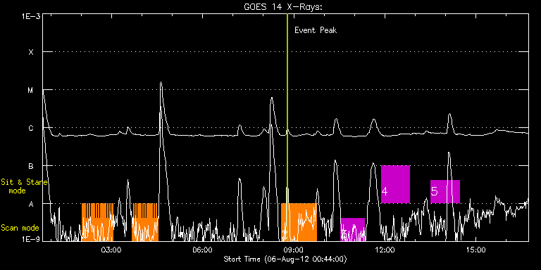 EIS Observation timeline overlay to GOES-Xray curve Code 1" 2" 40" 266" EIS Observations list for this event: STUDY ACRONYM ID DATE OBSERVED DESCRIPTION NOAA# TARGET 0 Cam_flare_diag | 28782 | 2012/08/06 02:02:14 | High cadence sparse raster for flares | | Flare TIMELINE ID DATE OBSERVED FITS FILE XCEN (+W/-E) YCEN (+N/-S) DUR ----------------------------------------------------------------------------------------------------------------- 28782 | 2012/08/06 02:02:14.000 | eis_l0_20120806_020214.fits.gz | 743.15 | -412.00 | 2m11s 28782 | 2012/08/06 02:04:28.000 | eis_l0_20120806_020428.fits.gz | 743.39 | -412.00 | 2m12s 28782 | 2012/08/06 02:06:43.000 | eis_l0_20120806_020643.fits.gz | 743.46 | -411.92 | 2m12s 28782 | 2012/08/06 02:08:58.000 | eis_l0_20120806_020858.fits.gz | 743.69 | -412.00 | 2m12s 28782 | 2012/08/06 02:11:13.000 | eis_l0_20120806_021113.fits.gz | 743.93 | -411.84 | 2m11s 28782 | 2012/08/06 02:13:27.000 | eis_l0_20120806_021327.fits.gz | 744.08 | -412.00 | 2m12s 28782 | 2012/08/06 02:15:41.000 | eis_l0_20120806_021541.fits.gz | 744.08 | -411.84 | 2m13s 28782 | 2012/08/06 02:17:57.000 | eis_l0_20120806_021757.fits.gz | 744.39 | -411.77 | 2m11s 28782 | 2012/08/06 02:20:11.000 | eis_l0_20120806_022011.fits.gz | 744.54 | -411.84 | 2m12s 28782 | 2012/08/06 02:22:25.000 | eis_l0_20120806_022225.fits.gz | 744.62 | -411.84 | 2m12s 28782 | 2012/08/06 02:24:40.000 | eis_l0_20120806_022440.fits.gz | 744.85 | -411.84 | 2m12s 28782 | 2012/08/06 02:26:54.000 | eis_l0_20120806_022654.fits.gz | 745.01 | -411.77 | 2m12s 28782 | 2012/08/06 02:29:08.000 | eis_l0_20120806_022908.fits.gz | 745.24 | -411.77 | 2m12s 28782 | 2012/08/06 02:31:23.000 | eis_l0_20120806_023123.fits.gz | 745.24 | -411.77 | 2m12s 28782 | 2012/08/06 02:33:37.000 | eis_l0_20120806_023337.fits.gz | 745.47 | -411.69 | 2m12s 28782 | 2012/08/06 02:35:52.000 | eis_l0_20120806_023552.fits.gz | 745.70 | -411.69 | 2m12s 28782 | 2012/08/06 02:38:06.000 | eis_l0_20120806_023806.fits.gz | 745.86 | -411.77 | 2m12s 28782 | 2012/08/06 02:40:21.000 | eis_l0_20120806_024021.fits.gz | 745.93 | -411.61 | 2m12s 28782 | 2012/08/06 02:42:35.000 | eis_l0_20120806_024235.fits.gz | 746.09 | -411.54 | 2m12s 28782 | 2012/08/06 02:44:50.000 | eis_l0_20120806_024450.fits.gz | 746.32 | -411.69 | 2m12s 28782 | 2012/08/06 02:47:04.000 | eis_l0_20120806_024704.fits.gz | 746.40 | -411.38 | 2m12s 28782 | 2012/08/06 02:49:19.000 | eis_l0_20120806_024919.fits.gz | 746.55 | -411.46 | 2m12s 28782 | 2012/08/06 02:51:34.000 | eis_l0_20120806_025134.fits.gz | 746.78 | -411.46 | 2m12s 28782 | 2012/08/06 02:53:48.000 | eis_l0_20120806_025348.fits.gz | 746.86 | -411.38 | 2m13s 28782 | 2012/08/06 02:56:03.000 | eis_l0_20120806_025603.fits.gz | 747.09 | -411.30 | 2m12s 28782 | 2012/08/06 02:58:18.000 | eis_l0_20120806_025818.fits.gz | 747.25 | -411.30 | 2m12s 28782 | 2012/08/06 03:00:32.000 | eis_l0_20120806_030032.fits.gz | 747.40 | -411.30 | 2m12s 1 Cam_flare_diag | 28783 | 2012/08/06 03:40:43 | High cadence sparse raster for flares | | Flare TIMELINE ID DATE OBSERVED FITS FILE XCEN (+W/-E) YCEN (+N/-S) DUR ----------------------------------------------------------------------------------------------------------------- 28783 | 2012/08/06 03:40:43.000 | eis_l0_20120806_034043.fits.gz | 750.11 | -410.61 | 2m11s 28783 | 2012/08/06 03:42:57.000 | eis_l0_20120806_034257.fits.gz | 750.41 | -410.84 | 2m12s 28783 | 2012/08/06 03:45:12.000 | eis_l0_20120806_034512.fits.gz | 750.49 | -410.84 | 2m11s 28783 | 2012/08/06 03:47:26.000 | eis_l0_20120806_034726.fits.gz | 750.72 | -410.68 | 2m12s 28783 | 2012/08/06 03:49:40.000 | eis_l0_20120806_034940.fits.gz | 750.88 | -410.61 | 2m12s 28783 | 2012/08/06 03:51:55.000 | eis_l0_20120806_035155.fits.gz | 750.96 | -410.68 | 2m12s 28783 | 2012/08/06 03:54:10.000 | eis_l0_20120806_035410.fits.gz | 751.11 | -410.53 | 2m12s 28783 | 2012/08/06 03:56:25.000 | eis_l0_20120806_035625.fits.gz | 751.42 | -410.61 | 2m11s 28783 | 2012/08/06 03:58:39.000 | eis_l0_20120806_035839.fits.gz | 751.57 | -410.68 | 2m12s 28783 | 2012/08/06 04:00:54.000 | eis_l0_20120806_040054.fits.gz | 751.65 | -410.61 | 2m11s 28783 | 2012/08/06 04:03:08.000 | eis_l0_20120806_040308.fits.gz | 751.73 | -410.45 | 2m12s 28783 | 2012/08/06 04:05:22.000 | eis_l0_20120806_040522.fits.gz | 752.04 | -410.53 | 2m12s 28783 | 2012/08/06 04:07:37.000 | eis_l0_20120806_040737.fits.gz | 752.11 | -410.53 | 2m12s 28783 | 2012/08/06 04:09:52.000 | eis_l0_20120806_040952.fits.gz | 752.35 | -410.45 | 2m11s 28783 | 2012/08/06 04:12:06.000 | eis_l0_20120806_041206.fits.gz | 752.50 | -410.45 | 2m12s 28783 | 2012/08/06 04:14:21.000 | eis_l0_20120806_041421.fits.gz | 752.58 | -410.53 | 2m12s 28783 | 2012/08/06 04:16:36.000 | eis_l0_20120806_041636.fits.gz | 752.73 | -410.45 | 2m11s 28783 | 2012/08/06 04:18:50.000 | eis_l0_20120806_041850.fits.gz | 752.96 | -410.38 | 2m12s 28783 | 2012/08/06 04:21:05.000 | eis_l0_20120806_042105.fits.gz | 753.04 | -410.30 | 2m12s 28783 | 2012/08/06 04:23:20.000 | eis_l0_20120806_042320.fits.gz | 753.20 | -410.30 | 2m11s 28783 | 2012/08/06 04:25:34.000 | eis_l0_20120806_042534.fits.gz | 753.35 | -410.22 | 2m12s 28783 | 2012/08/06 04:27:49.000 | eis_l0_20120806_042749.fits.gz | 753.51 | -410.22 | 2m5s 28783 | 2012/08/06 04:30:03.000 | eis_l0_20120806_043003.fits.gz | 753.66 | -410.14 | 2m12s 2 GDZ_300x384_S2S3_40 | 28762 | 2012/08/06 08:35:42 | Long term evolution of Active Regions | | Active Region TIMELINE ID DATE OBSERVED FITS FILE XCEN (+W/-E) YCEN (+N/-S) DUR ----------------------------------------------------------------------------------------------------------------- 28762 | 2012/08/06 08:35:42.000 | eis_l0_20120806_083542.fits.gz | -9920.12 | -9963.20 | 1h10m8s 3 HPW021_VEL_120x512v2 | 28774 | 2012/08/06 10:32:26 | AR scan. | 1532 | Active Region TIMELINE ID DATE OBSERVED FITS FILE XCEN (+W/-E) YCEN (+N/-S) DUR ----------------------------------------------------------------------------------------------------------------- 28774 | 2012/08/06 10:32:26