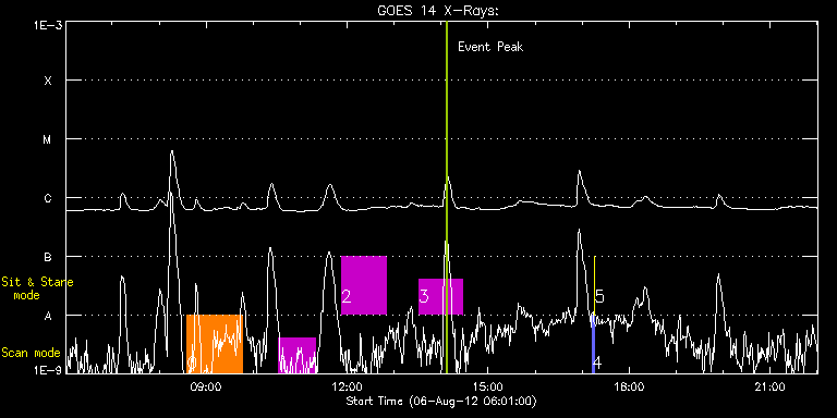 EIS Observation timeline overlay to GOES-Xray curve Code 1" 2" 40" 266" EIS Observations list for this event: STUDY ACRONYM ID DATE OBSERVED DESCRIPTION NOAA# TARGET 0 GDZ_300x384_S2S3_40 | 28762 | 2012/08/06 08:35:42 | Long term evolution of Active Regions | | Active Region TIMELINE ID DATE OBSERVED FITS FILE XCEN (+W/-E) YCEN (+N/-S) DUR ----------------------------------------------------------------------------------------------------------------- 28762 | 2012/08/06 08:35:42.000 | eis_l0_20120806_083542.fits.gz | -9920.12 | -9963.20 | 1h10m8s 1 HPW021_VEL_120x512v2 | 28774 | 2012/08/06 10:32:26 | AR scan. | 1532 | Active Region TIMELINE ID DATE OBSERVED FITS FILE XCEN (+W/-E) YCEN (+N/-S) DUR ----------------------------------------------------------------------------------------------------------------- 28774 | 2012/08/06 10:32:26.000 | eis_l0_20120806_103226.fits.gz | 778.17 | -405.74 | 46m53s 2 HPW021_VEL_001x512v1 | 28775 | 2012/08/06 11:52:42 | Sit-and-Stare at AR core on neutral li | | Active Region TIMELINE ID DATE OBSERVED FITS FILE XCEN (+W/-E) YCEN (+N/-S) DUR ----------------------------------------------------------------------------------------------------------------- 28775 | 2012/08/06 11:52:42.000 | eis_l0_20120806_115242.fits.gz | 783.53 | -404.35 | 56m43s 3 HPW021_VEL_001x512v1 | 28776 | 2012/08/06 13:31:12 | Sit-and-Stare at AR core on neutral li | | Active Region TIMELINE ID DATE OBSERVED FITS FILE XCEN (+W/-E) YCEN (+N/-S) DUR ----------------------------------------------------------------------------------------------------------------- 28776 | 2012/08/06 13:31:12.000 | eis_l0_20120806_133112.fits.gz | 789.41 | -403.11 | 56m43s 4 PRY_slot_contextLITE | 28754 | 2012/08/06 17:12:32 | Change of EIS pointing and alignment w | 1537 | Active Region TIMELINE ID DATE OBSERVED FITS FILE XCEN (+W/-E) YCEN (+N/-S) DUR ----------------------------------------------------------------------------------------------------------------- 28754 | 2012/08/06 17:12:32.000 | eis_l0_20120806_171232.fits.gz | -15.29 | -0.50 | 2m57s 5 XRT_synop_AIA | 28755 | 2012/08/06 17:15:47 | Change of EIS pointing and alignment w | 1537 | Quiet Sun TIMELINE ID DATE OBSERVED FITS FILE XCEN (+W/-E) YCEN (+N/-S) DUR ----------------------------------------------------------------------------------------------------------------- 28755 | 2012/08/06 17:15:47.000 | eis_l0_20120806_171547.fits.gz | -132.57 | -0.42 | 10s : Check study information : Download file : View thumbnails For this event, also check for:
