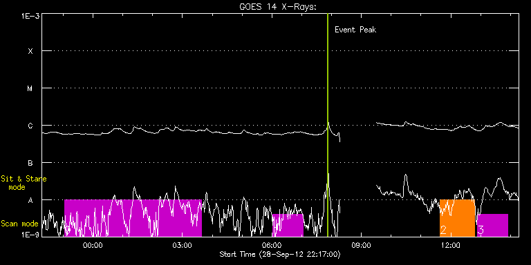 EIS Observation timeline overlay to GOES-Xray curve Code 1" 2" 40" 266" EIS Observations list for this event: STUDY ACRONYM ID DATE OBSERVED DESCRIPTION NOAA# TARGET 0 SK_CH_DIAG_320x384 | 29666 | 2012/09/28 23:02:26 | Polar Panorama Map for understanding P | | Coronal Hole TIMELINE ID DATE OBSERVED FITS FILE XCEN (+W/-E) YCEN (+N/-S) DUR ----------------------------------------------------------------------------------------------------------------- 29666 | 2012/09/28 23:02:26.000 | eis_l0_20120928_230226.fits.gz | -11.63 | 877.42 | 4h35m37s 1 HPW021_VEL_120x512v1 | 29680 | 2012/09/29 06:01:39 | XRT synoptic | 1582 | Active Region TIMELINE ID DATE OBSERVED FITS FILE XCEN (+W/-E) YCEN (+N/-S) DUR ----------------------------------------------------------------------------------------------------------------- 29680 | 2012/09/29 06:01:39.000 | eis_l0_20120929_060139.fits.gz | -635.54 | -301.84 | 1h1m53s 2 GDZ_300x384_S2S3_40 | 29694 | 2012/09/29 11:38:27 | AR observation | | Active Region TIMELINE ID DATE OBSERVED FITS FILE XCEN (+W/-E) YCEN (+N/-S) DUR ----------------------------------------------------------------------------------------------------------------- 29694 | 2012/09/29 11:38:27.000 | eis_l0_20120929_113827.fits.gz | -75.93 | -16.35 | 1h10m8s 3 HPW021_VEL_120x512v1 | 29695 | 2012/09/29 12:53:27 | AR observation | 1582 | Active Region TIMELINE ID DATE OBSERVED FITS FILE XCEN (+W/-E) YCEN (+N/-S) DUR ----------------------------------------------------------------------------------------------------------------- 29695 | 2012/09/29 12:53:27.000 | eis_l0_20120929_125327.fits.gz | -641.95 | -321.79 | 1h1m53s : Check study information : Download file : View thumbnails For this event, also check for: